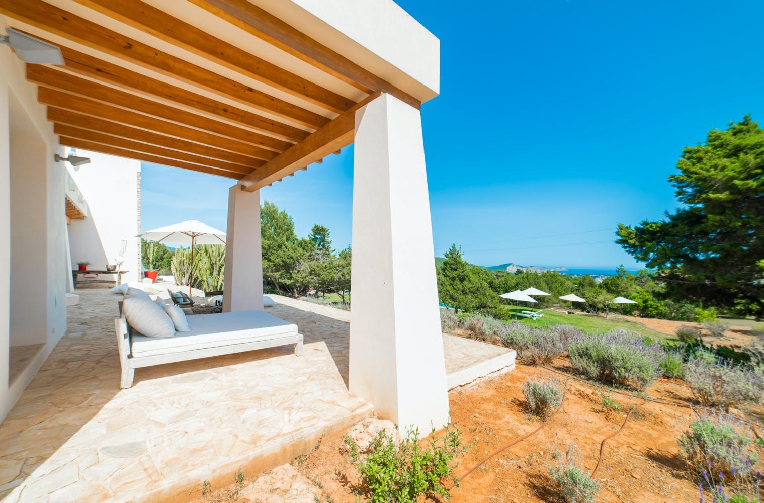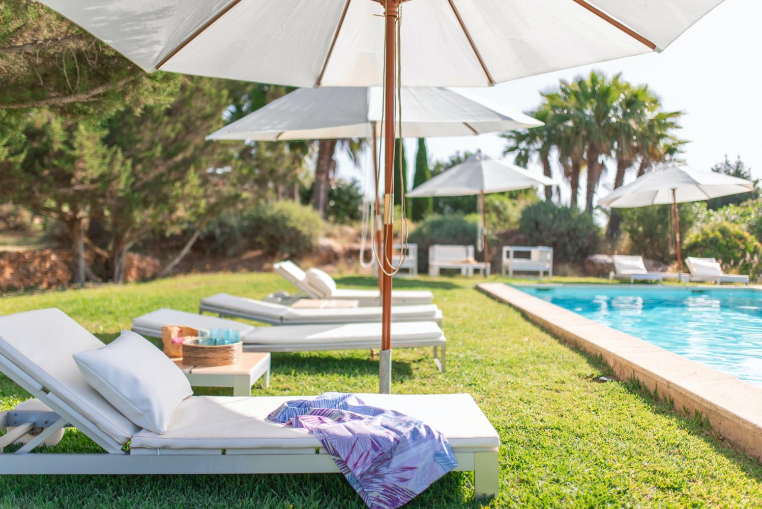 Castillo de Es Cubells overlooks a rustic, flagged terrace that leads to large lawned gardens with old trees scattered throughout from its hillside location. With a shaded gazebo for poolside lounging, the amazing private pool is the focal point outside. It’s ideal for morning laps or an afternoon float. When it’s time to relax, pull up a sun lounger for a good dose of Ibizan sunshine and then head to one of the many chill-out areas. A laid-back outdoor dining table and a low-slung lounge perfect for sunset tapas can be found on the main terrace. Serving family-style meals is made easy and social by a second outdoor dining space that is ideally situated next to the kitchen.