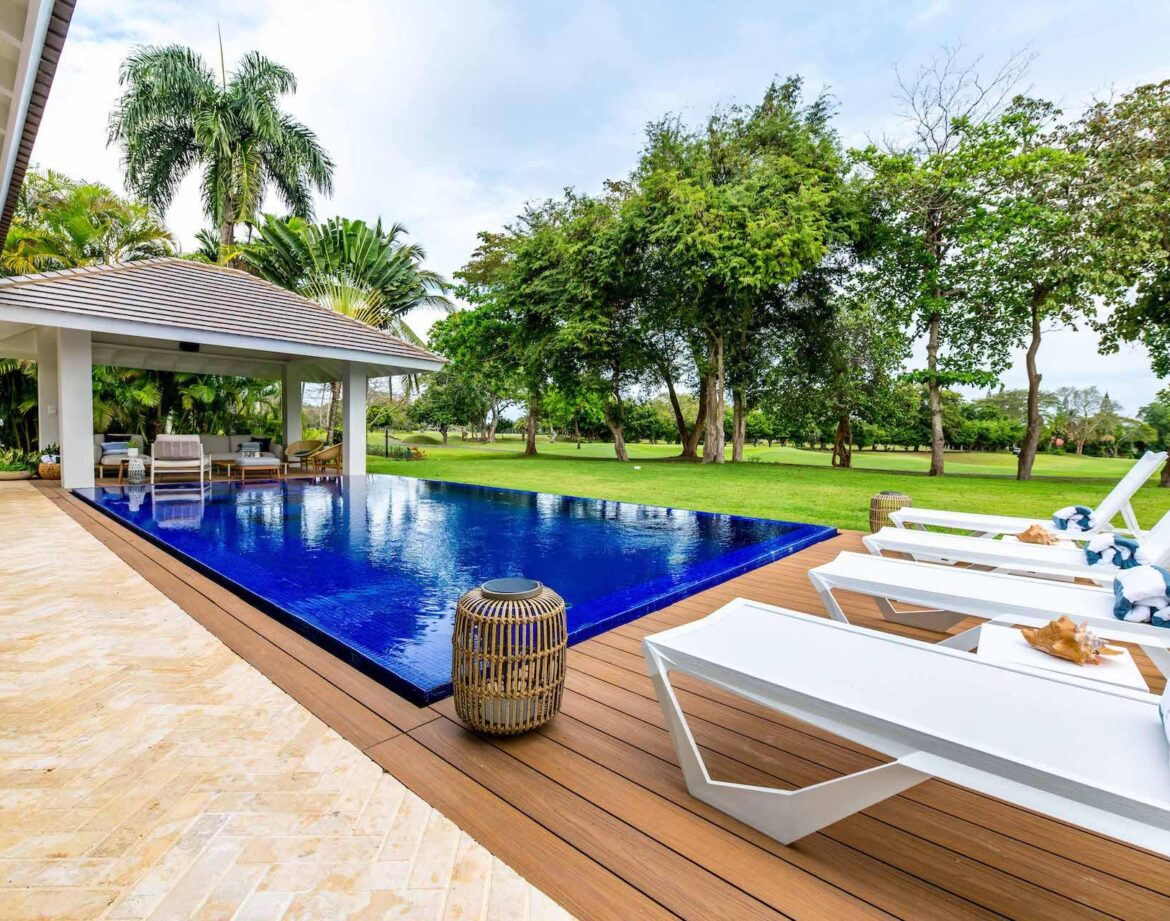 Cerezas Modern’s golf-front location, true heated pool and jacuzzi combination, and large architectural gazebo—an all-day, all-season outdoor living plan that makes the house as welcoming at noon as it is after dark—are what ultimately set it apart from similar Casa de Campo villas.