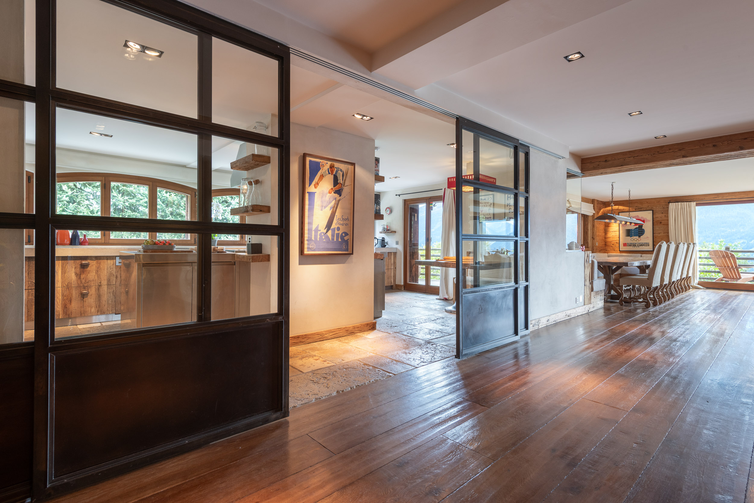Without compromising perch or privacy, the address keeps the village at your fingertips. Place Centrale, with its bakeries, wine bars, and restaurants, is about 8–12 minutes’ walk from the front door; a well-stocked grocery store and pharmacy are about 10 minutes’ walk along the main spine; and the Áran lift and ski school meeting points are about 10–12 minutes’ walk (or 4–6 minutes by car).
