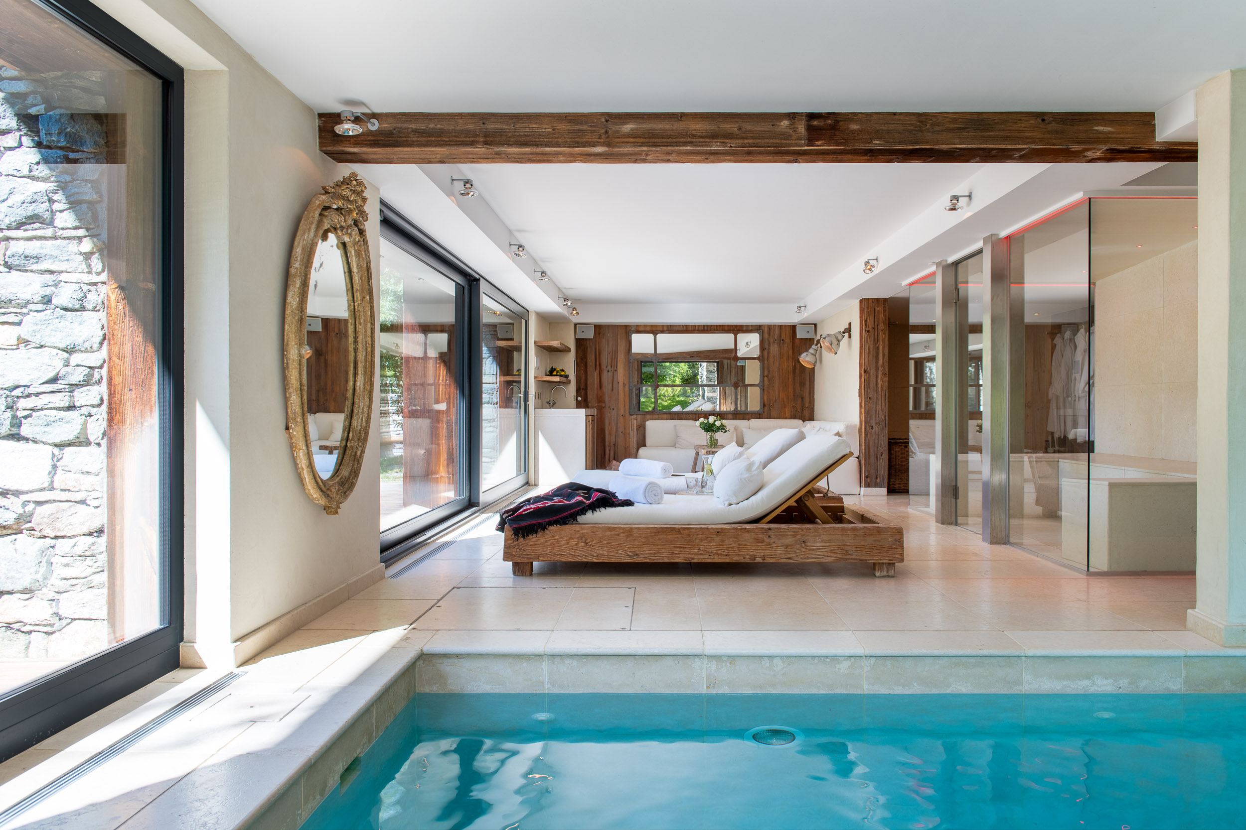Mornings usually begin in the pool: a few leisurely laps as the valley begins to breathe and pale light moves across the water, a break in the hammam to warm the day, and coffee on the terrace as the first lift lines thread the slopes. The chalet transforms into a theater for all the emotions you came to the Alps to experience by late afternoon.