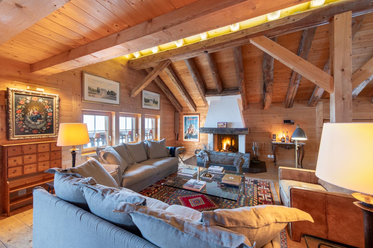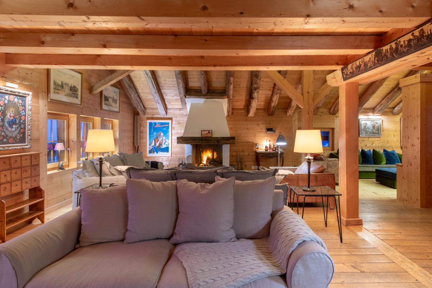 Wood-burning fireplace in living room — focal point for après-ski evenings.