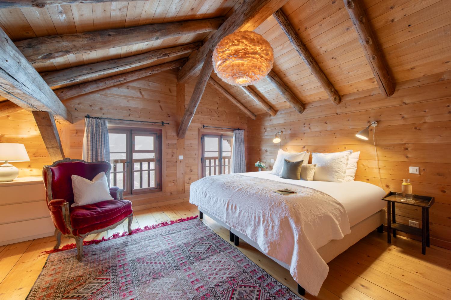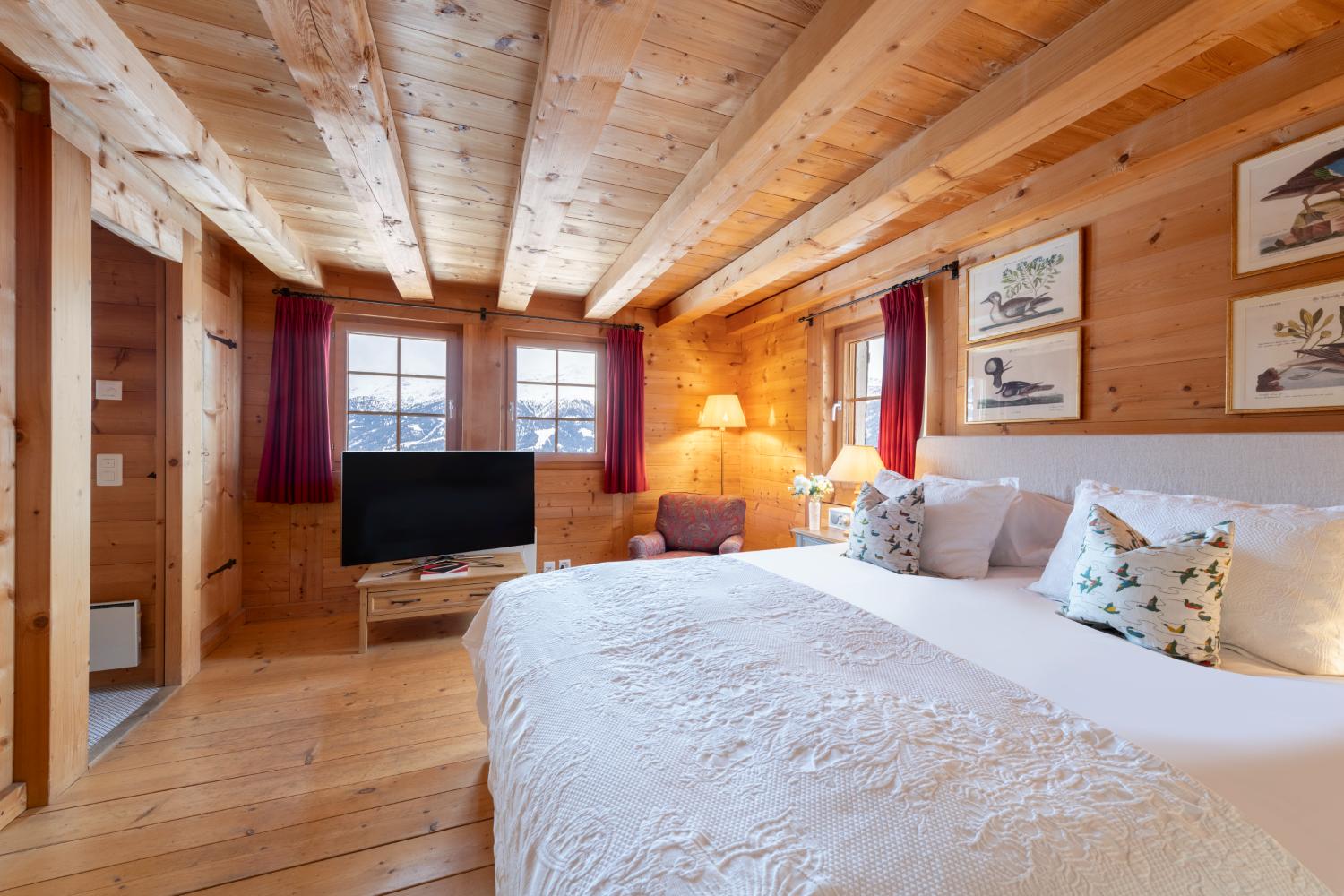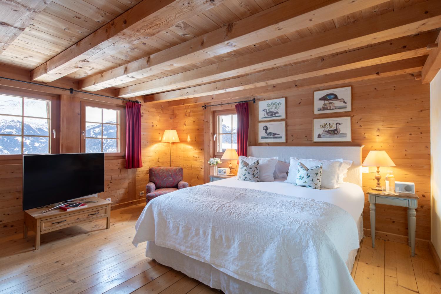 Imagine waking to pale mountain light spilling through floor-to-ceiling windows, a hush broken only by distant cowbells and the hush of alpine air. At Chalet Bavaria Swiss Alps that morning light fills a double master suite that feels like a private mountain retreat: a generous desk for the occasional email, his-and-hers sinks, a hammam shower, and wide windows framing the valley below. It’s the kind of room that turns slow mornings into a ritual.