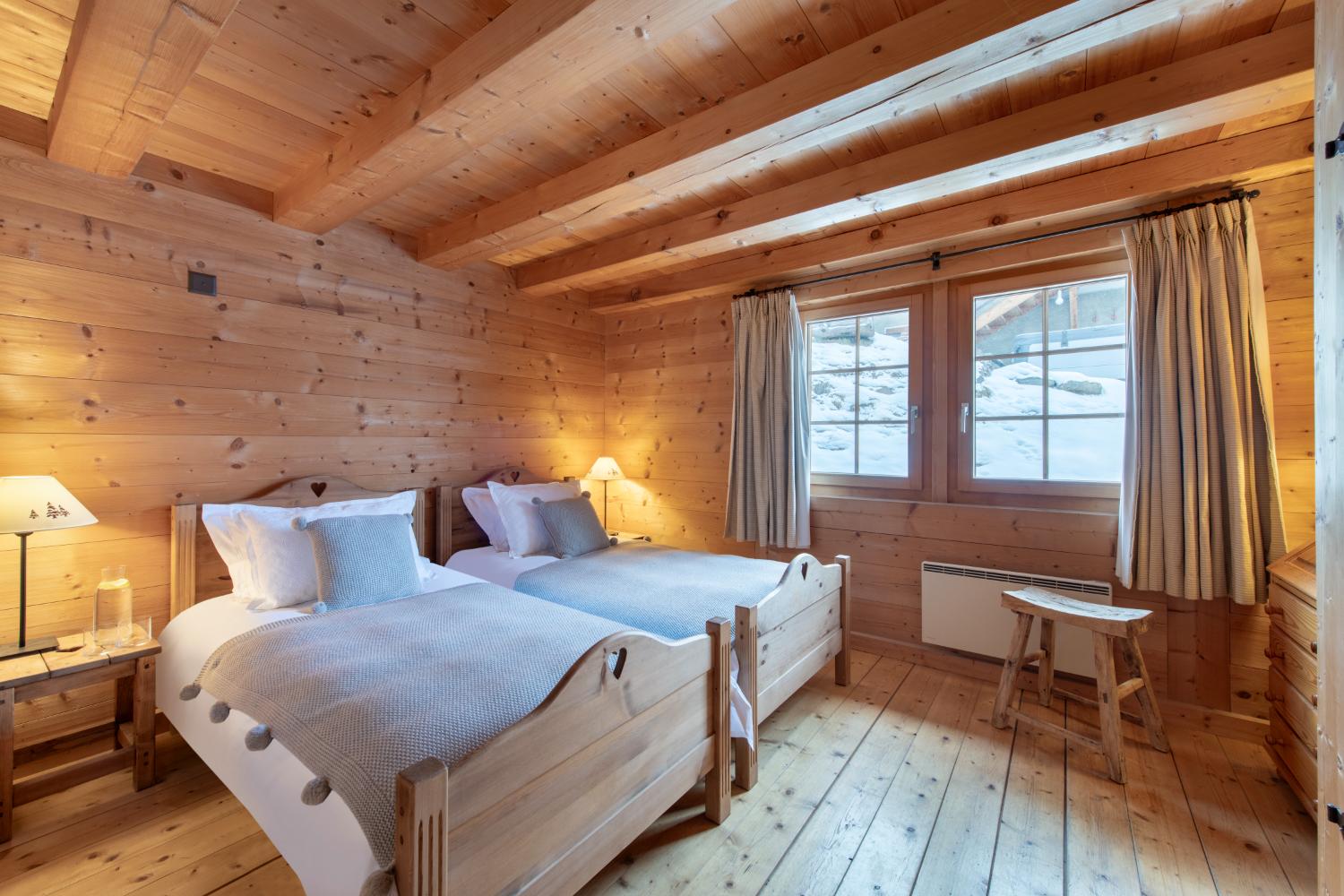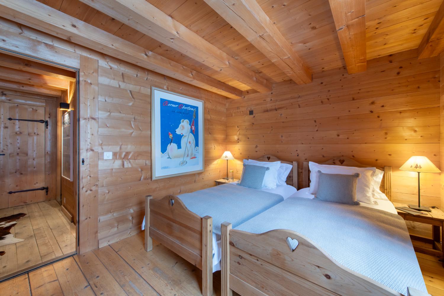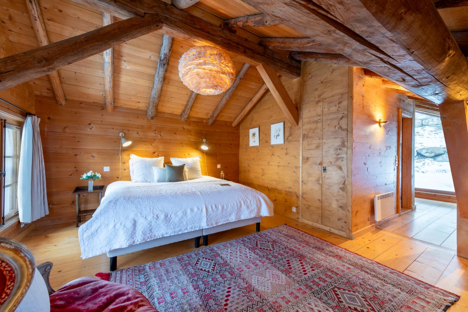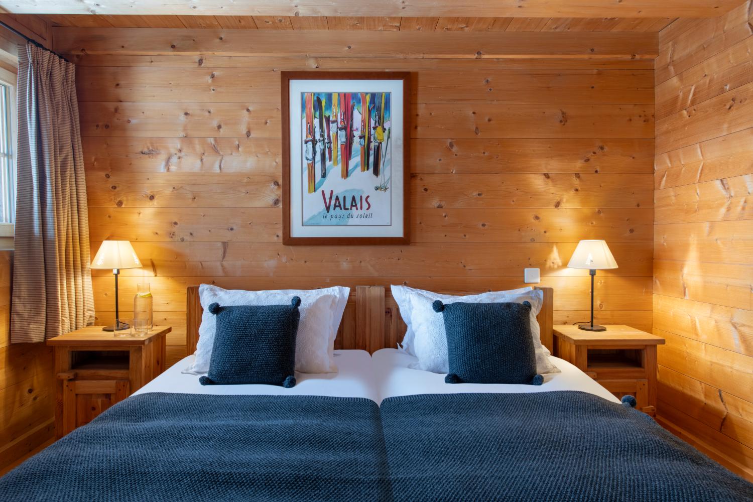 Imagine waking to pale mountain light spilling through floor-to-ceiling windows, a hush broken only by distant cowbells and the hush of alpine air. At Chalet Bavaria Swiss Alps that morning light fills a double master suite that feels like a private mountain retreat: a generous desk for the occasional email, his-and-hers sinks, a hammam shower, and wide windows framing the valley below. It’s the kind of room that turns slow mornings into a ritual.