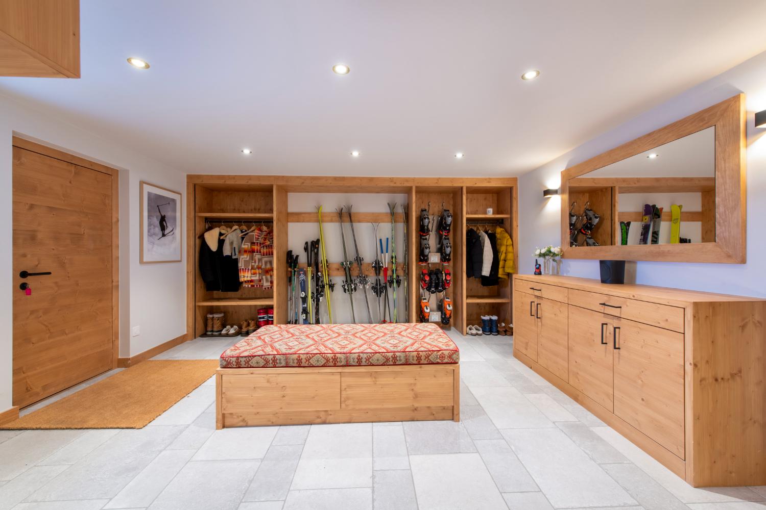 Ski room with heated boot warmers and abundant storage for skis/outerwear.