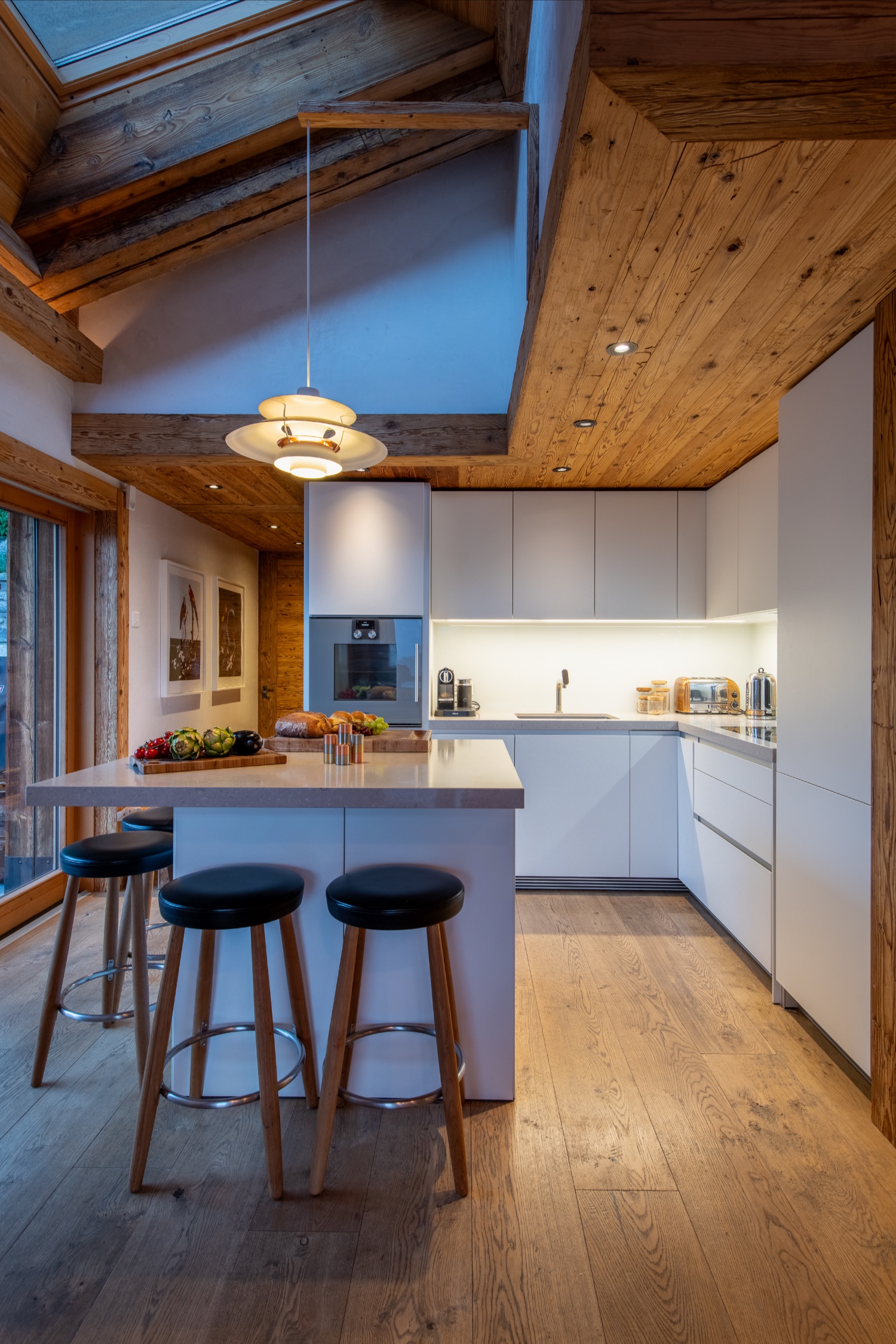 The adjoining fully equipped kitchen allows the chalet staff to prepare exquisite meals, while guests relax in complete privacy.