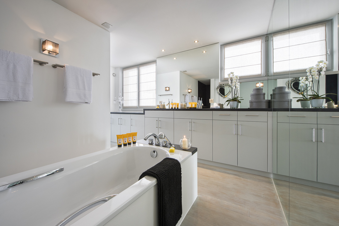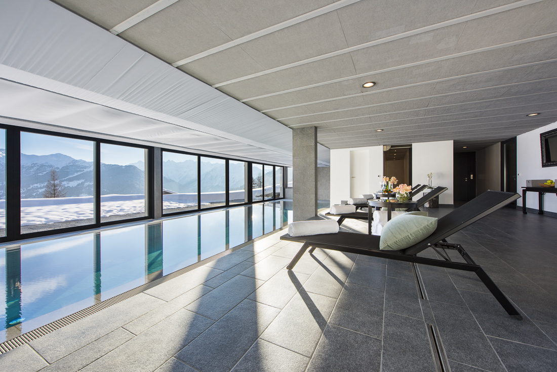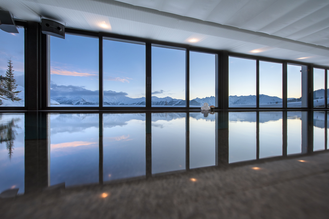 The heart of the chalet is the 17 m swimming pool which spans its width, offering a relaxing space to unwind after a day on the mountain. Revive your soul and body in the hammam, sauna or outdoor hot tub. Chalet Silver Surfer also includes a poker room with wine cave, bar and billiard area, gaming room and bowling alley. The professional fully equipped kitchen and service elevator can also be found here.