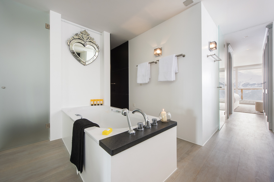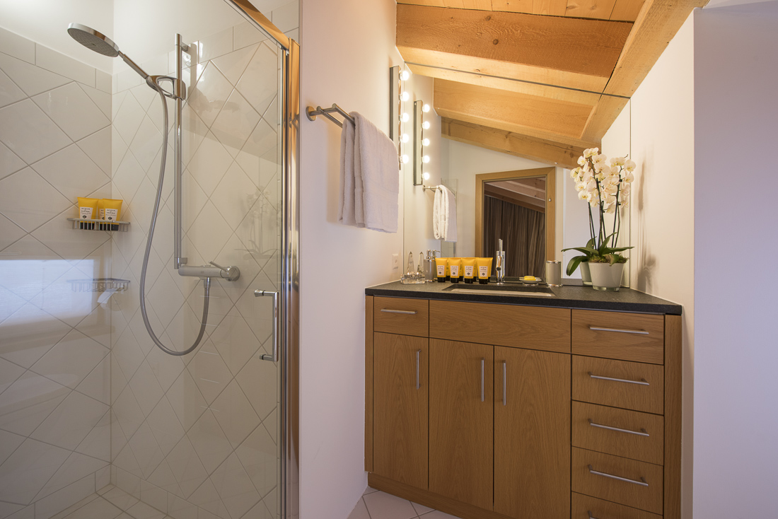 At Chalet Marmottiere two beautifully decorated master suites occupy the top floor of the main property. Each has a private balcony with panoramic views across the Val de Bagnes, a comfortable sitting area, dressing room and spacious en-suite. On the first floor are four additional en-suite double bedrooms, all individually decorated with sumptuous accents and a contemporary style.