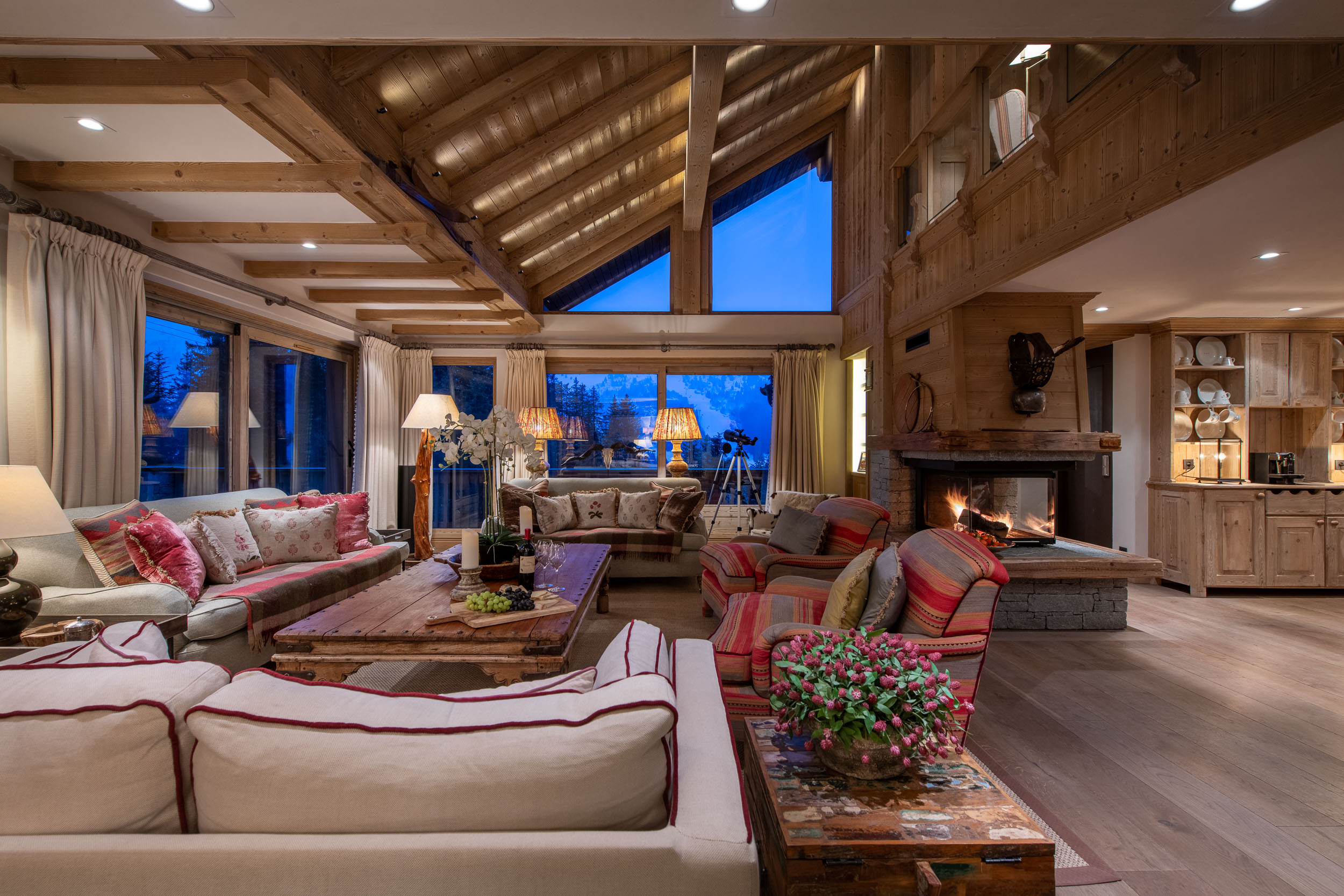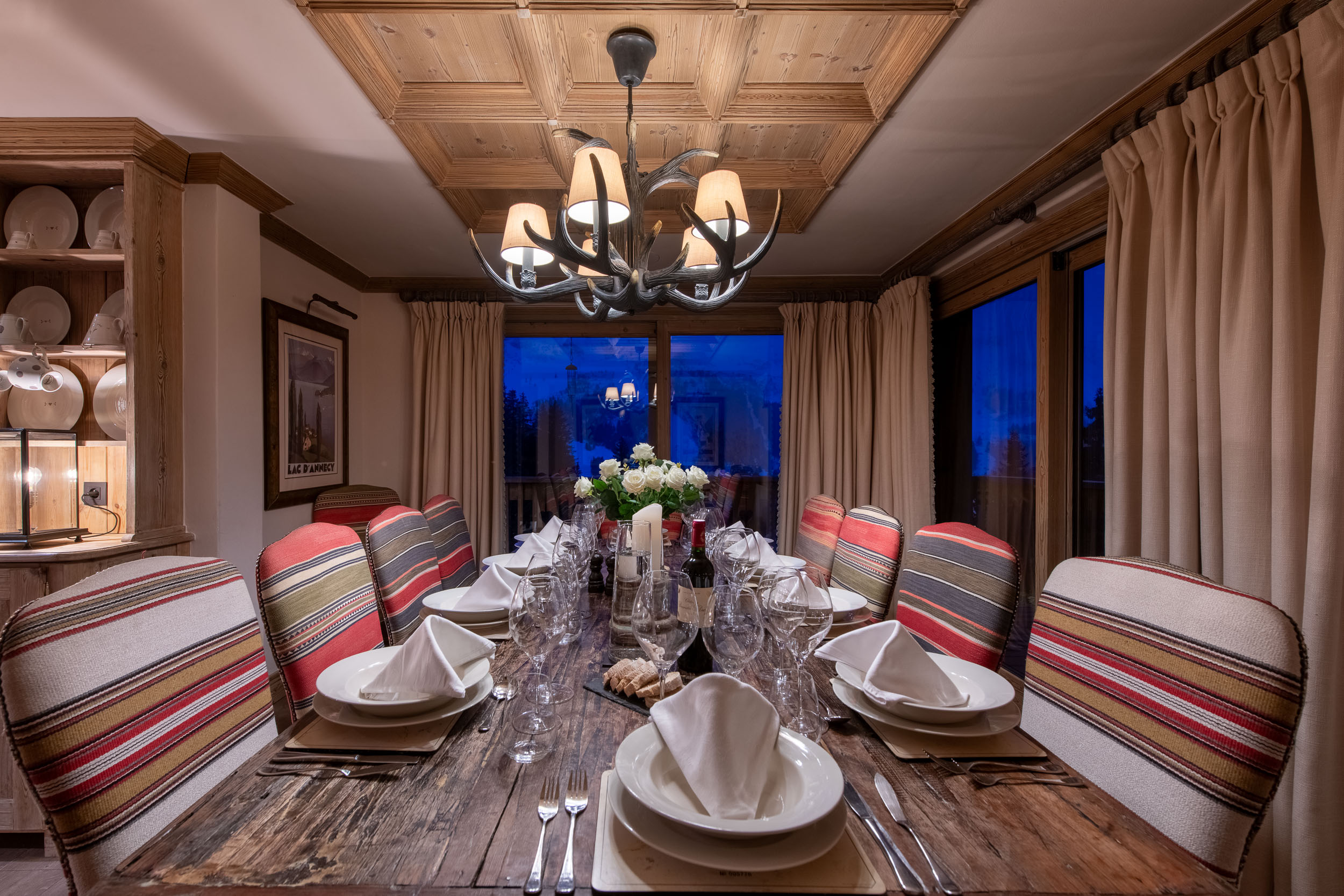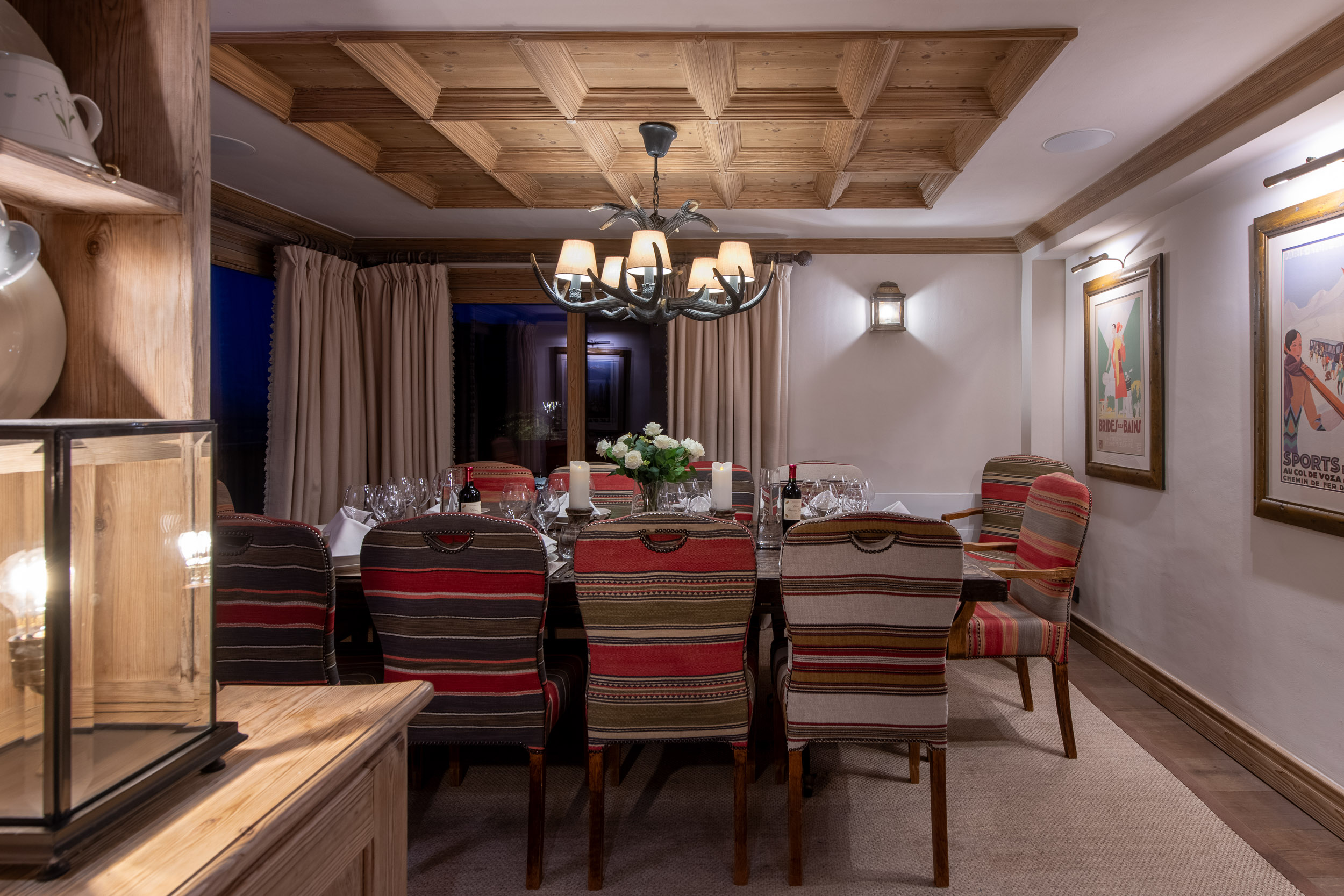 Another day could be dedicated to family activities, such as sledding or snowshoeing in the afternoon, ski school drop-offs in the morning, and a movie in the movie room while dinner is being made. A third could be saved for a spring day with blue skies, a late start, a few sunny laps on the slopes above the Rond-Point, lunch on a mountain terrace, and a simple ski home in time to enjoy a glass of champagne and watch the sunset from the fire-lit terrace.
