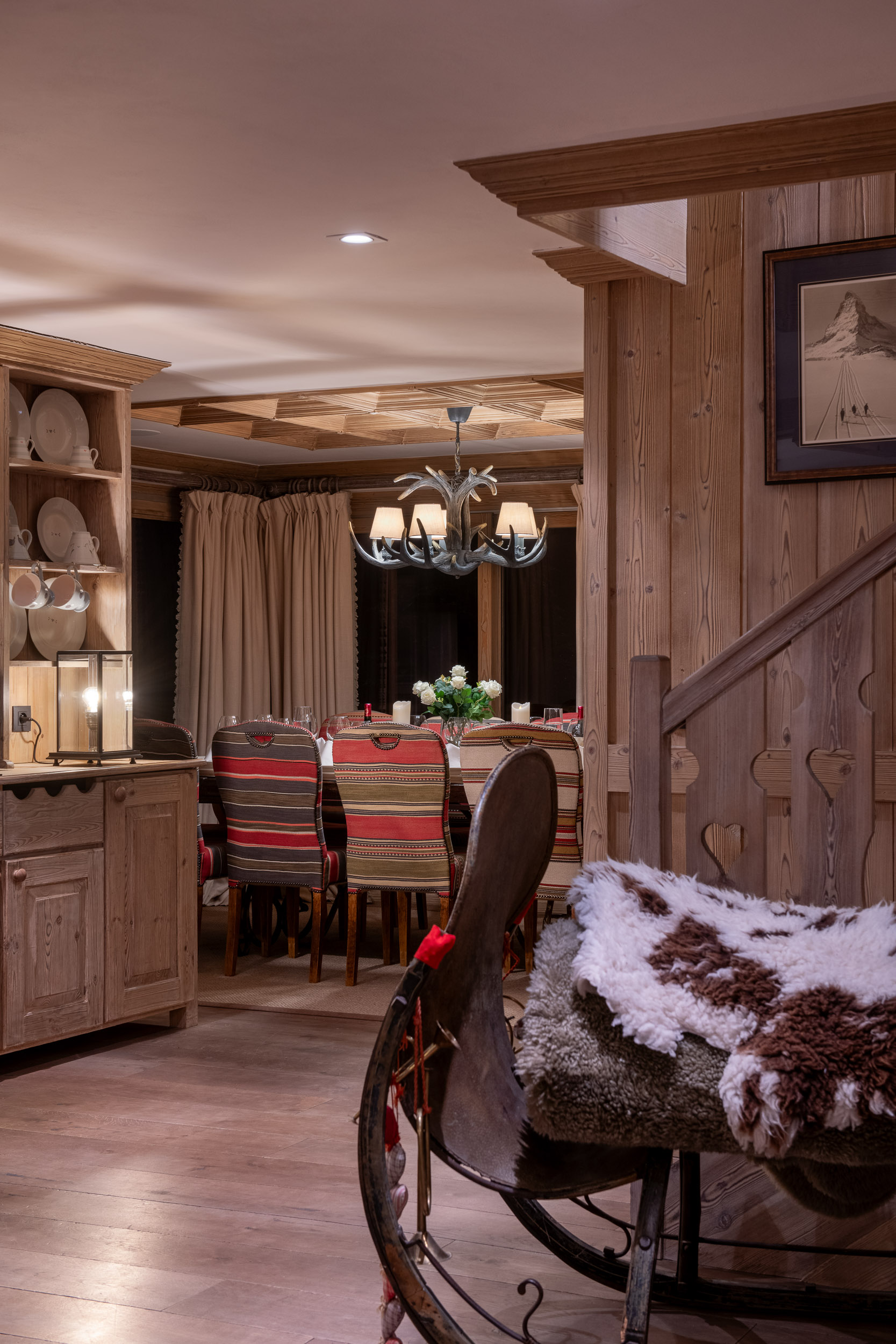 You arrive on the ground floor, where everyday details are given careful consideration. With space for gear, boots, and layers to dry properly overnight, a large ski room welcomes you in from the cold. Grandparents, weary kids, and luggage never feel like a logistical challenge thanks to the private garage and internal lift, which allow you to move between floors with ease (the lift serves all but the very top level). Chalet Valentine establishes the tone right away: everything should feel straightforward, cozy, and subtly well-organized.