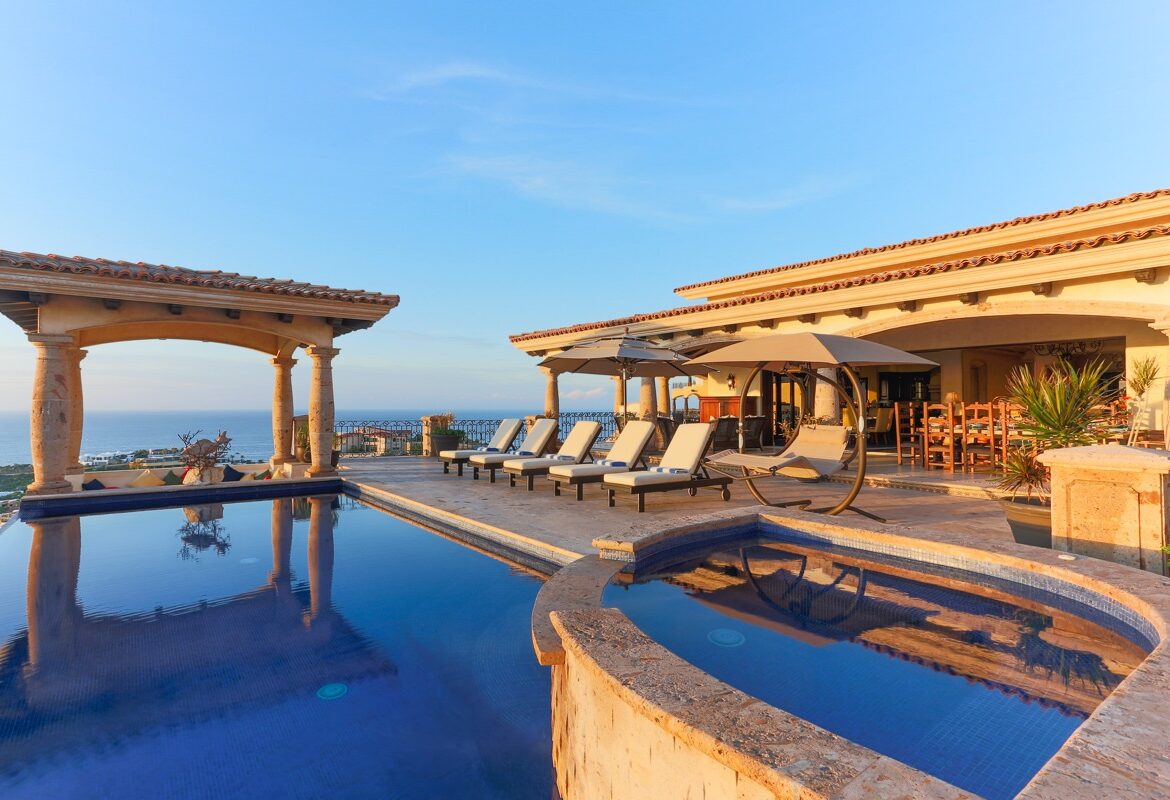 Overlooking Cabo’s marina, it boasts stunning views of the Pacific Ocean. Villa Estrella has six luxurious suites, six ample bathrooms, and two half bathrooms. This residence features exquisite rock work, high beamed ceilings, and an infinity pool that merges with the unique ocean views.