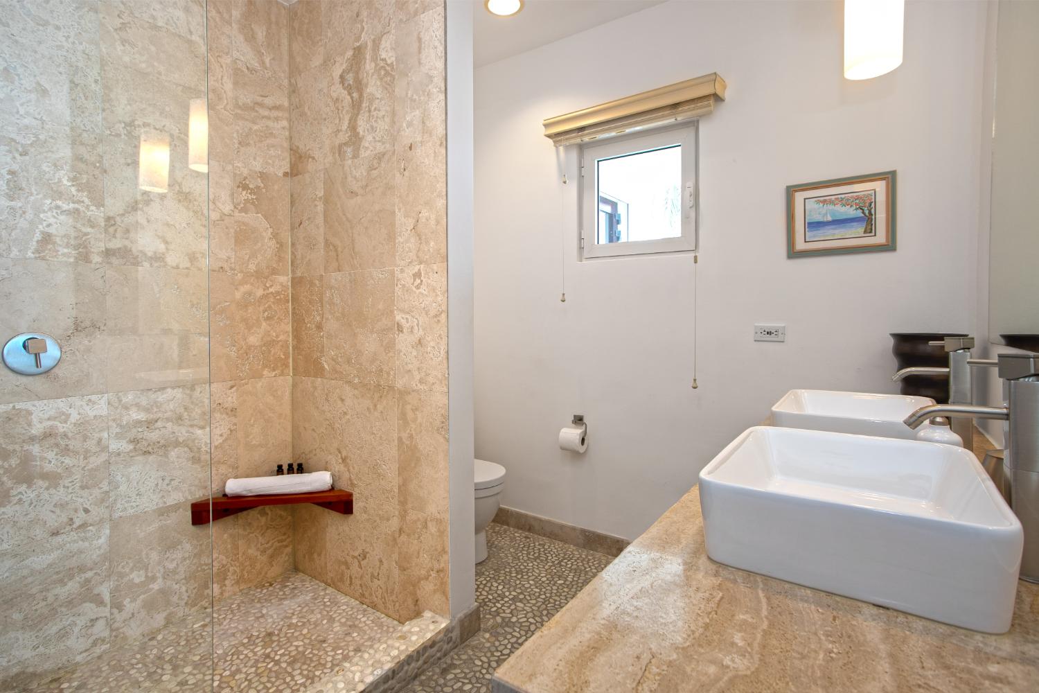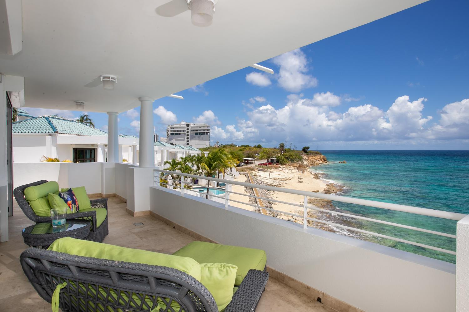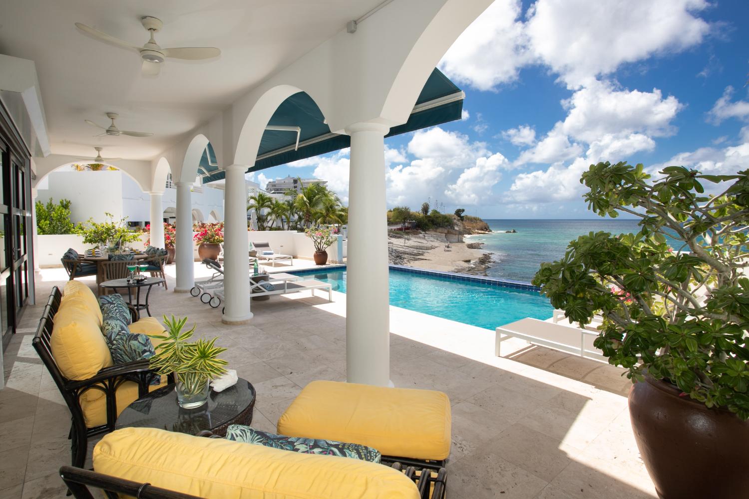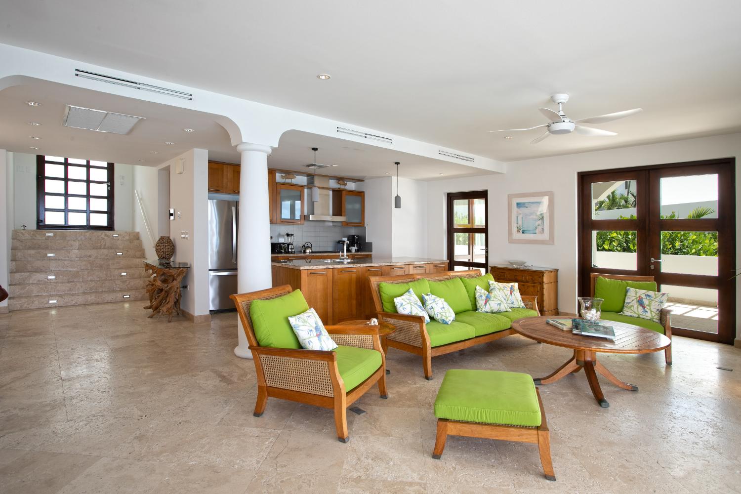 Although private, you are very close to amenities. 3 minutes to Porto Cupecoy with a terrific little gourmet market, wonderful restaurants and stunning views. In 8 minutes you reach the airport, 10 minutes to the charming French capital of Marigot and about 30 minutes to either Grand Case or Phillipsburg.