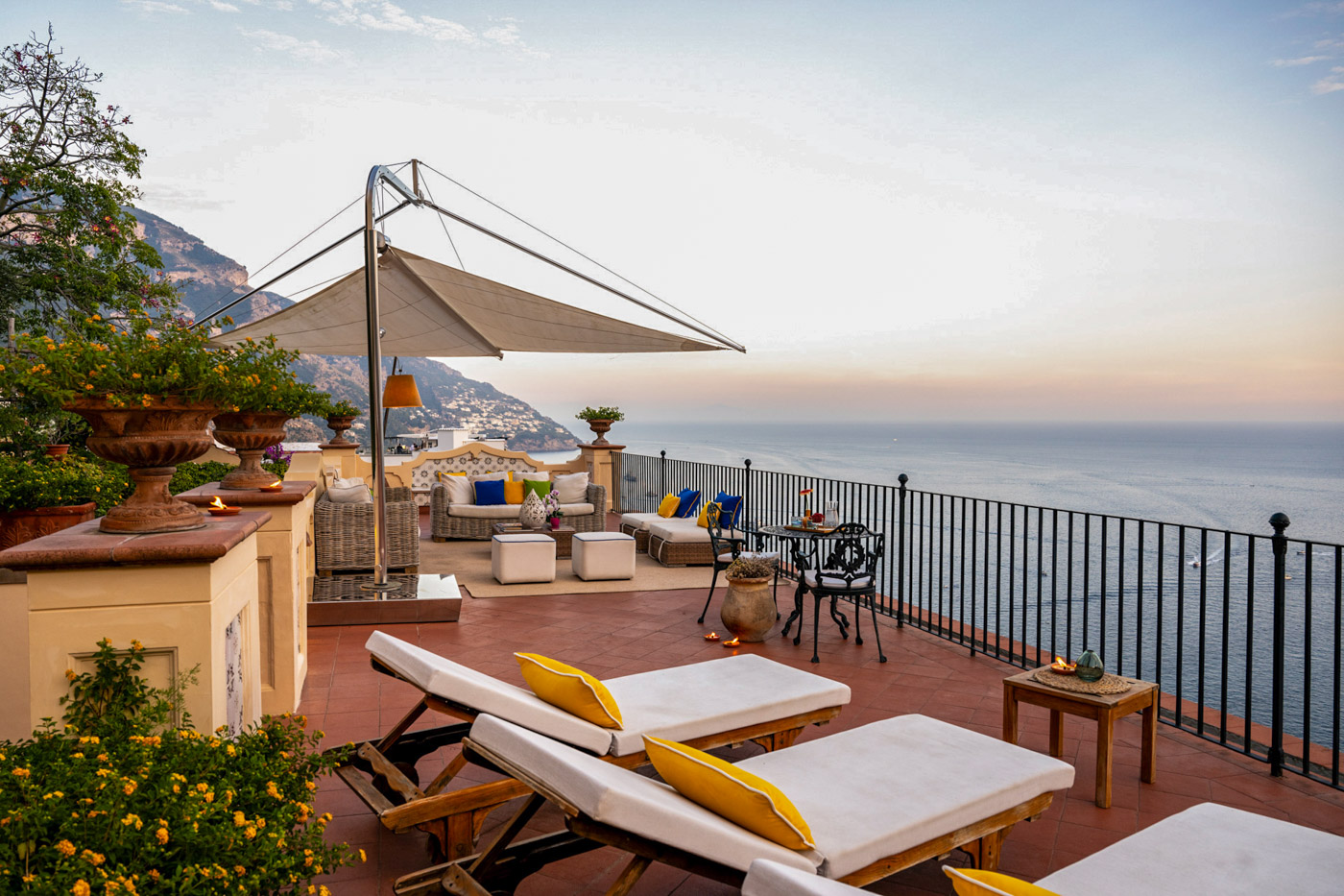 You may think of a sunny day at Positano, where you stroll along the narrow streets in the bustling centre to pick up some fresh vegetables from the market and buy some souvenirs. Go back to Villa Eugenia when it is time for relaxation, mix your nice drink and take it while sitting on your poolside sunning chair feeling the cool lemony breeze that is blowing across this room. Dine al fresco and enjoy limoncello while gazing at stars on a panoramic terrace. A unique experience of Amalfi Coast.