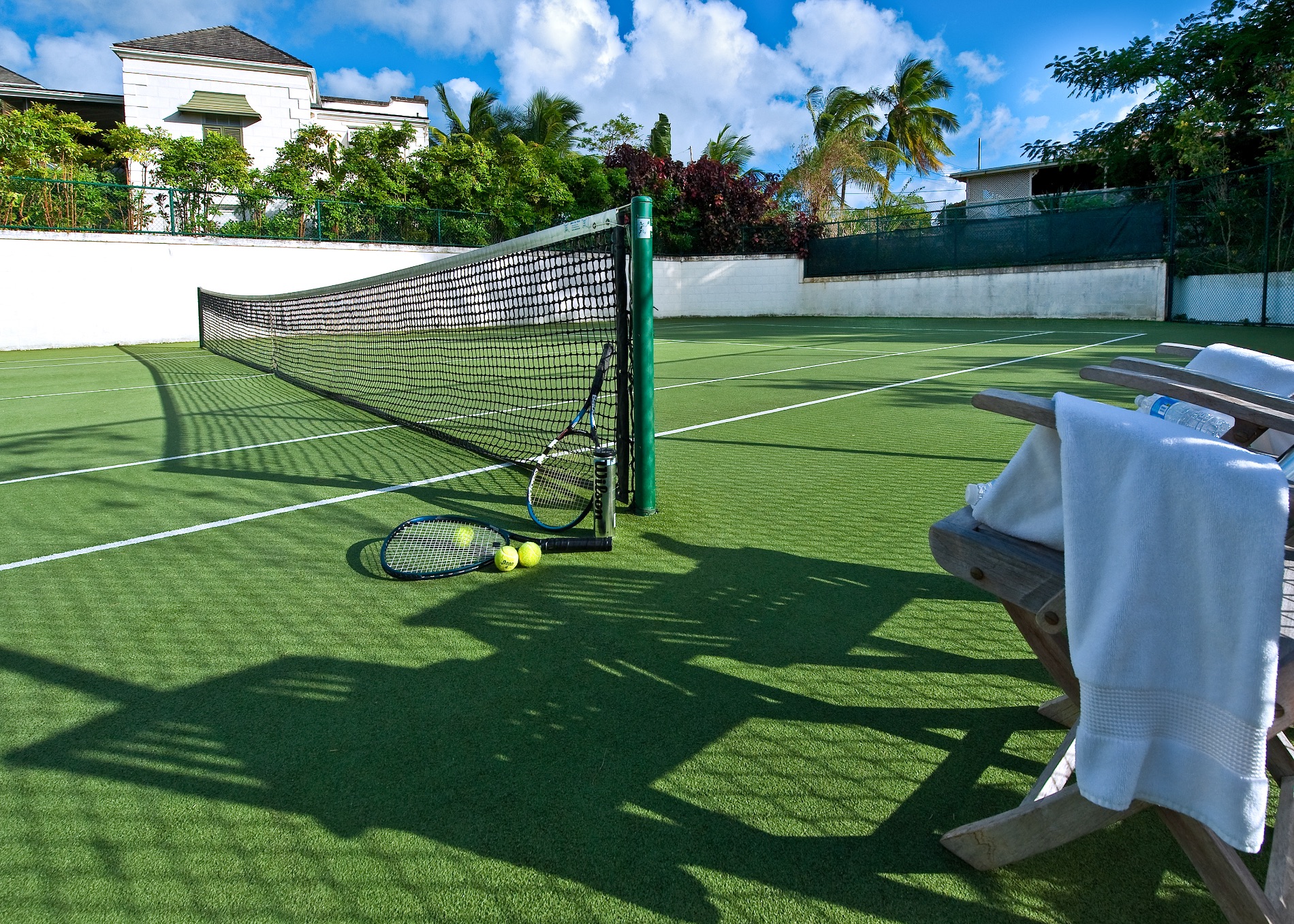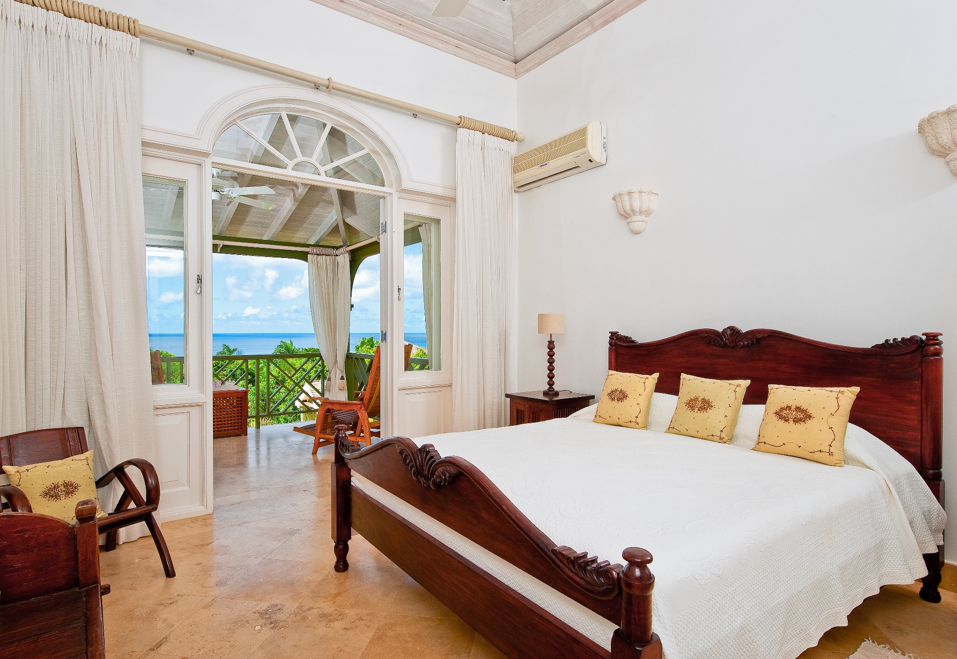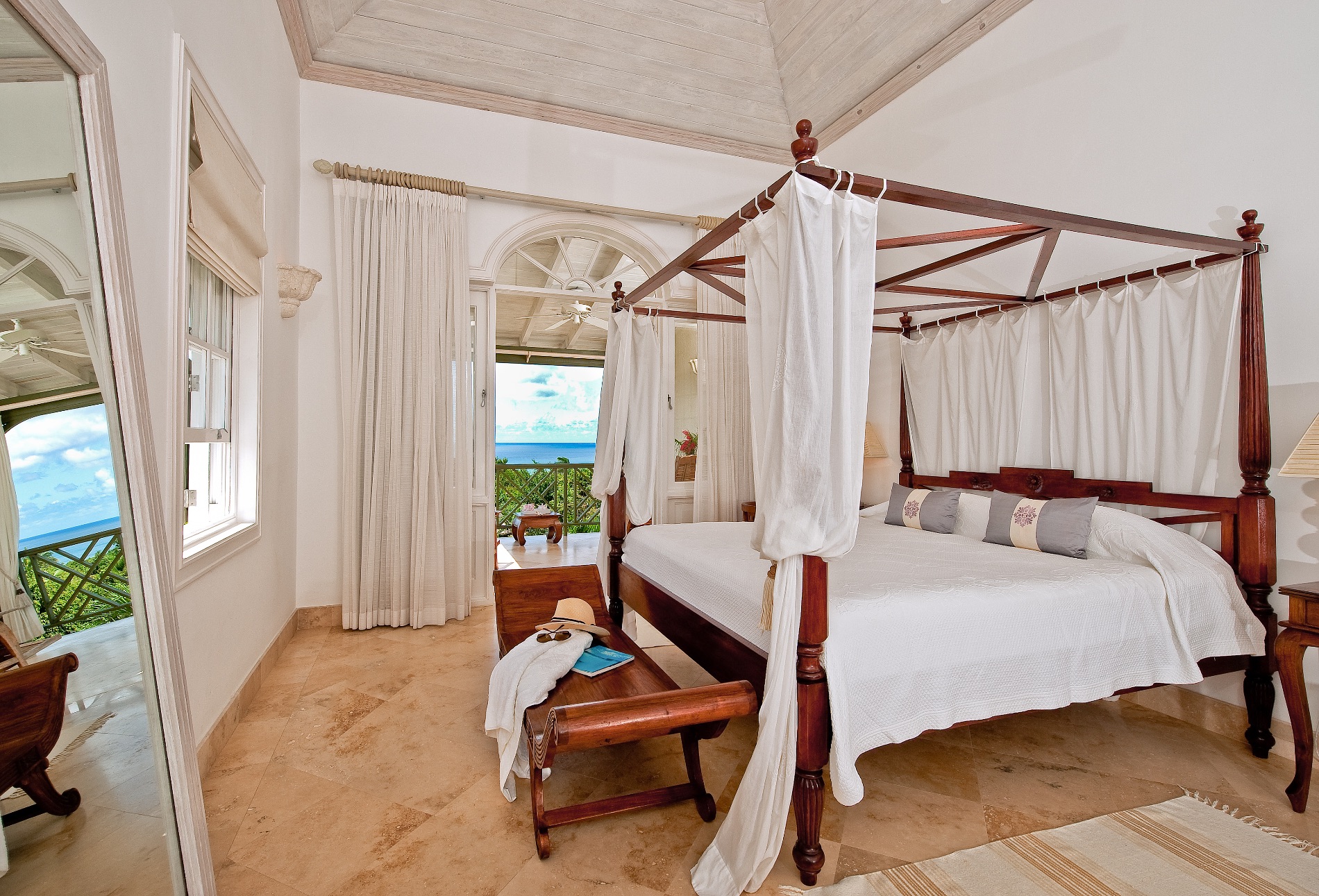 The six bedrooms are spread between the main building and a separate cottage near the pool. There are two master suites with balconies and kitchenettes, and two other king suites in the main building. All have en suite bathrooms. The remaining bedrooms are king suites with private baths.