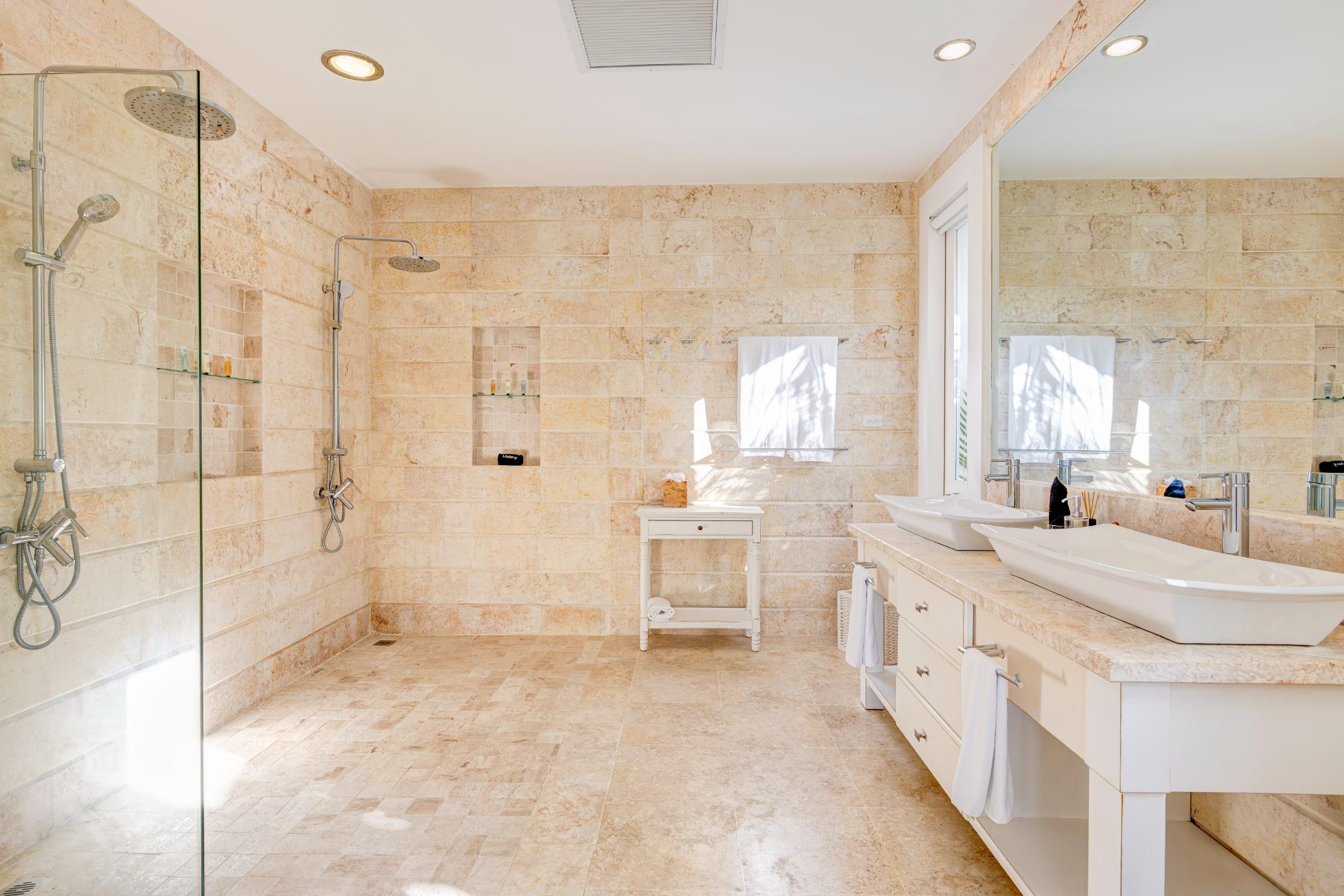 The ground level adds a second king suite and another room with two queens for multigenerational convenience, while two adjacent bedrooms each have two queen beds, making them ideal for siblings who prefer to share or couples who want a little more space. Practical and stylish details can be found everywhere: TVs with international cable for movie nights, ceiling fans and quiet climate control, and blackout calm when it’s time to truly relax.