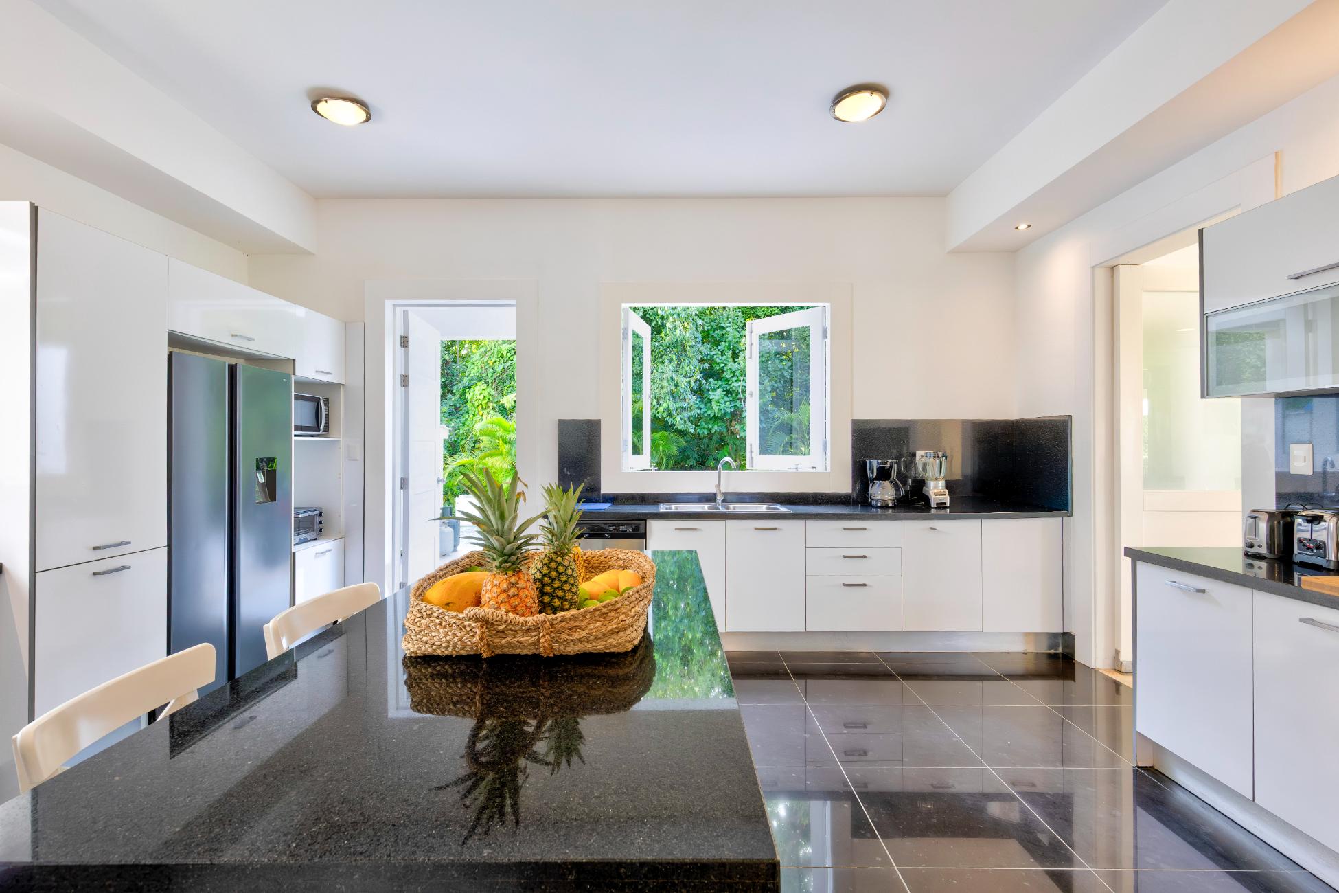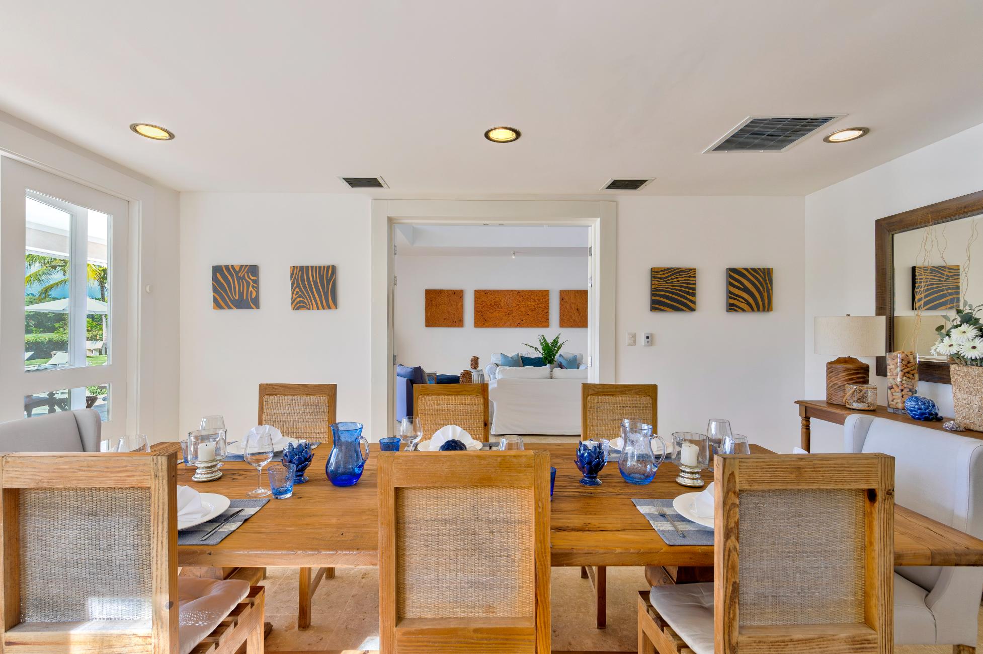 The social core is simple. High-end stainless appliances, sensible prep areas, and adequate refrigeration make the kitchen truly functional, making hosting a private chef evening as simple as hosting a laid-back breakfast following a morning swim. The dining area opens up to the terrace, where you can have candlelit dinners and barefoot lunches every day at the table beneath the eaves.