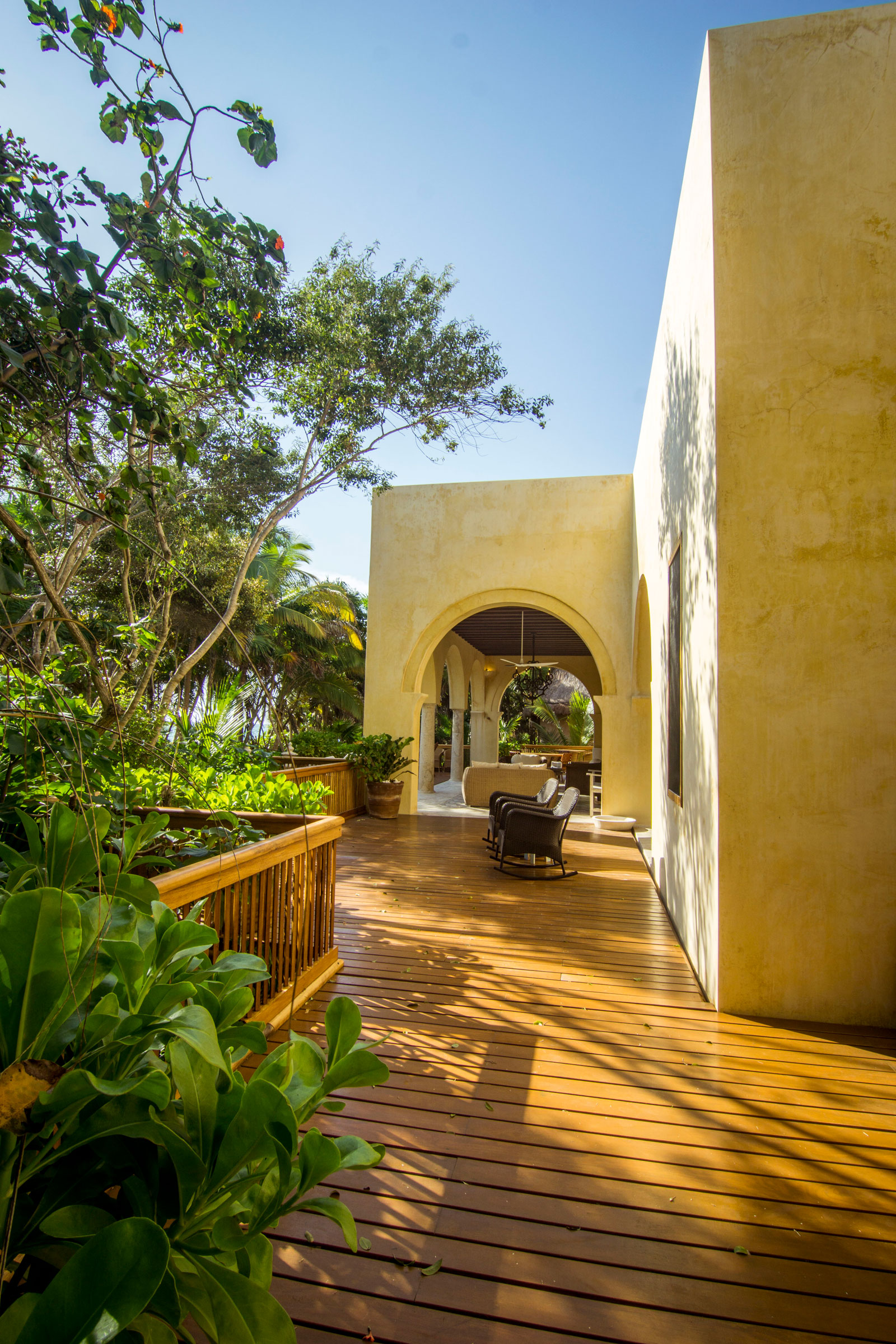 With the immaculate Campechén Lagoon directly behind and a fringe of reef offshore, the house is situated where Sian Ka’an’s biosphere reserve starts to seem limitless. The award-winning Salvador Reyes Ríos designed the hacienda, which is a modern tribute to the great houses of the peninsula: long sightlines that entice you outside; a rooftop garden that carries a 30-foot infinity pool to the edge of the sky; thick, cool walls and arched, shaded galleries.