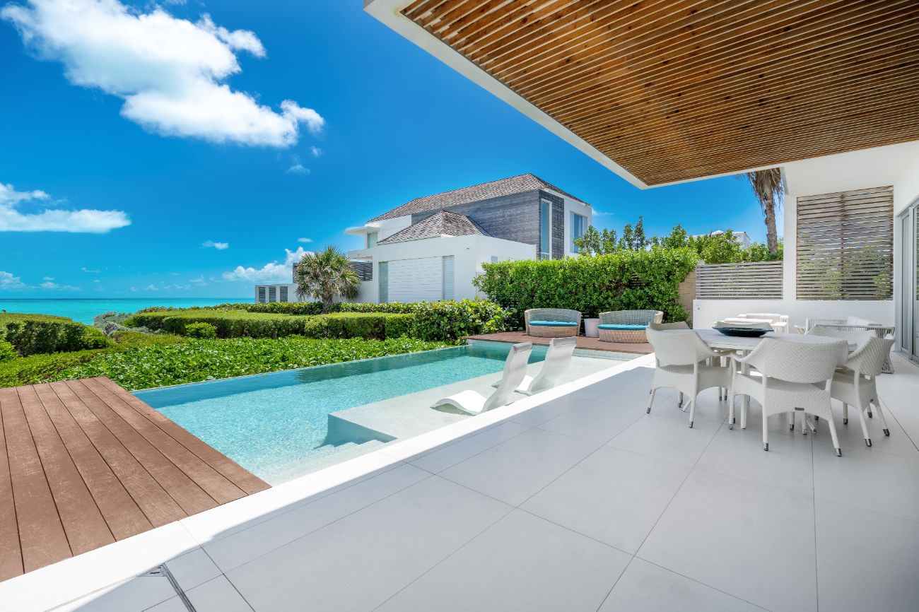 This five-bedroom home, which is part of the upscale Long Bay Beach Club, is situated along one of Providenciales’ most tranquil coastlines and offers visitors the seclusion of an independent villa along with the superior service of a boutique resort. Hyperion is unique among Turks and Caicos Villas not only because of its modern architecture but also because it places you right in front of the turquoise shallows of Long Bay, where the sea is always calm, warm, and inviting.