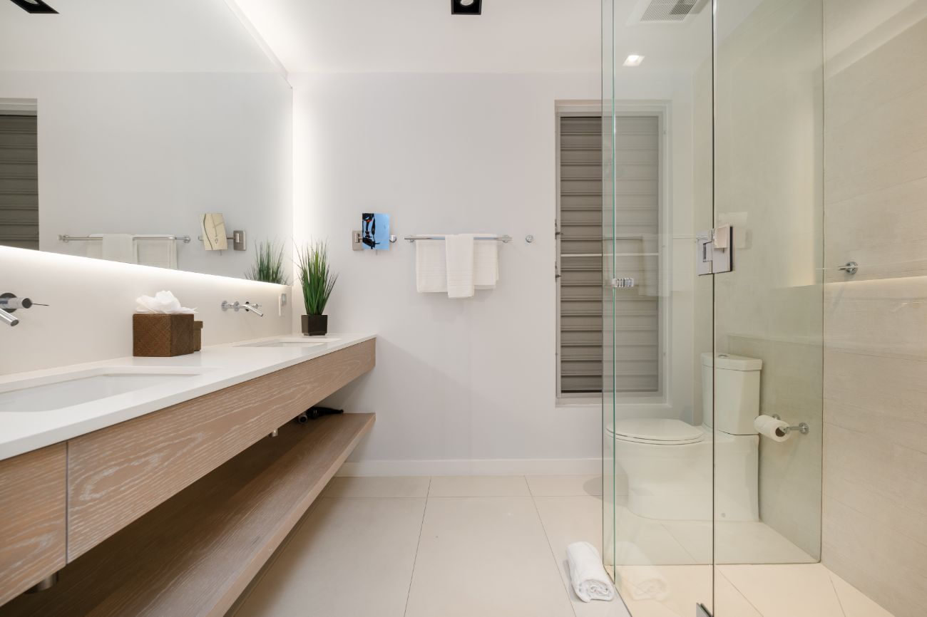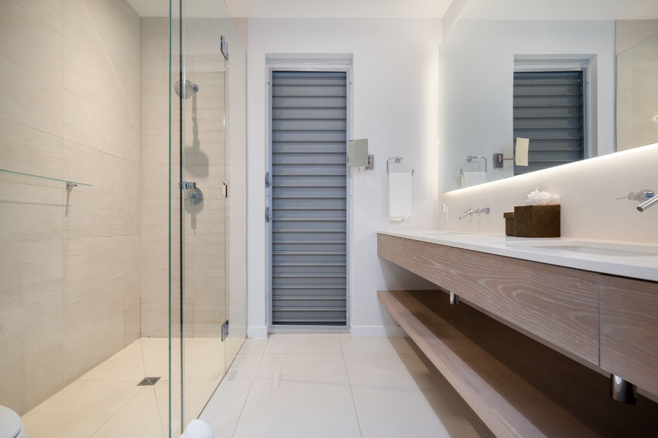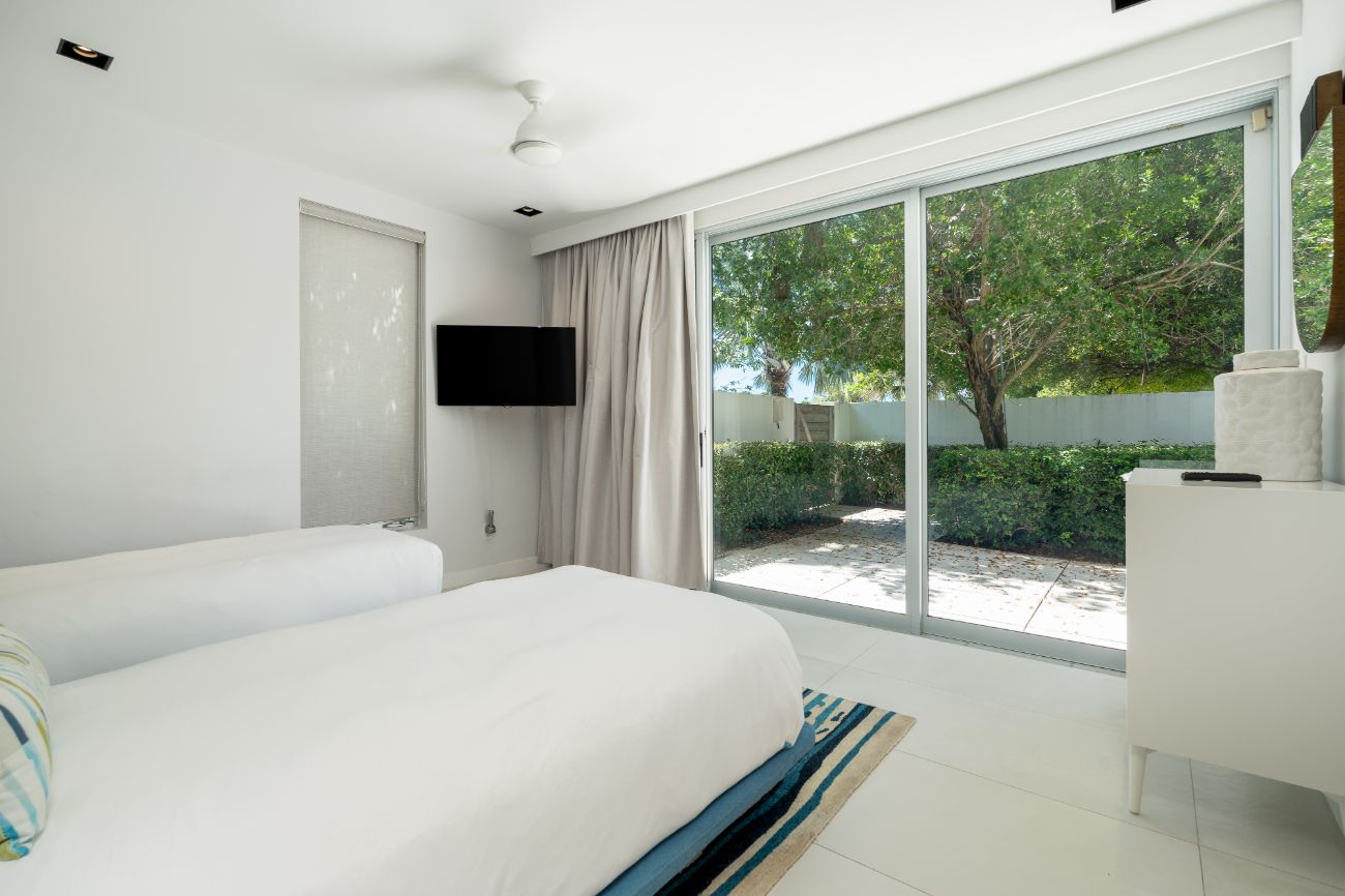In its own subtle way, the arrival experience is cinematic. The villa’s clean lines are softened as you enter through a beautifully designed courtyard filled with lush tropical vegetation. Even before you see the water, you can hear the sounds of the coast. With en suite bathrooms, ample closet space, and sliding doors that let you greet the morning with fresh air rather than walls, the two roomy garden-level bedrooms open onto this courtyard. Nearby is a cozy, cool family media room that is ideal for adults or children looking for a respite from the sun.