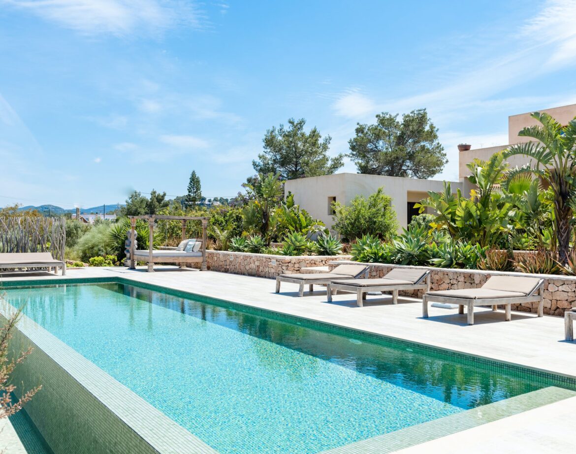 Hidden within 20,000 m² of Mediterranean gardens rich with lavender, citrus, palm, olive, and fig trees, Villa Izarra Spain is a private sanctuary designed for peaceful living. Perfectly positioned between the charming village of San Agustín and the vibrant energy of San Antonio, this luxury villa in Ibiza offers guests the best of both worlds — serenity and convenience.