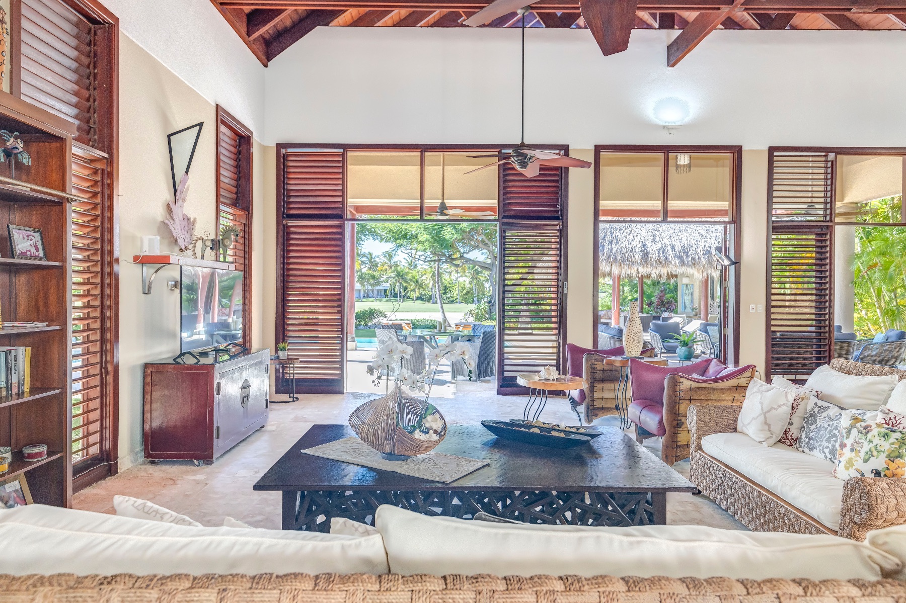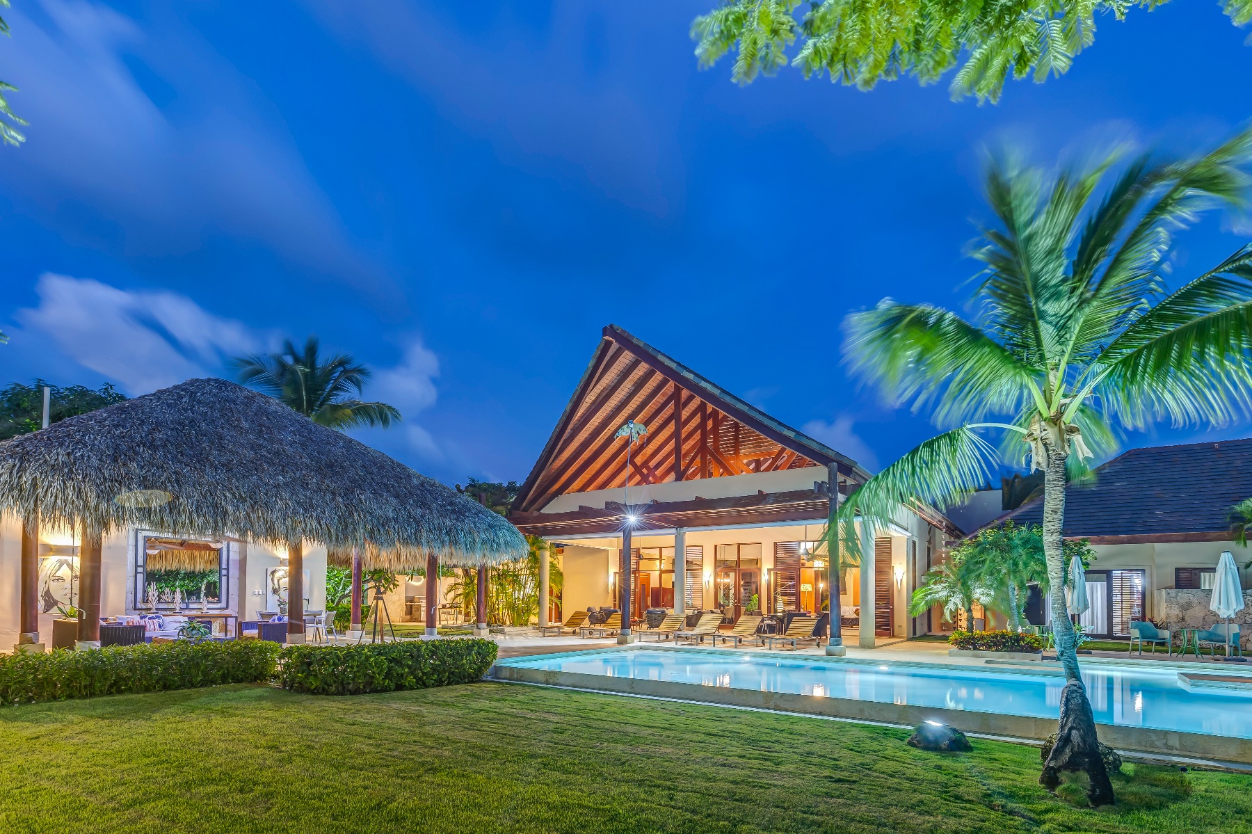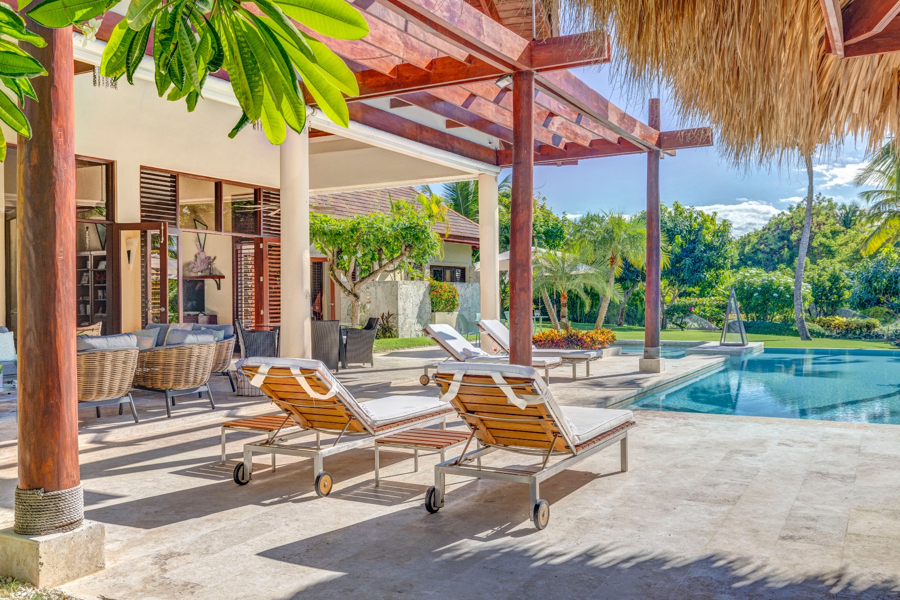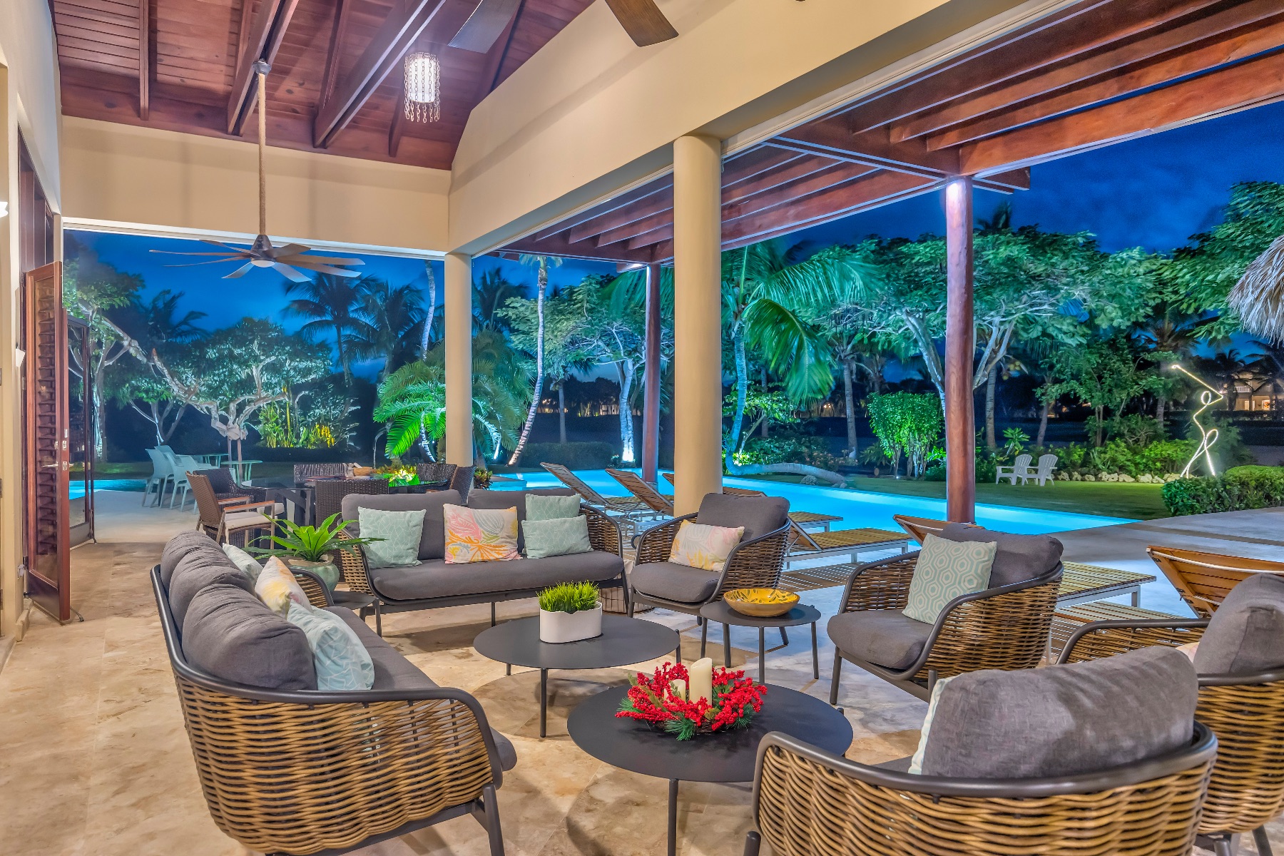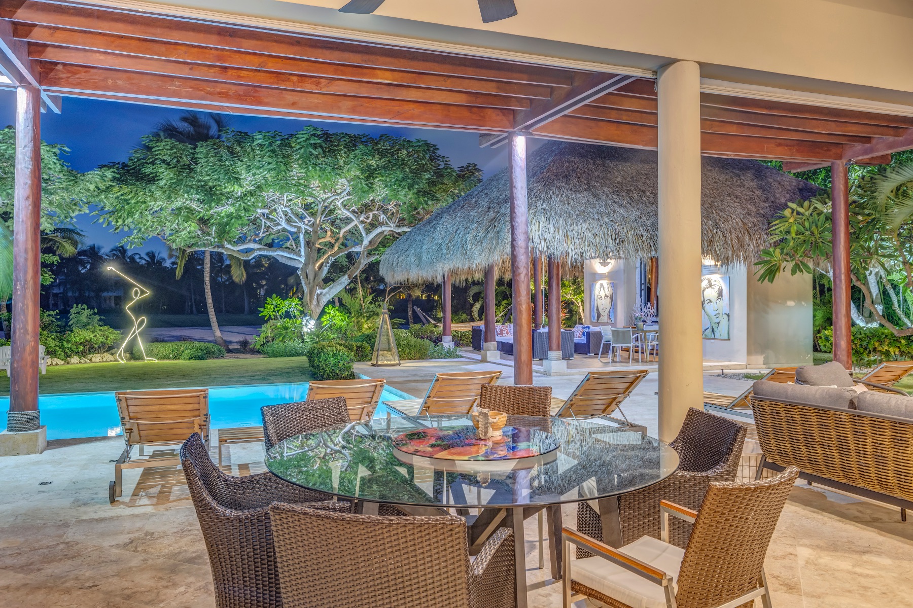 Formal and alfresco dining, parking for eight, a fully equipped kitchen, and a great deal of indoor and outdoor living space makes La Cana an ideal spot for hosting groups of family and friends. After dinner, head outside for a drink at the wet bar, then stretch out on a lounge chair by the swimming pool. After the sun sets, the balcony overlooking the golf course is a great place to relax in the ocean breeze. Other amenities included with rental are daily housekeeping, butler service, and airport transfer.