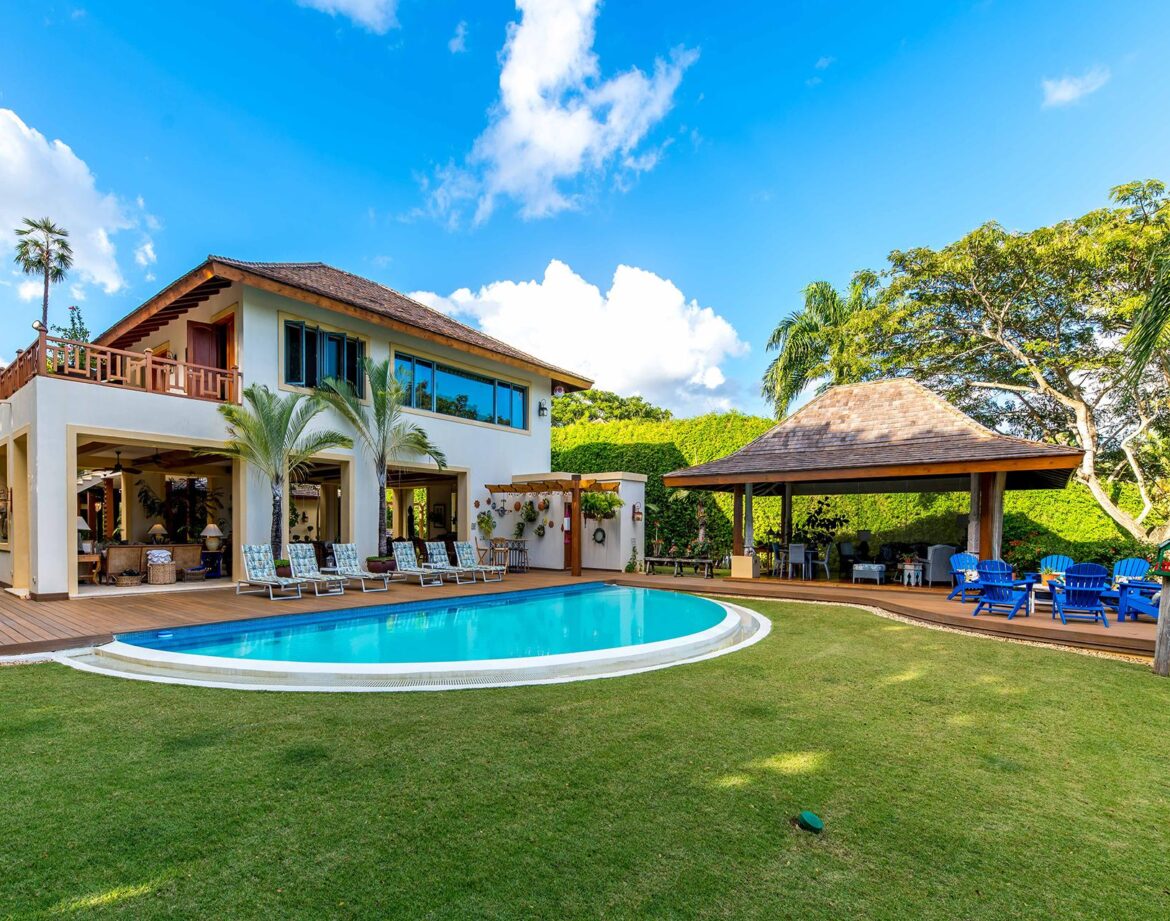 Wide eaves that lift to the breeze, cane and teak, pale stone that remains cool at noon—the house opens in slow, graceful layers until indoors and outdoors merge into a single tranquil pavilion. This five-bedroom, two-story haven close to the Casa de Campo Marina is designed for leisurely days and lantern-lit evenings. You can move from bed to terrace to infinity pool without ever losing sight of the masts and the silver ribbon of the river.