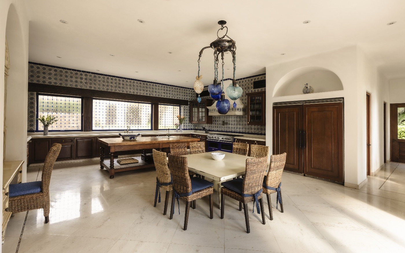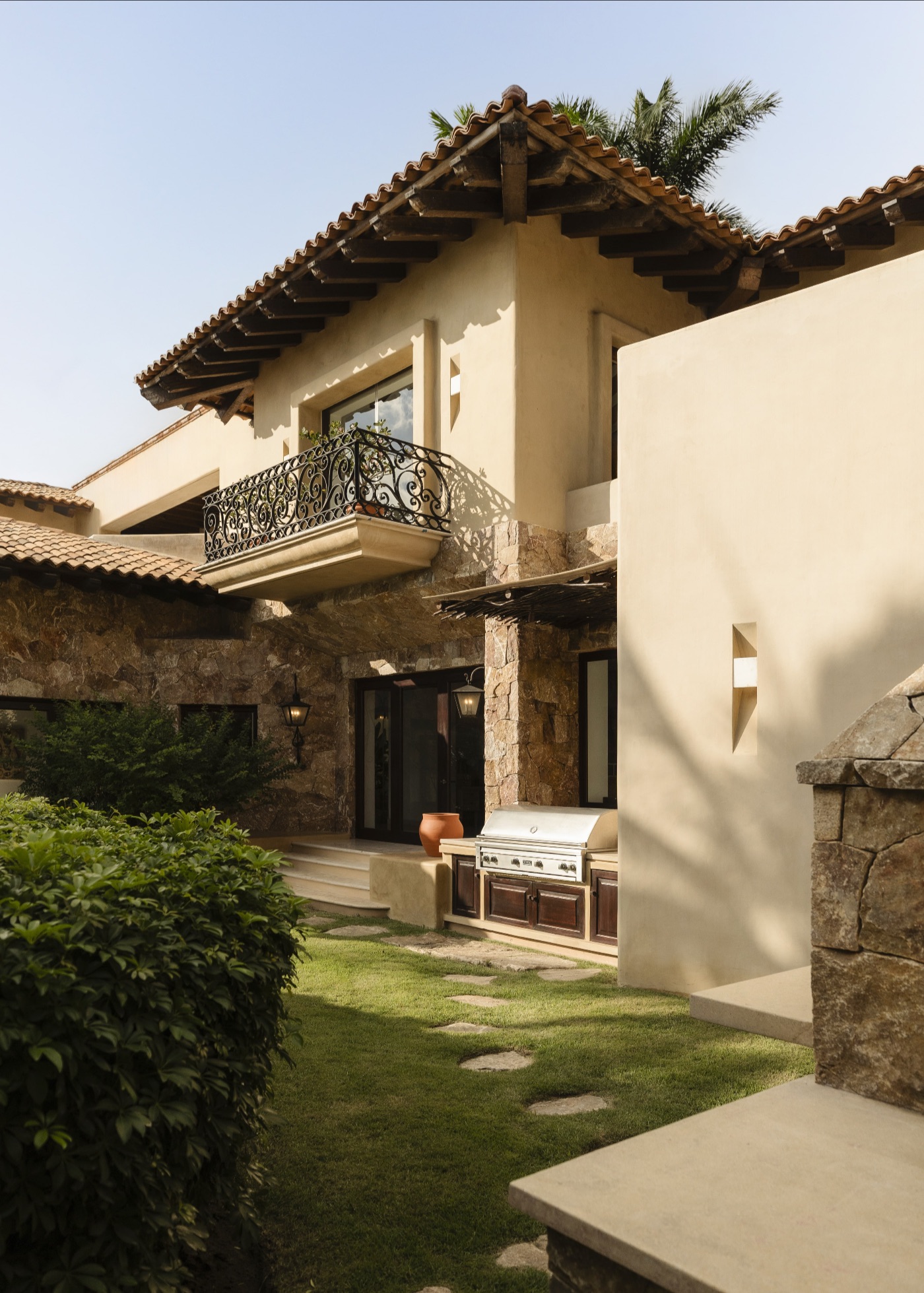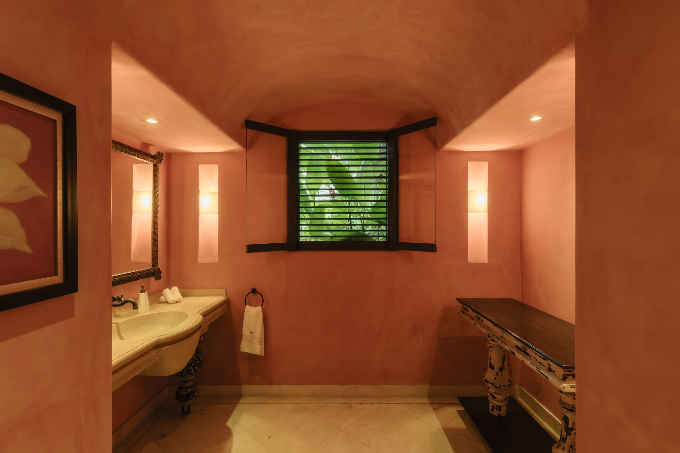 Inside, La Vida Dulce’s hacienda-inspired design combines high ceilings, natural materials and handcrafted details with a full suite of contemporary comforts. A large family room with a 65″ flat-screen TV anchors casual gatherings, while a private movie theater with a 140″ HD screen, projector and surround sound is made for cinematic evenings in. The estate’s complete home automation and media server ensure that lighting, music and entertainment are always exactly as you want them, throughout the villa’s many living spaces.
