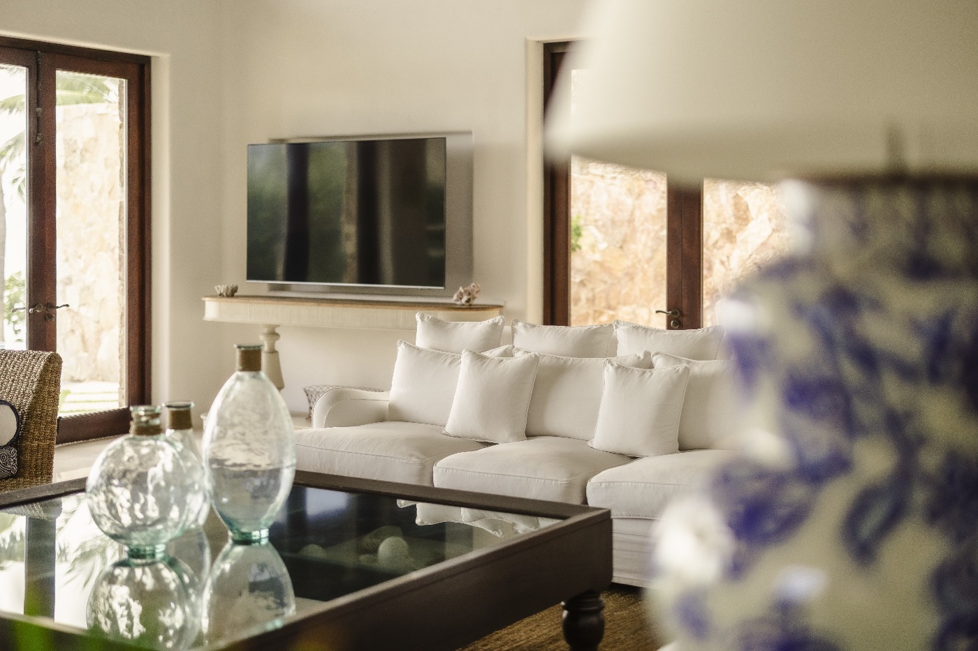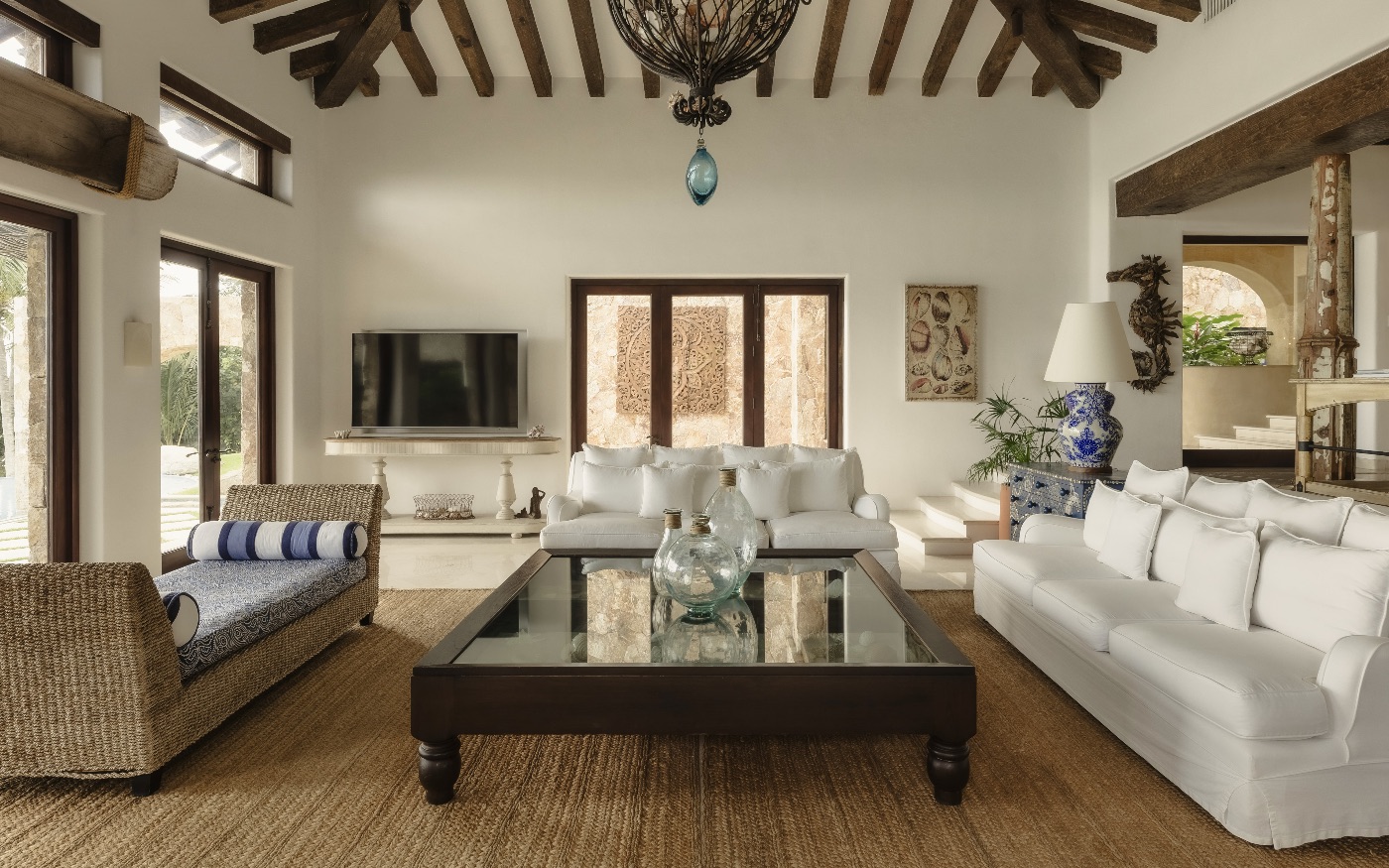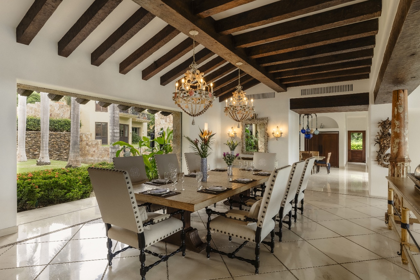 The villa’s eight bedrooms and ten bathrooms are thoughtfully spread across the estate to provide privacy and ease for larger groups. Each suite is designed as a calm retreat, with soft linens, generous bathrooms and either garden or ocean views, making La Vida Dulce ideal for multi-generational families, couples traveling together or milestone celebrations. High-speed WiFi runs throughout, so guests can stay as connected—or disconnected—as they choose.