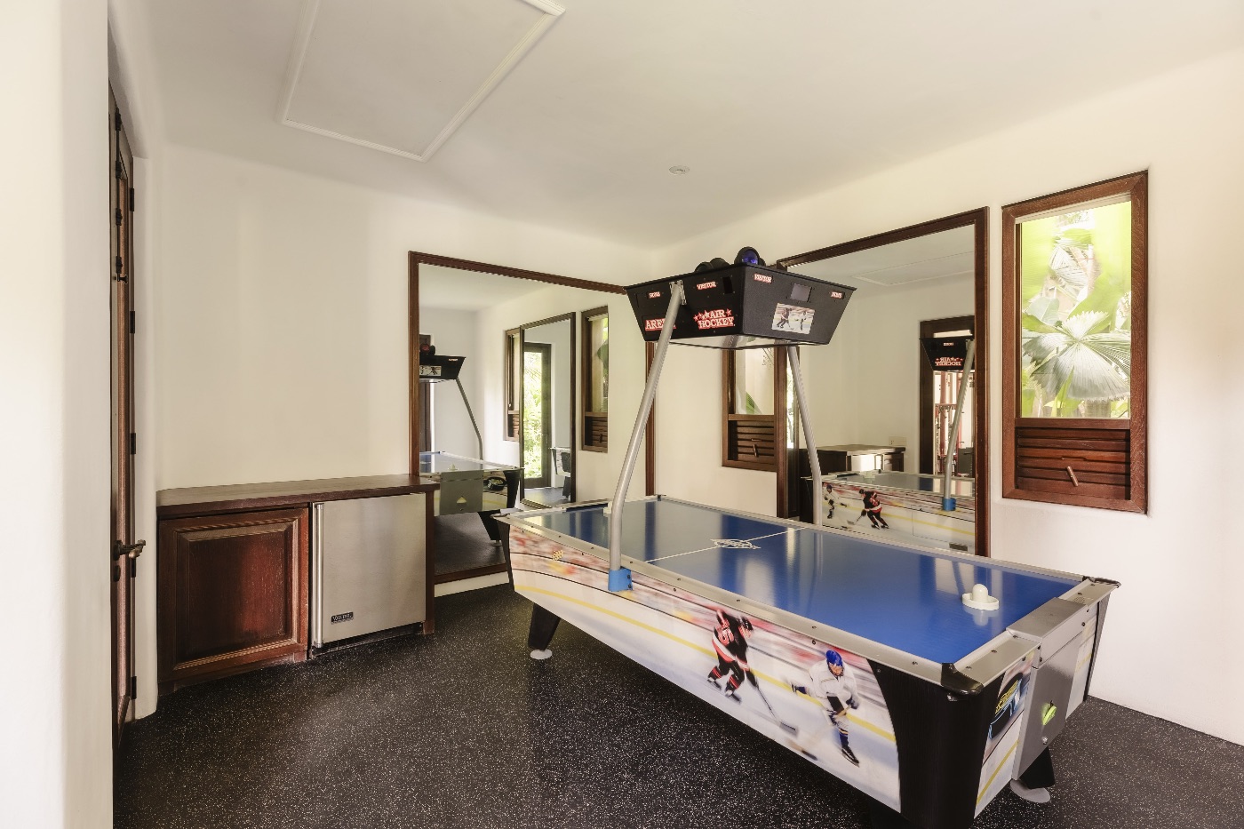 At the heart of the property, a heated infinity pool appears to merge with the horizon, complete with a playful rope swing and underwater speakers that turn every swim into an experience. Nearby, a generous Jacuzzi, palapa bar, and outdoor lounge areas invite long, unhurried afternoons—barefoot, relaxed, and always within sight and sound of the ocean. An outdoor grill and pizza oven make al fresco dinners feel effortless, whether it’s a casual family night or a fully catered celebration under the stars.