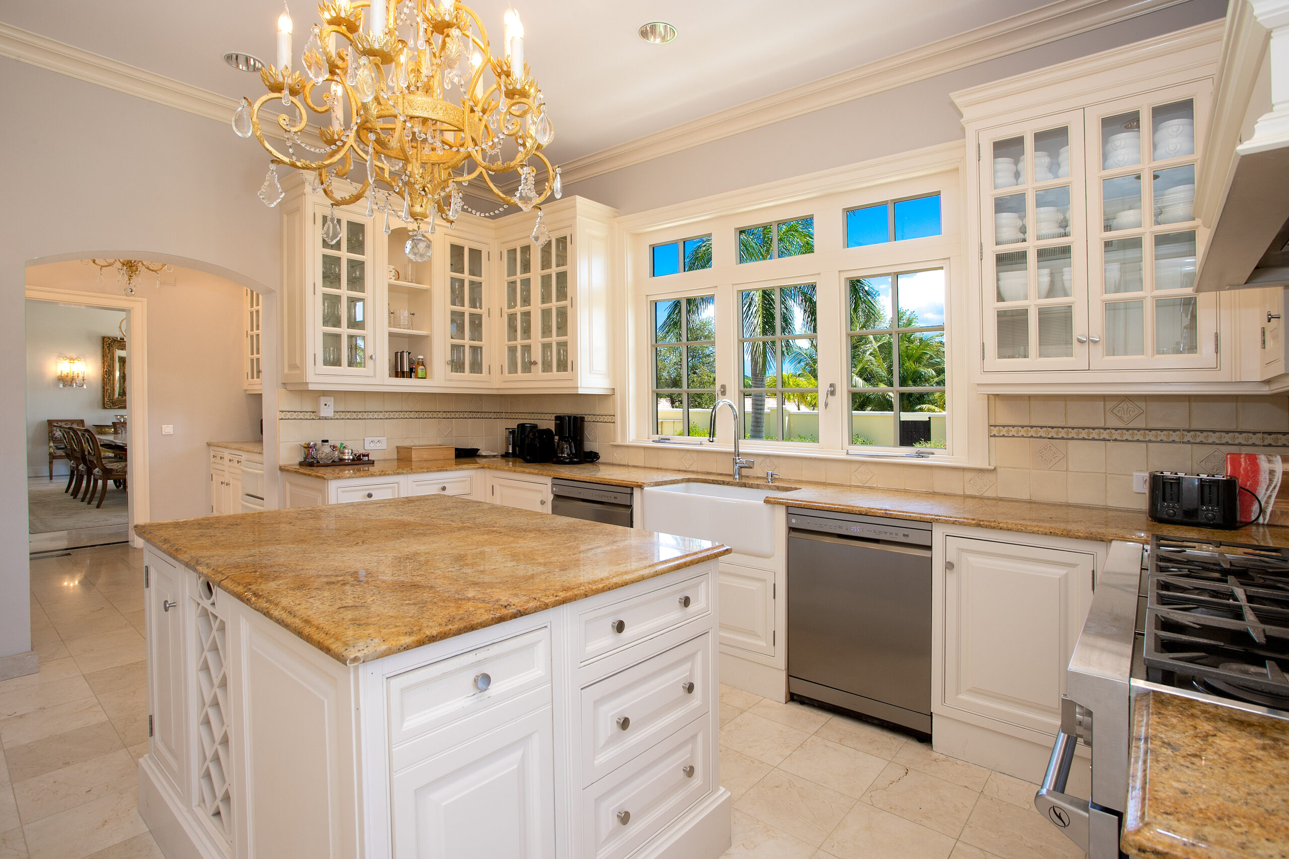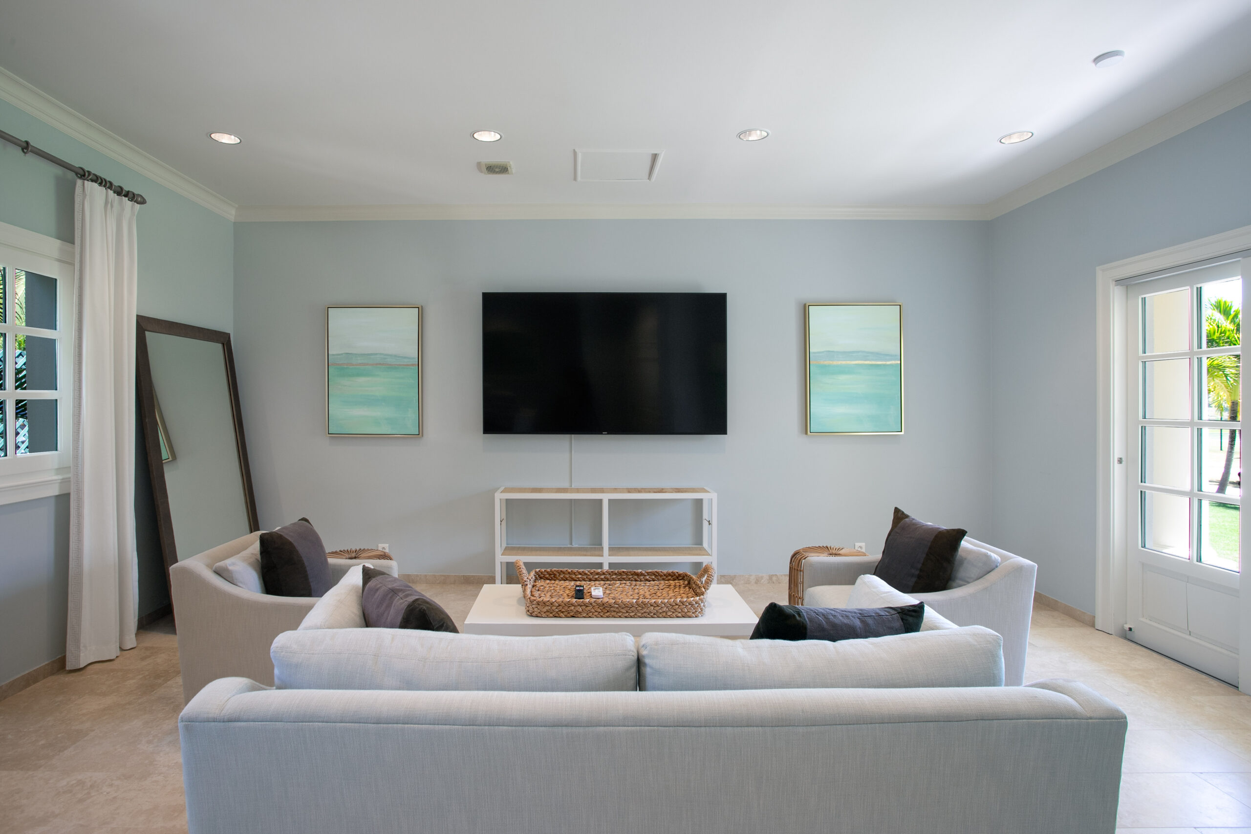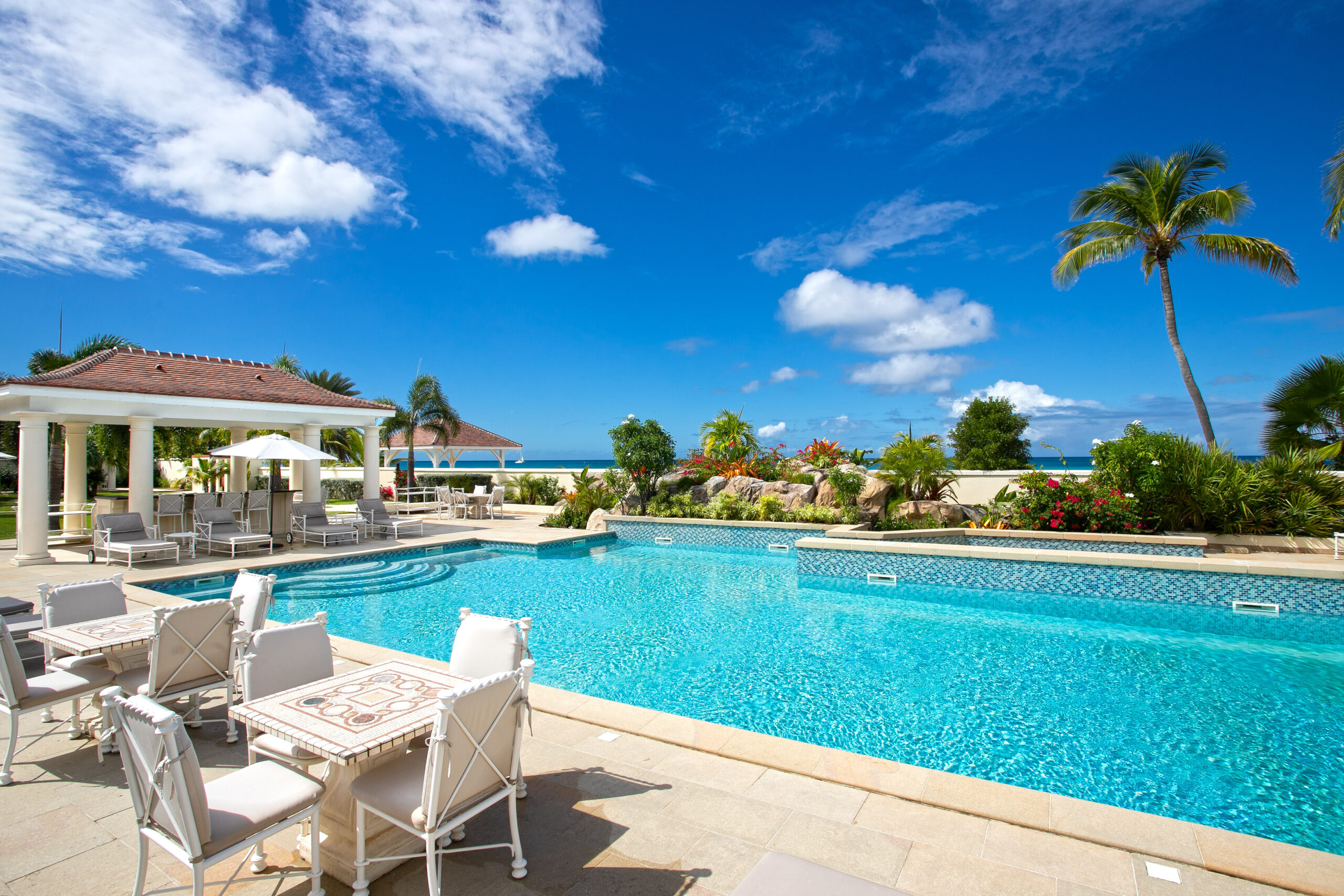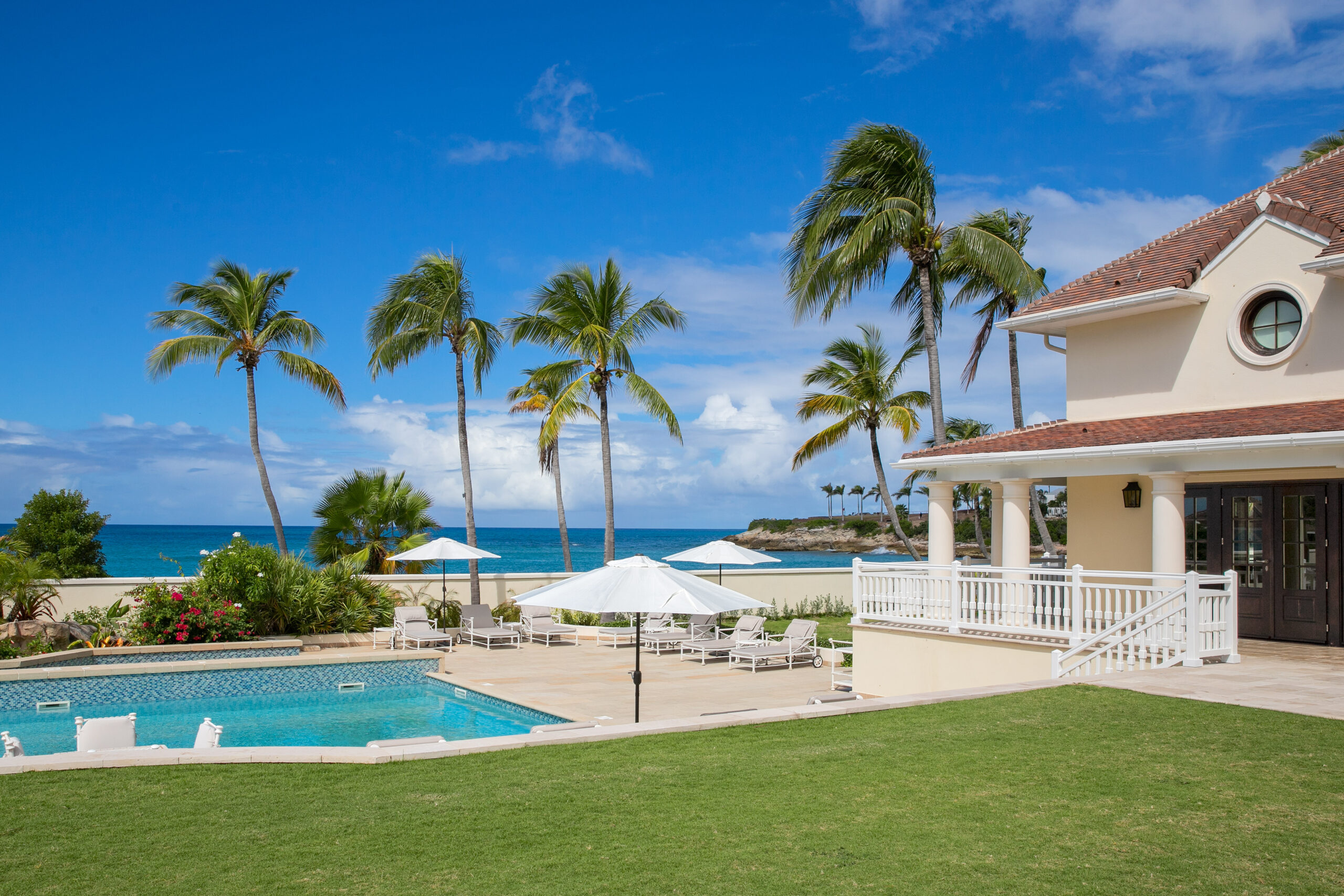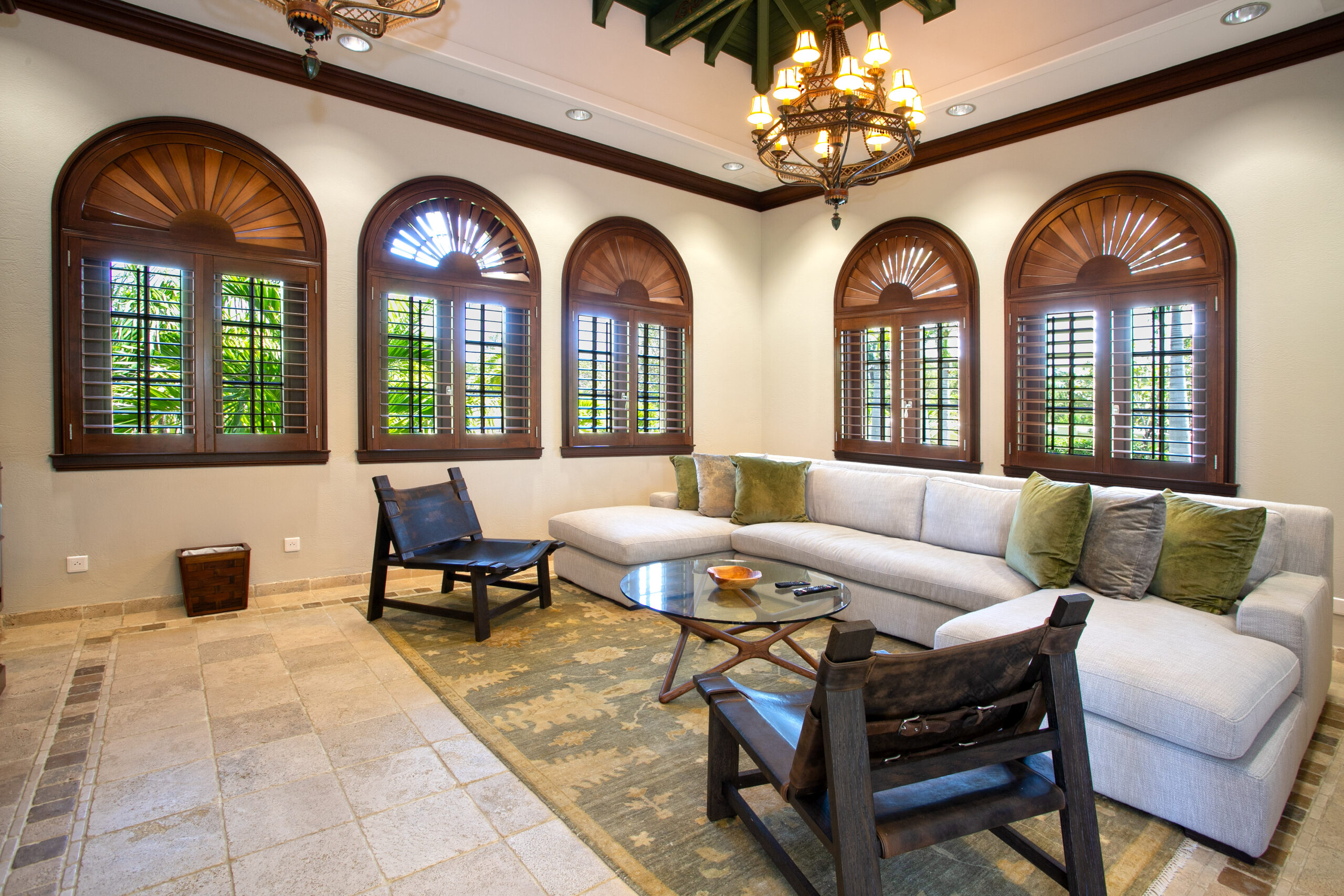 The oceanside villa features 6 King Size bedrooms with full private baths including a two-story master suite with a master bath with Jacuzzi tub and two private balconies facing the pool & ocean. The remaining interior spaces include a fully equipped kitchen, a formal living room, a formal dining room seating 10, and a casual outside dining area and a media room.