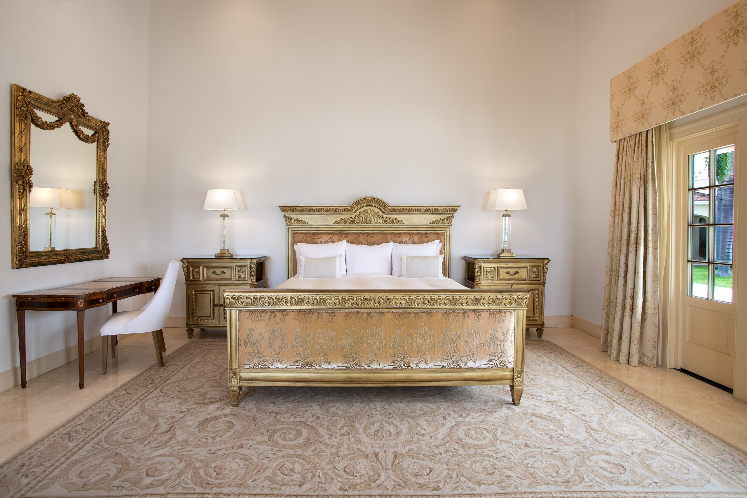 The 4 bedroom garden side villa features the” Jungle Room” with king-size bed and small living room, the “Palm Room” with king-size mahogany bed and a 2 bedroom Suite with queen size beds, a shared living room, and cozy dining room. There is also a huge commercial catering kitchen.