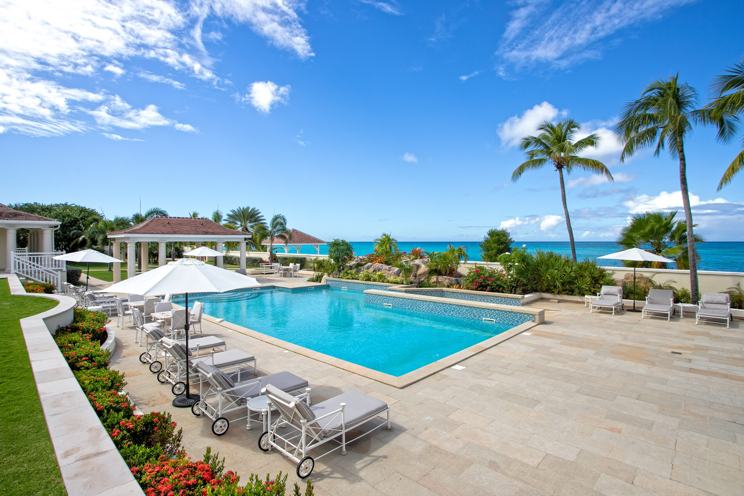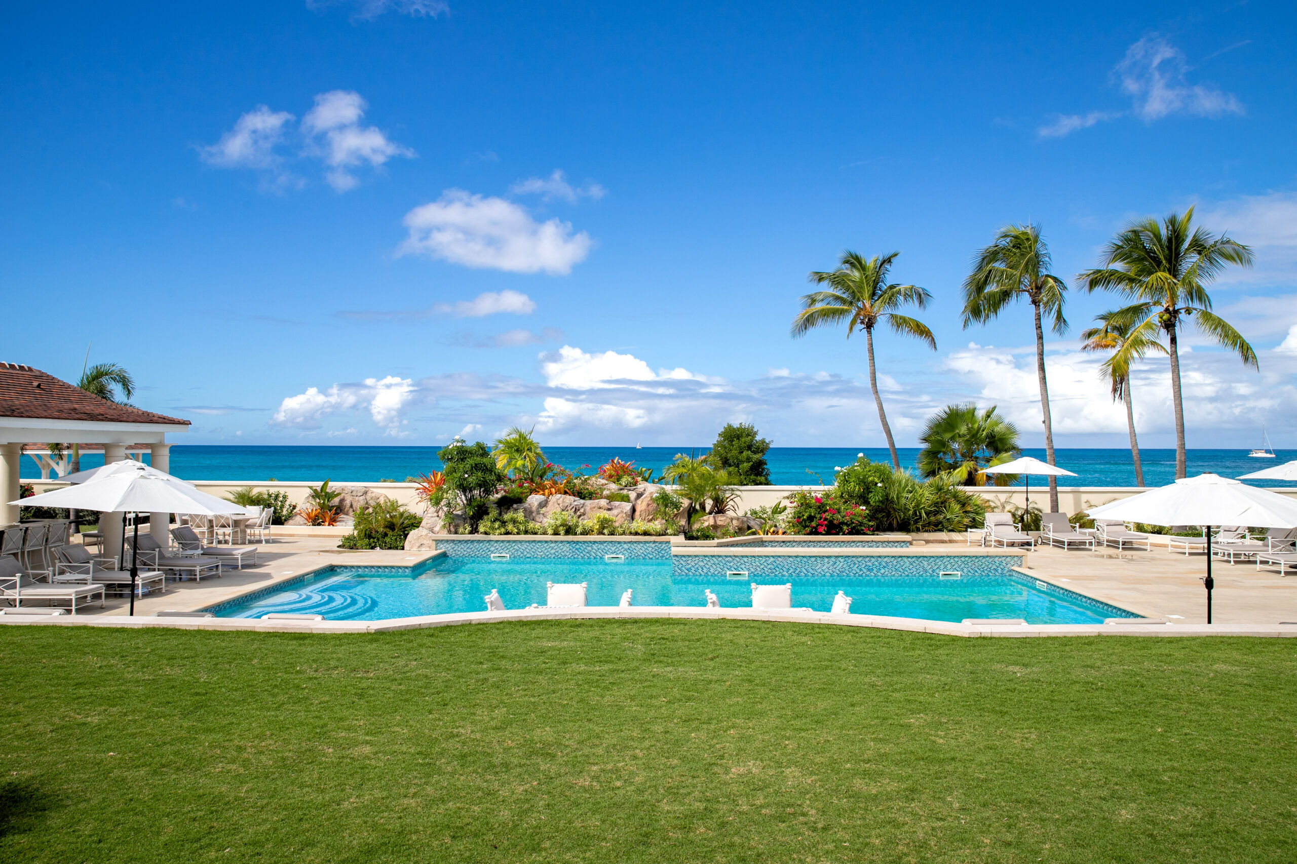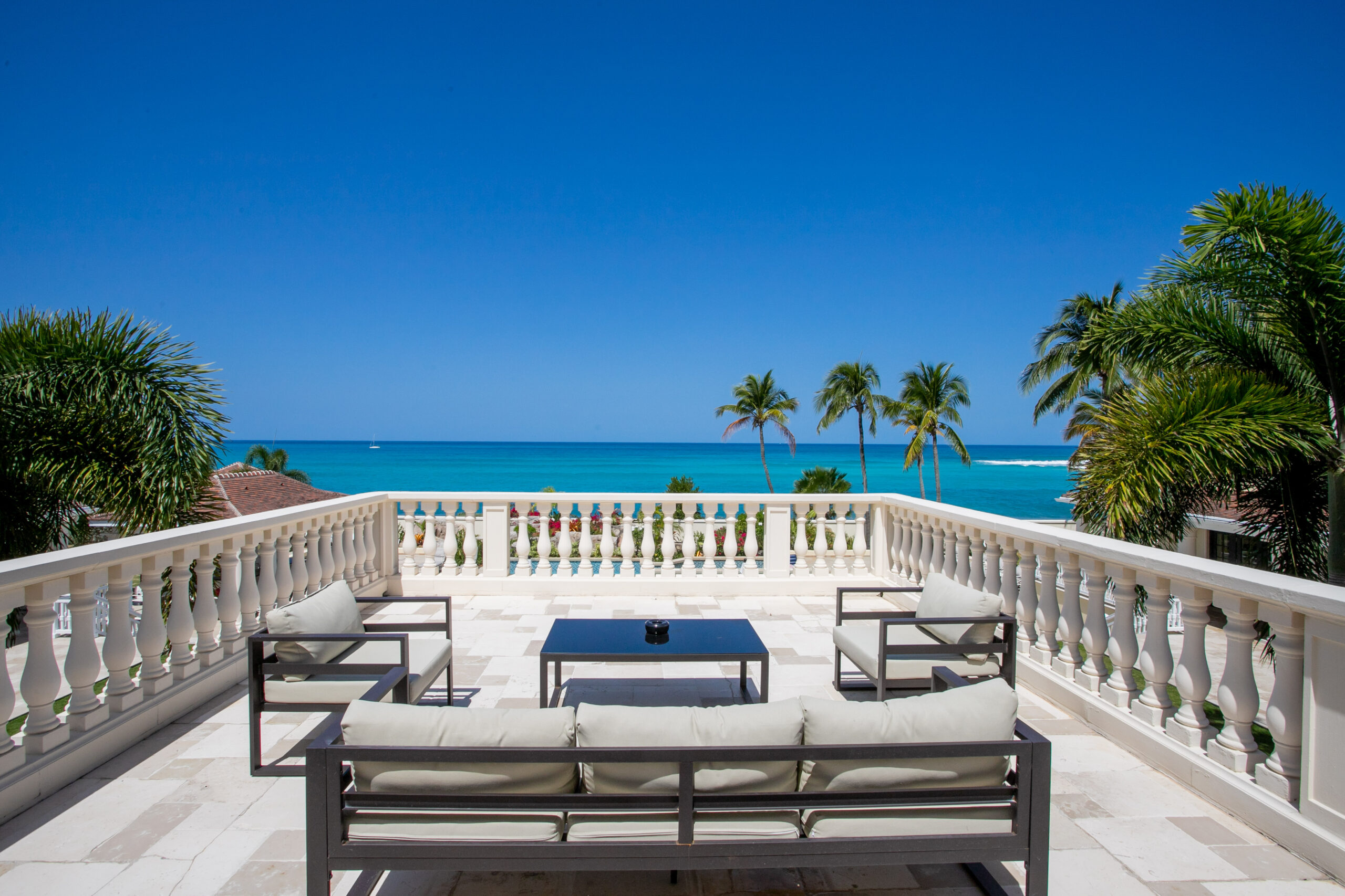 The oceanside villa features 6 King Size bedrooms with full private baths including a two-story master suite with a master bath with Jacuzzi tub and two private balconies facing the pool & ocean. The remaining interior spaces include a fully equipped kitchen, a formal living room, a formal dining room seating 10, and a casual outside dining area and a media room.