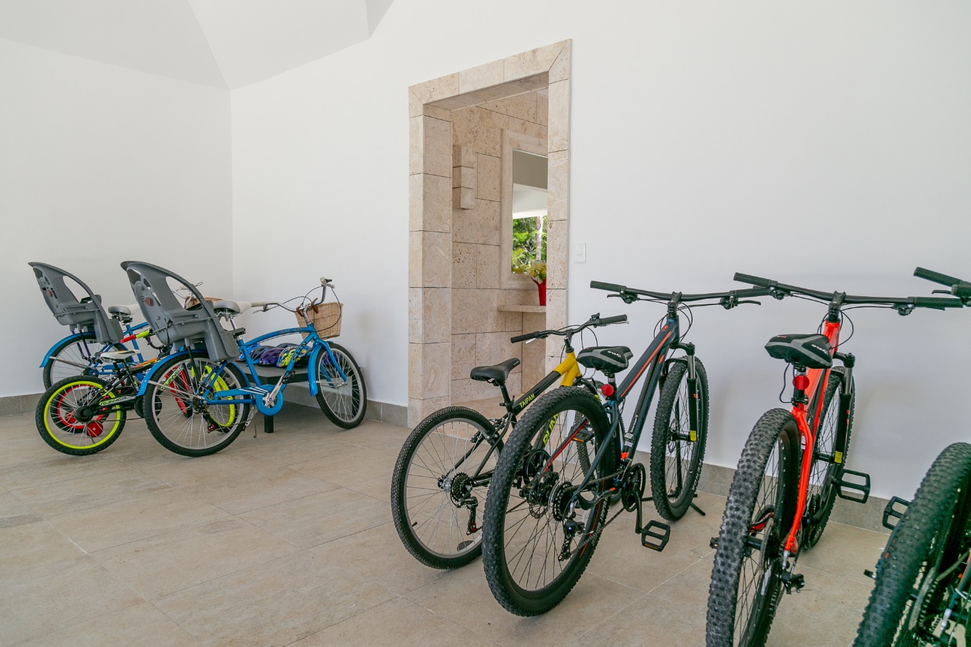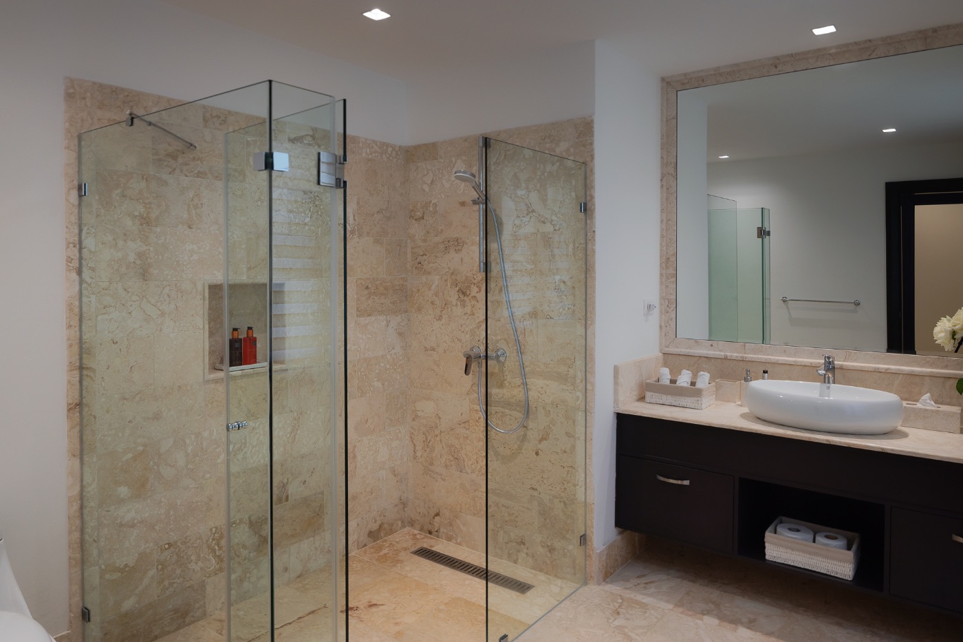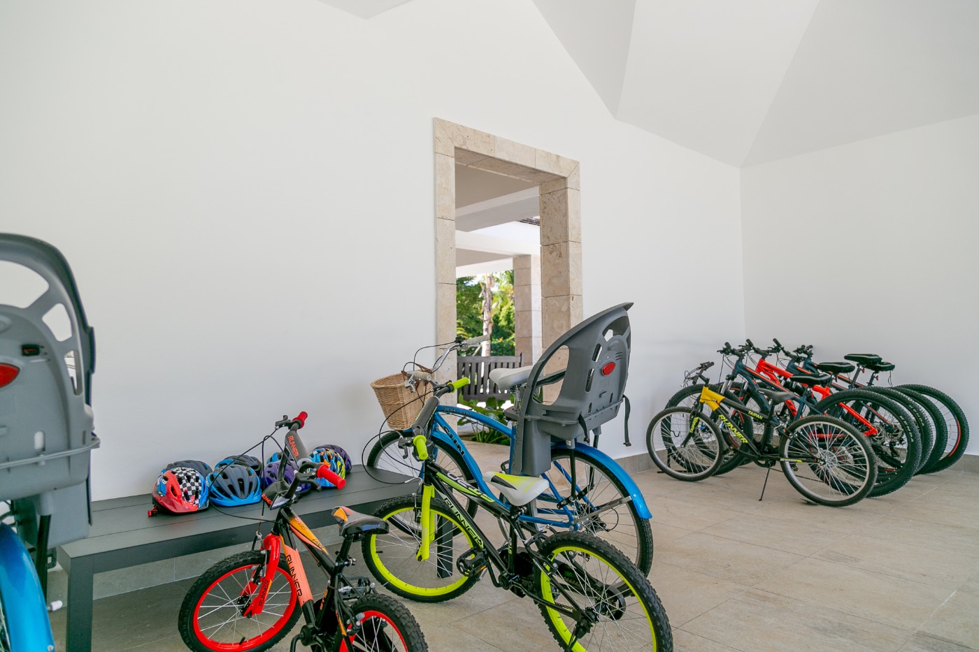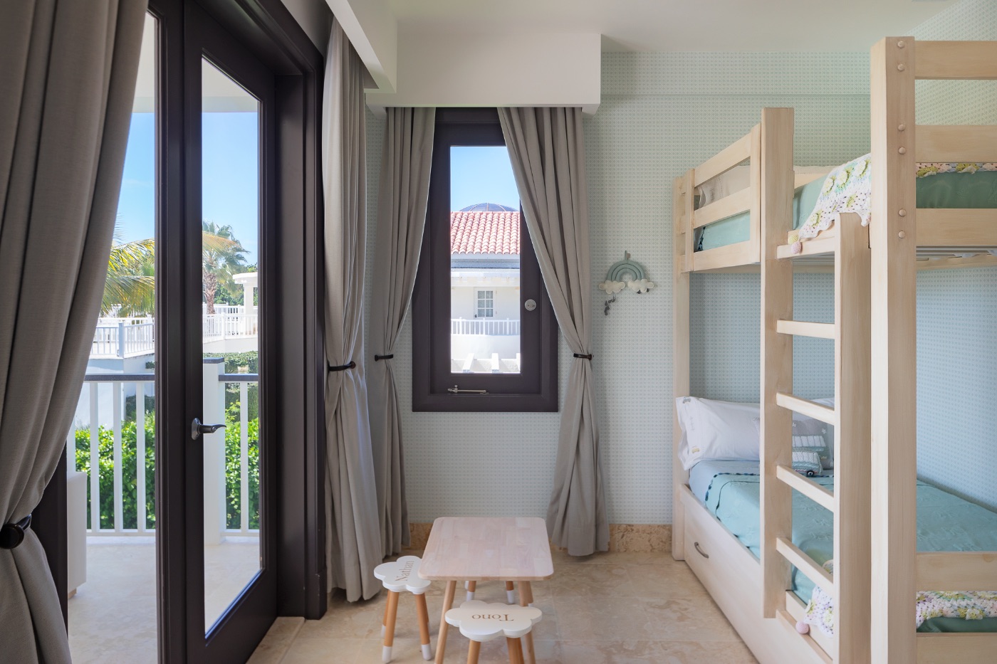 Once the long and exciting day is over find your bedroom. In the main house, go upstairs to get to the master bedroom with a King bed, and an adjoining bedroom with a bunk bed and a pullout bed only for children, up to three (3 twins). The second bedroom has a King bed and an adjoining bedroom with a bunk bed and a pullout bed also only for 3 children max. (3 twins). The third bedroom has 2 queen beds. On the ground floor is the fourth bedroom with a king bed. Next is the guest house a fifth bedroom with a King Bed, a sixth bedroom with 2 queen beds and a seventh bedroom with a King Bed. All suites have a walk-in closet and an ensuite bathroom.