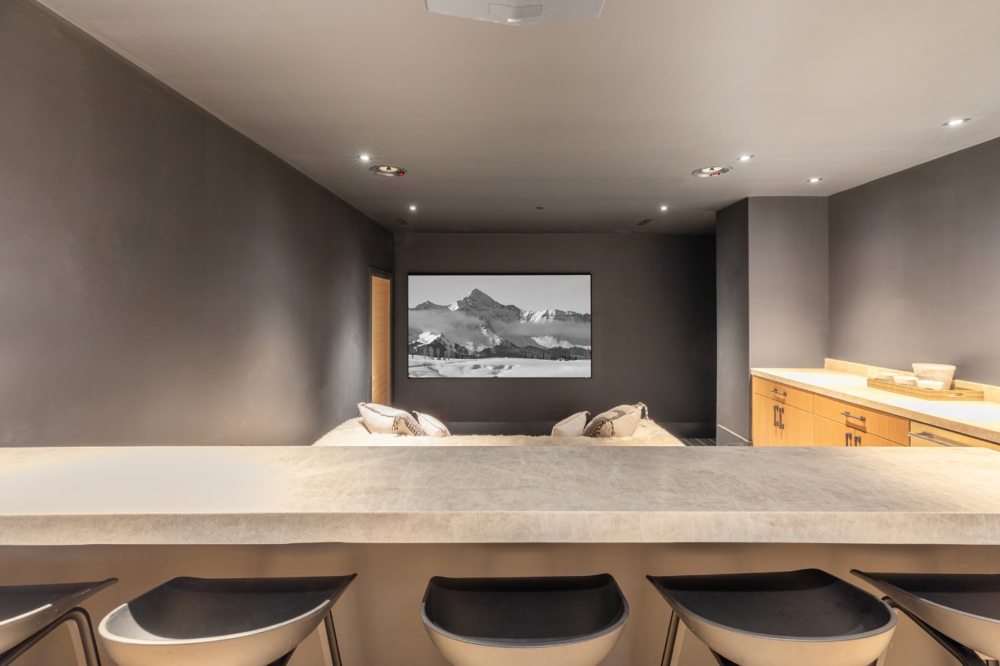 At the heart of the estate, the gourmet kitchen flows effortlessly into generous gathering spaces designed for both lively entertaining and relaxed evenings by the fire. After a day on world-renowned ski trails, unwind in the oversized hot tub while surrounded by serene alpine landscapes, or gather on the outdoor terraces to enjoy crisp mountain air and sunset views.