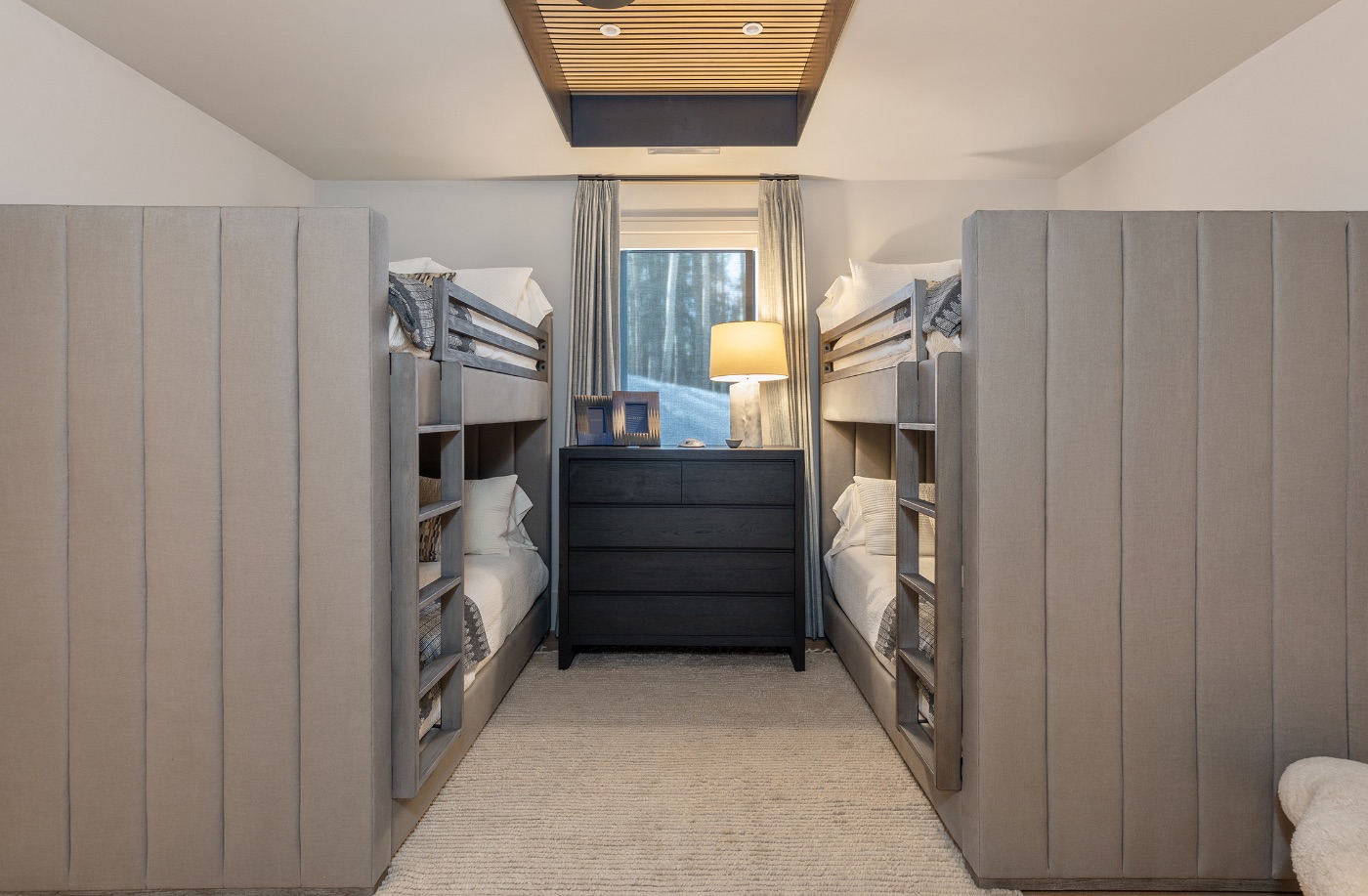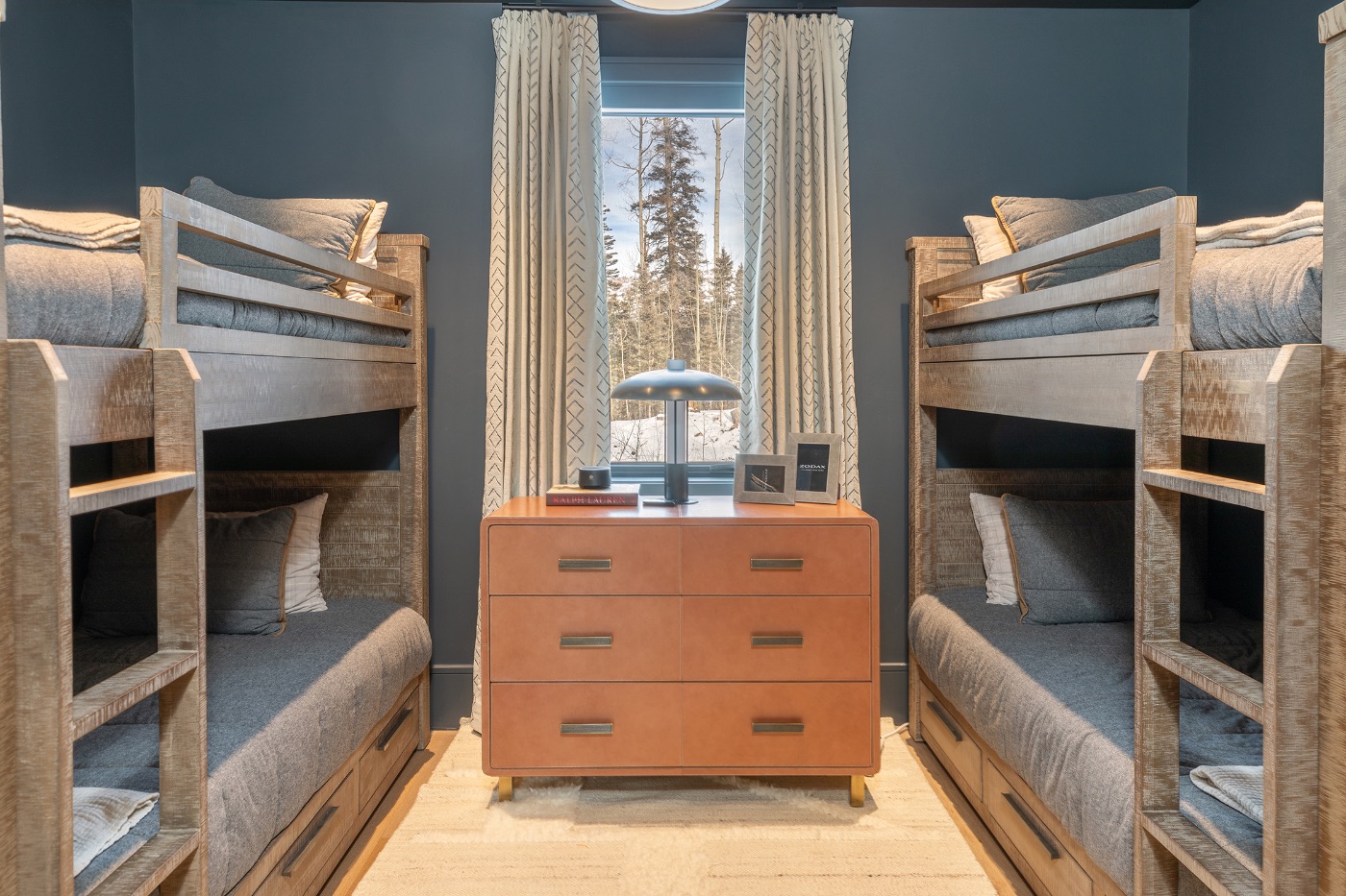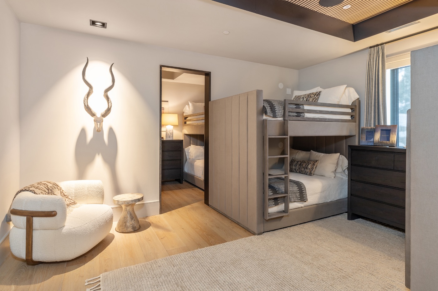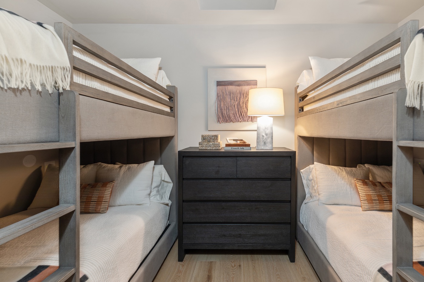 Each bedroom is thoughtfully appointed as a private sanctuary, featuring plush bedding, elevated finishes, and spa-inspired bathrooms. The bunk accommodations provide comfortable and stylish spaces for younger guests or larger groups, while the separate guest house — complete with its own kitchen and living area — offers a discreet retreat for extended family members or guests who value additional privacy.