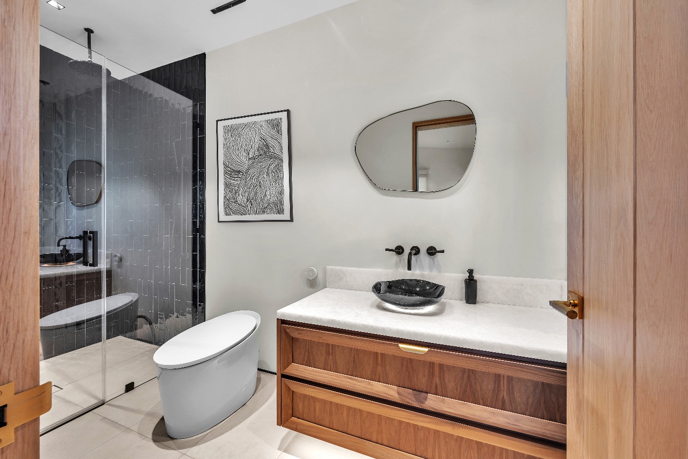 The expansive primary suite offers private terrace access, panoramic ocean views, and a spa-style ensuite bath — a hotel-level experience within the intimacy of a private residence.