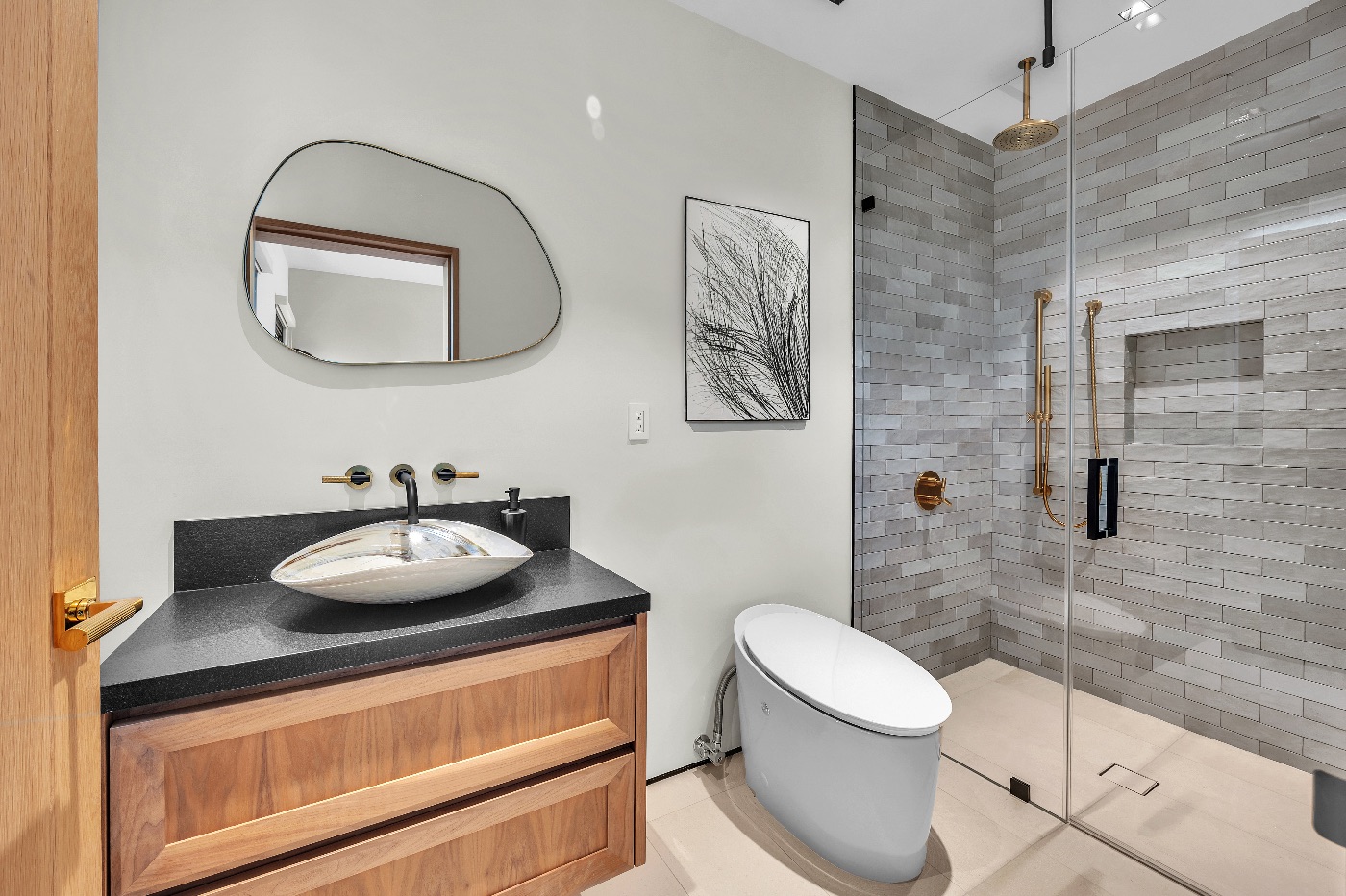 Ensuite bathroom with standing shower and toilet