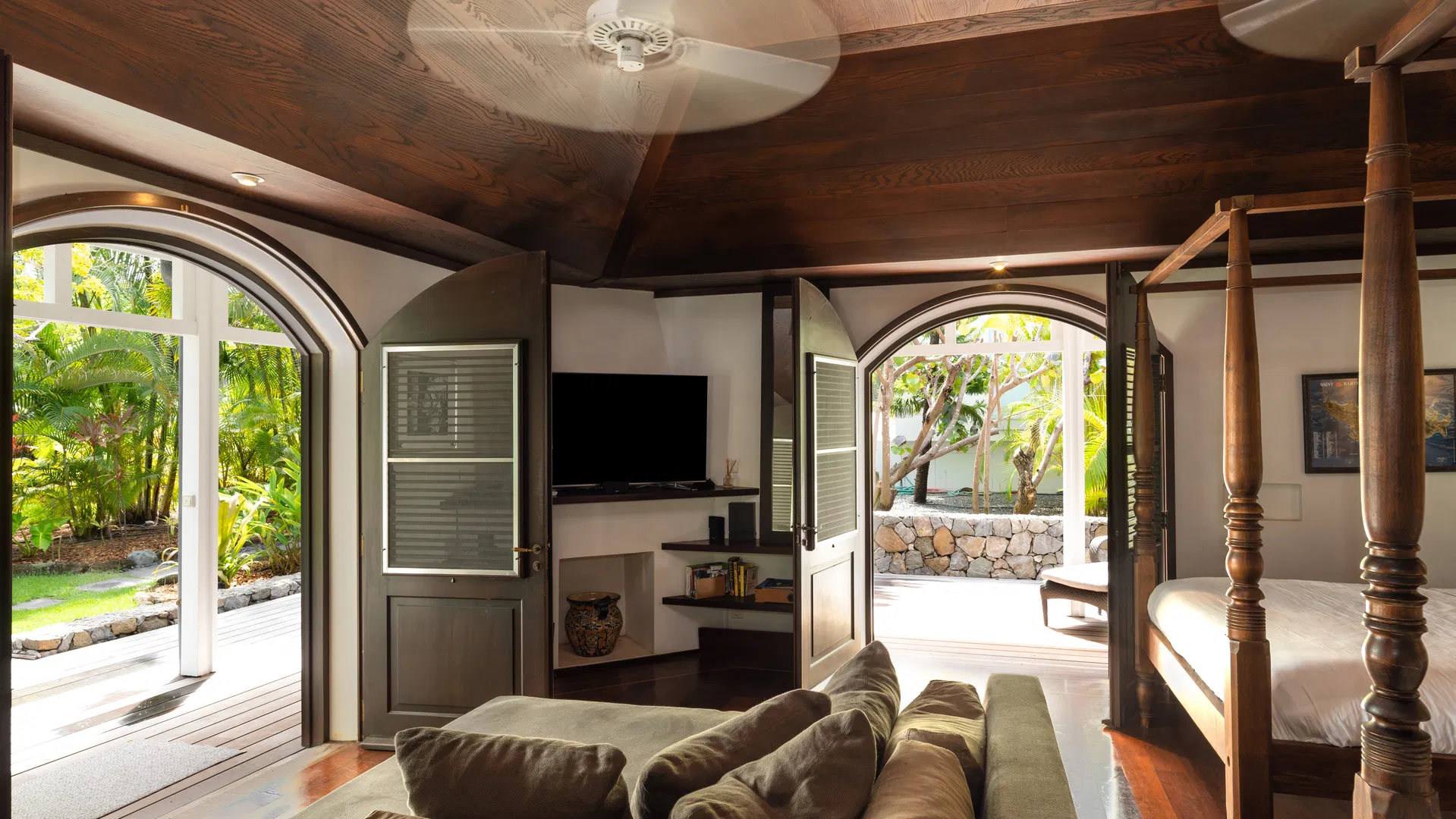 The island opens up as you follow the winding road into Lurin. The palms part, the trade winds blow away, and Manoir De Lurin emerges, nestled in lush tropical vegetation a short distance from Gustavia and the pristine curve of Gouverneur Beach.