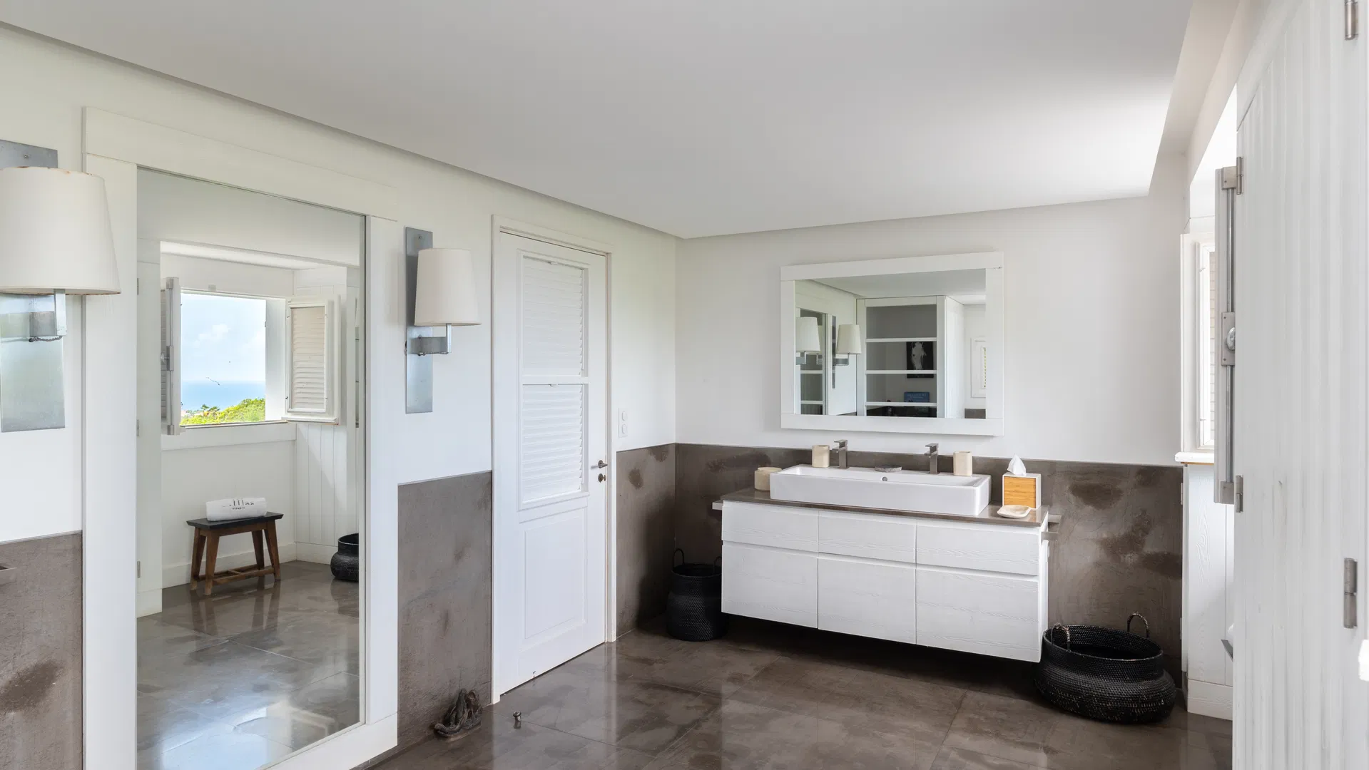 Both bedrooms have access to a terrace and views of the ocean. For parents with young children or caregivers, the extra room (available upon request) creates a flexible family wing.