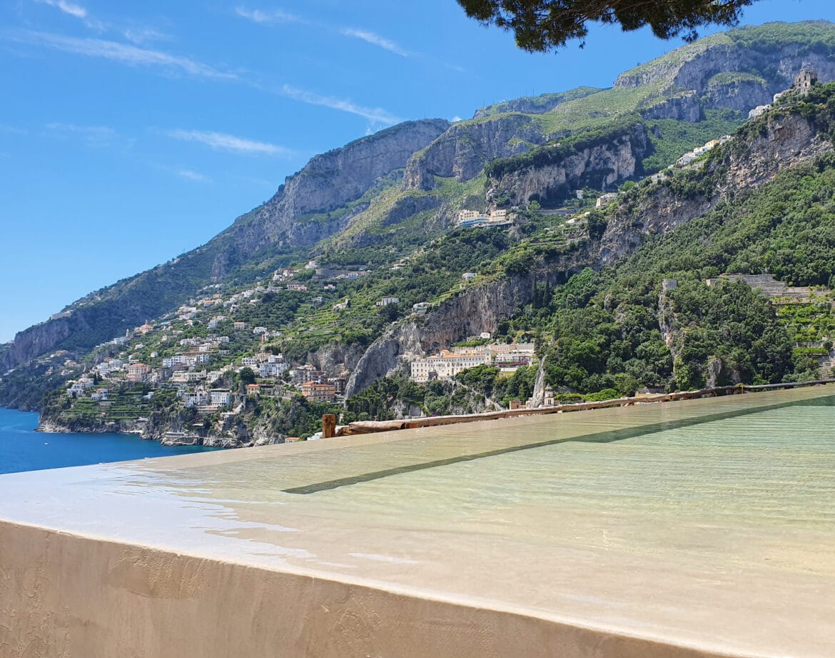 THE PRIVATE INFINITY POOL (not heated) is maximum 1.60 meters deep and is equipped with a whirlpool system with jets at the two ends and a small waterfall. The swimming pool area is equipped with sun chairs. From here you can admire unforgettable views of the sea and of the Amalfi Coast. You will reach the swimming pool from the dining room.