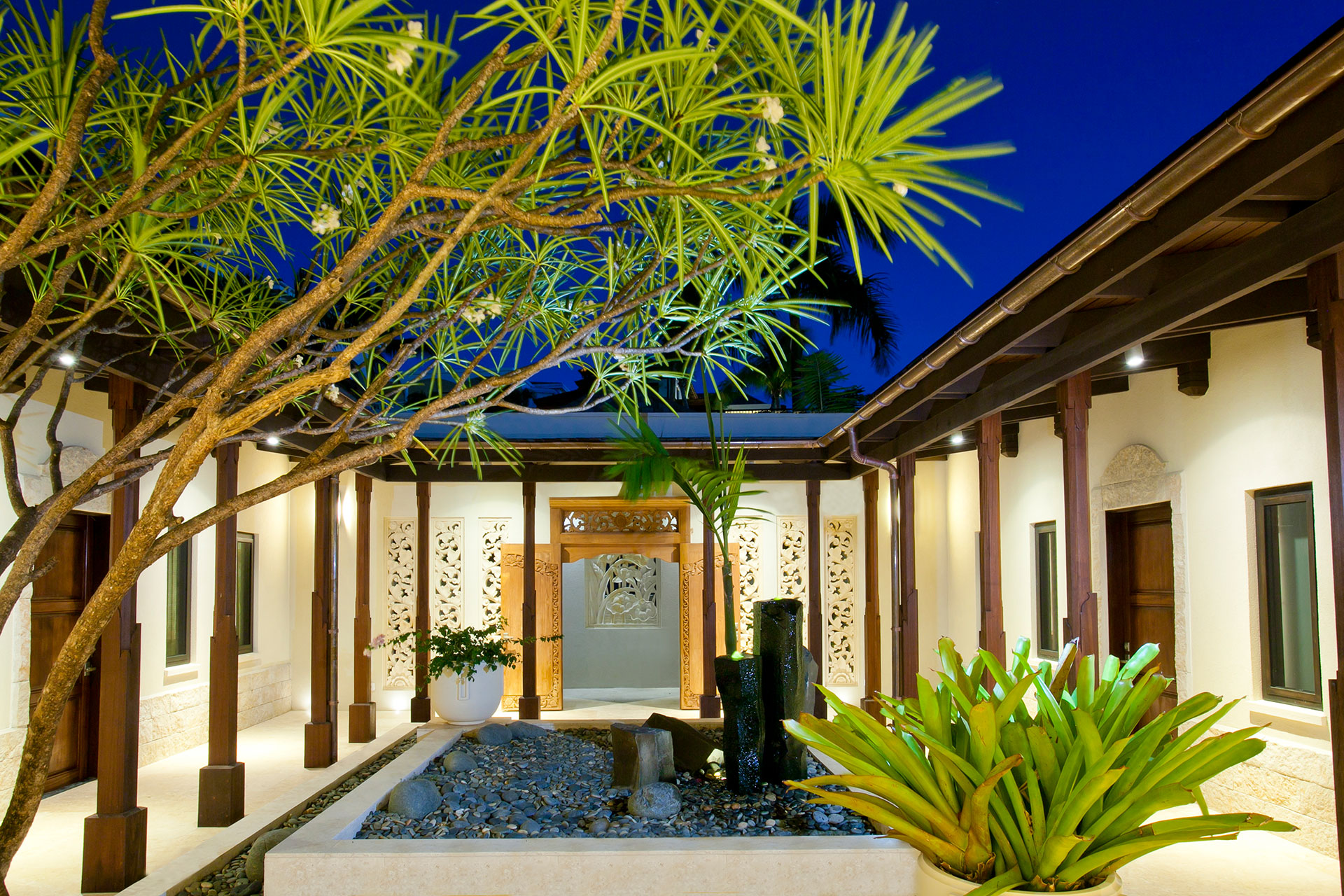 Discover your private Caribbean haven at Villa Nevaeh, an oceanfront sanctuary set on a gated expanse that unfurls into nearly half a mile of pristine sand on Anguilla’s Long Bay. Here, the days begin with the soft hush of waves and the faint scent of salt in the air, and they end with skies so clear you’ll find yourself stargazing long after dinner. Inspired by Anguillan architecture and layered with Balinese design details, Nevaeh feels both elegant and deeply relaxed—modern lines softened by warm woods, temple doors, lantern glow, and the quiet serenity of Japanese-style garden elements around the home’s central courtyard.