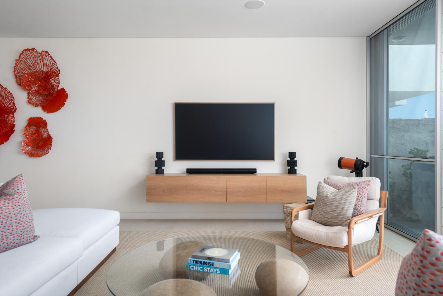 Arrival is immediately rejuvenating. Wide openings and simple, uncluttered lines allow trade winds to flow, and a neutral color scheme and organic materials like wood, stone, and textured linens foster a serene ambiance. Easy outdoor living from dawn to dusk is made possible by sliding glass walls that open to sun decks and lounge terraces. Four calm bedrooms offer seclusion and comfort after days on the water, while the open-plan great room is anchored by an ocean-facing kitchen that makes gatherings simple.