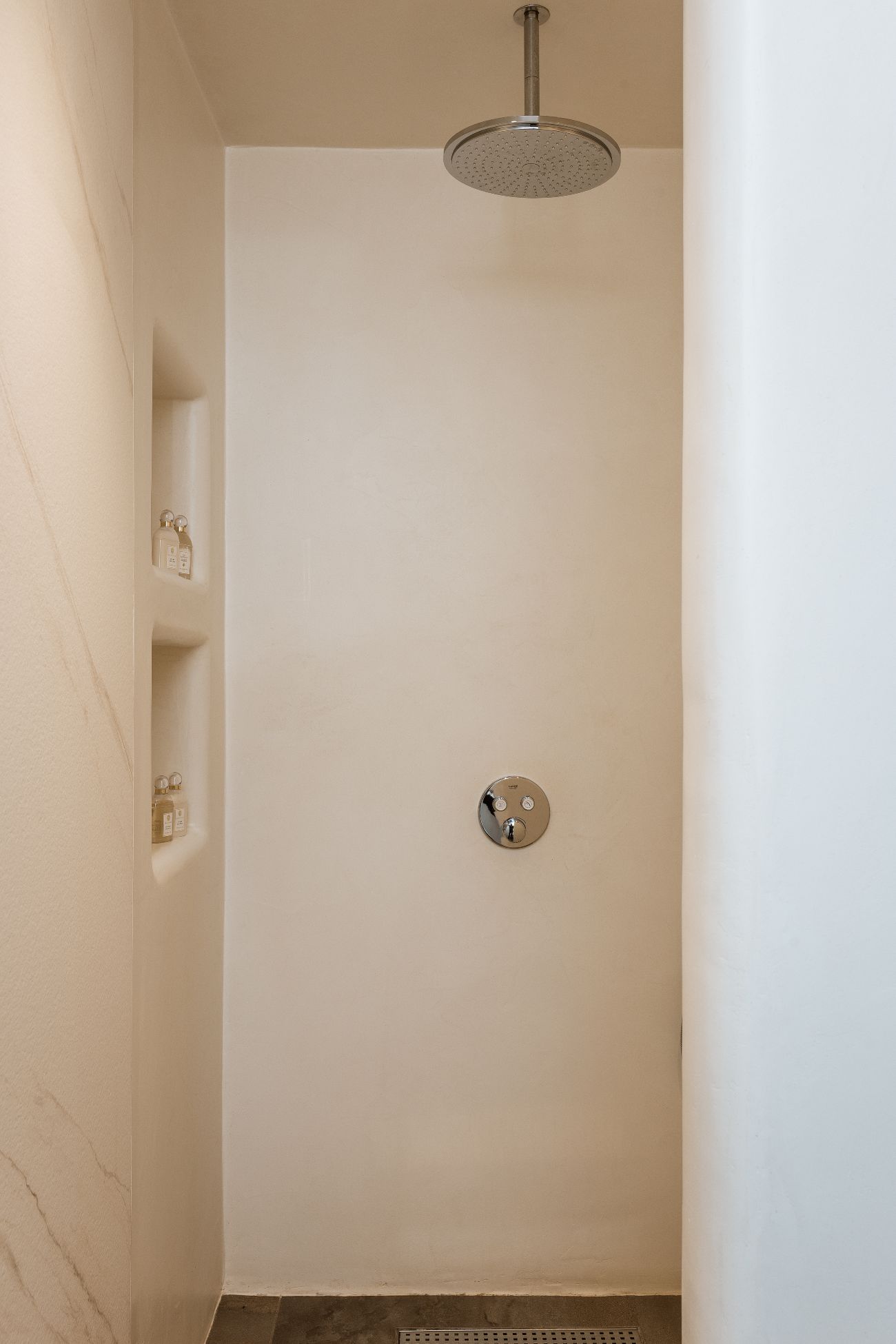 The bedrooms are spread over three levels, each with a king-size bed and an en-suite shower. The master bedroom on the top floor has its own private terrace with stunning sea views.