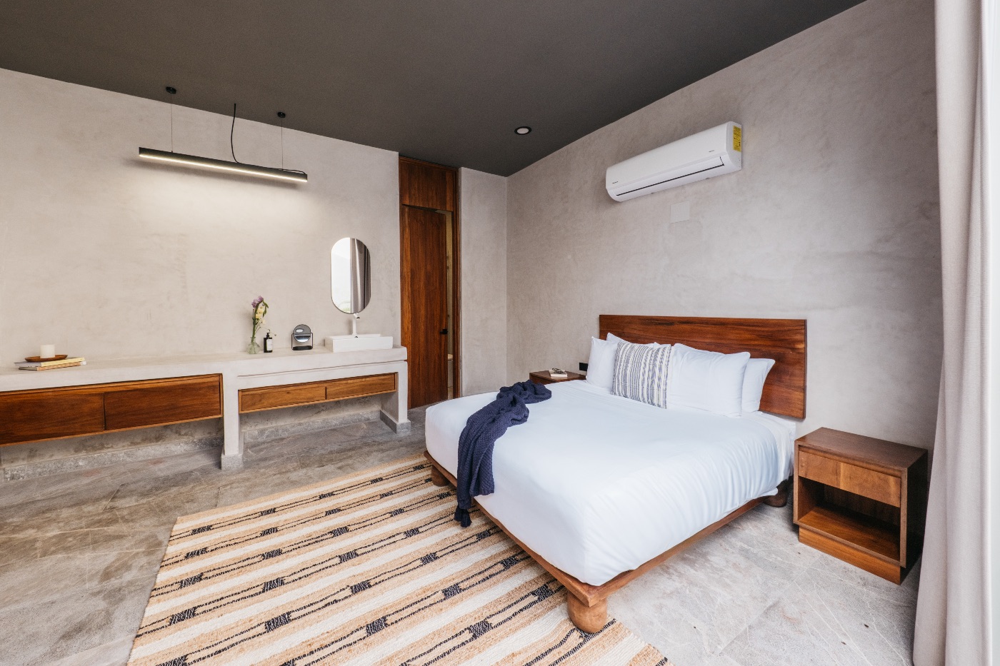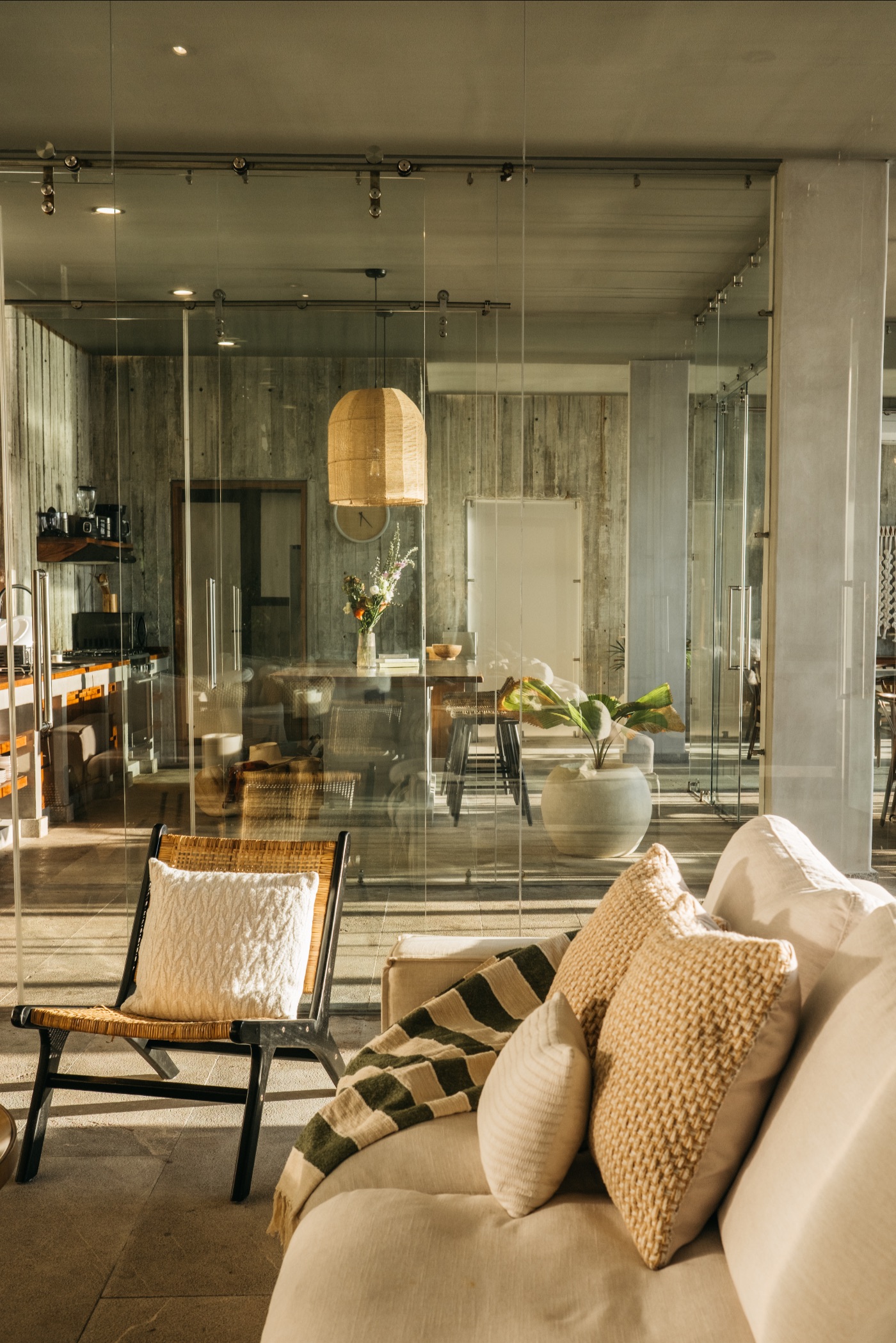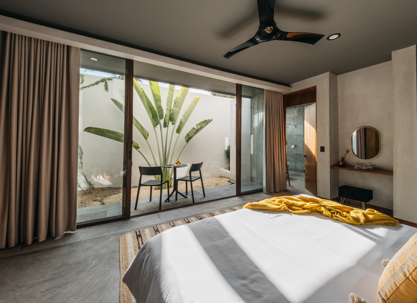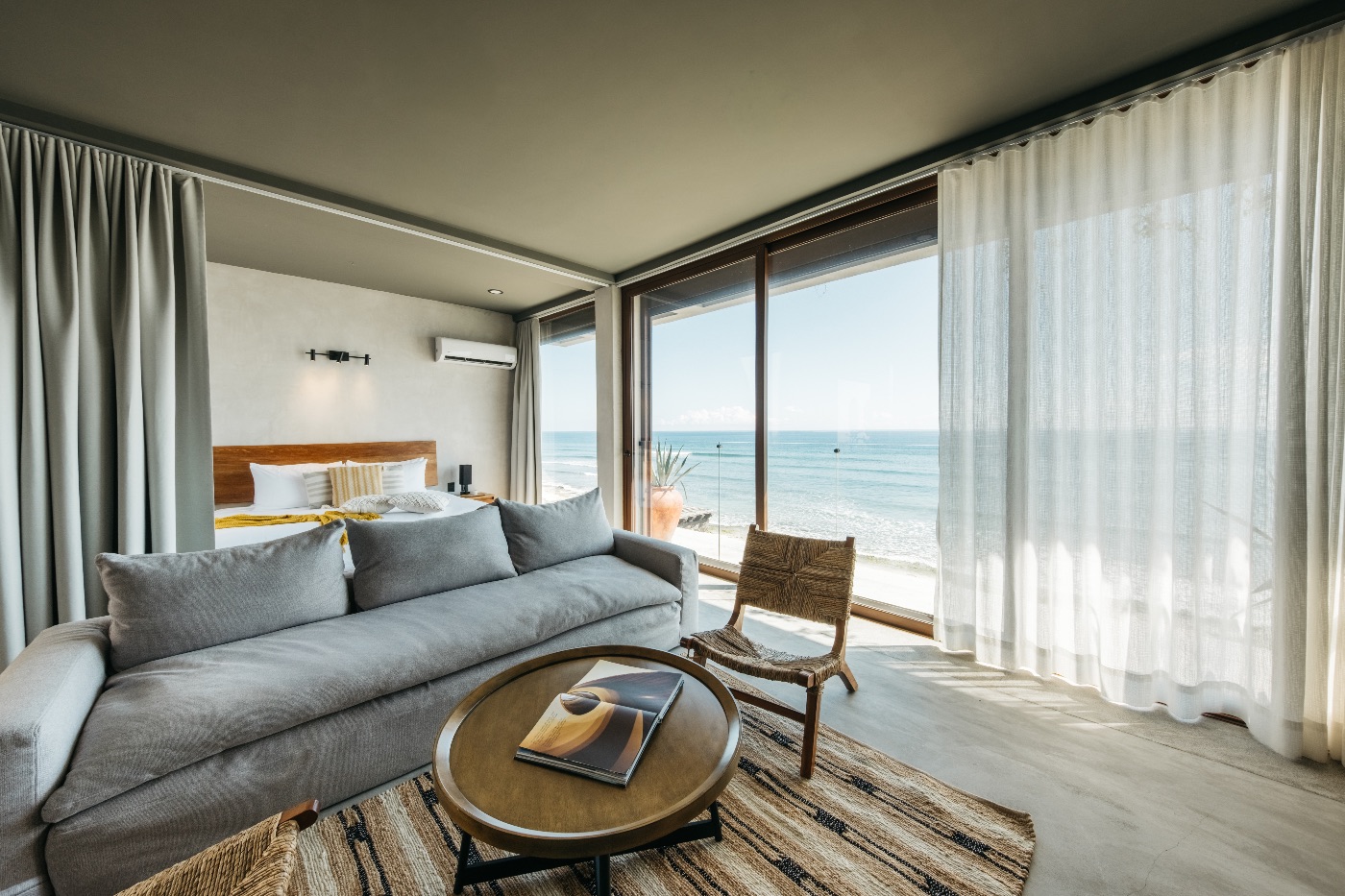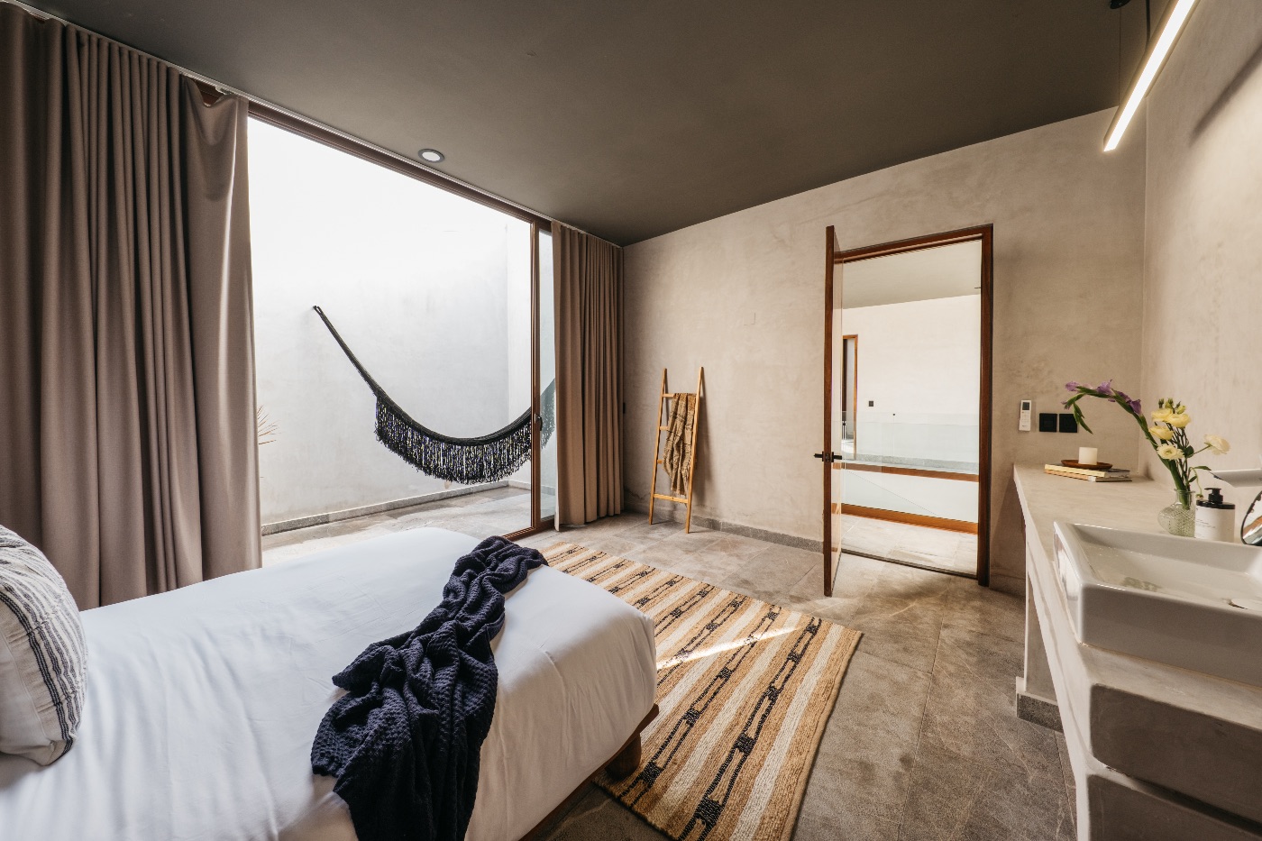 Situated on the serene shores of Tankah Bay, only ten minutes’ drive from bustling Tulum, Tankah Arthouse strikes a balance between privacy and convenient access to nightlife, dining, and shopping. Through striking floor-to-ceiling windows, modern architecture blends with cozy, welcoming interiors that are all focused on expansive views of the Caribbean.