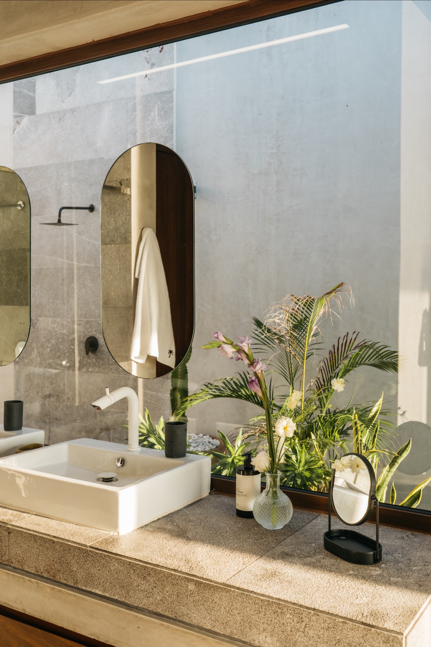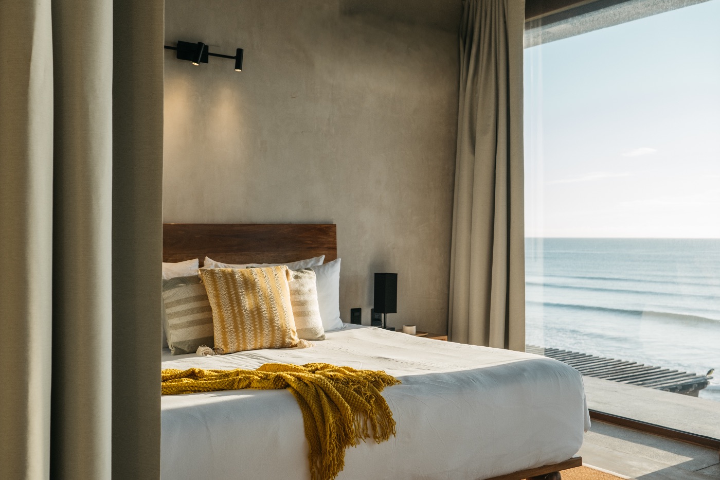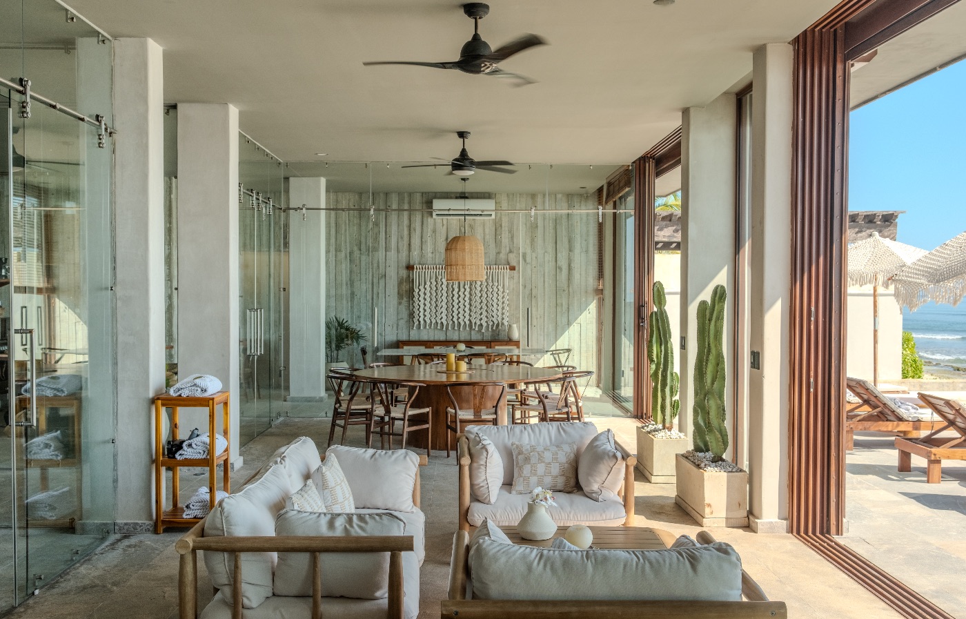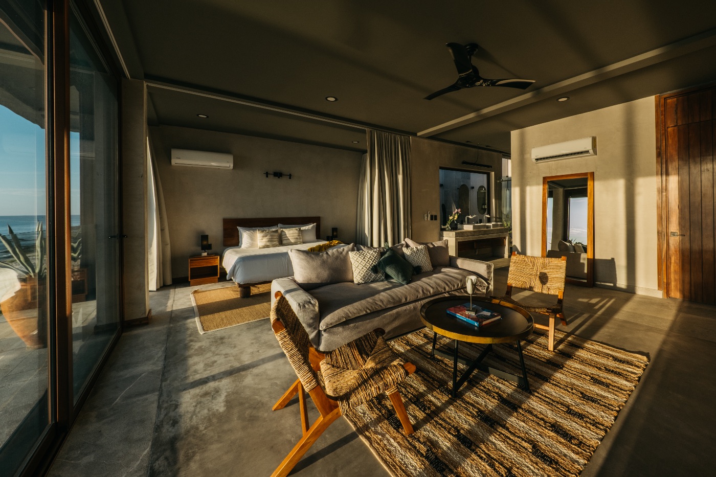 Seven bedrooms with ensuite bathrooms and windows framing the ocean from floor to ceiling