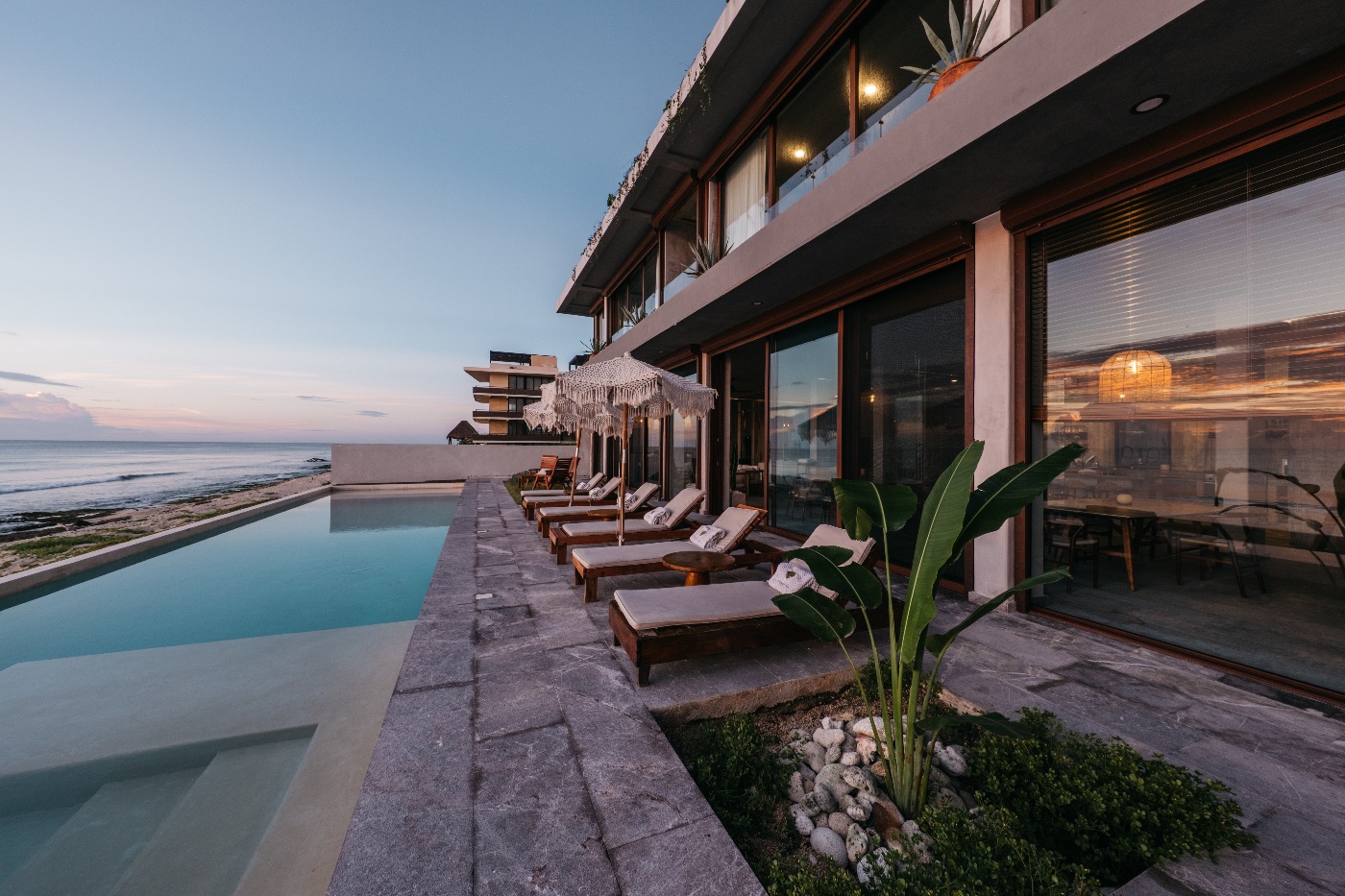 The magic happens outdoors, where you can swim, snorkel, or sunbathe in Tankah Bay’s crystal-clear waters, an infinity pool that appears to melt into the ocean, and direct access to immaculate shoreline. Restorative, unbroken self-care is ensured by designated areas for yoga, massages, and fitness.