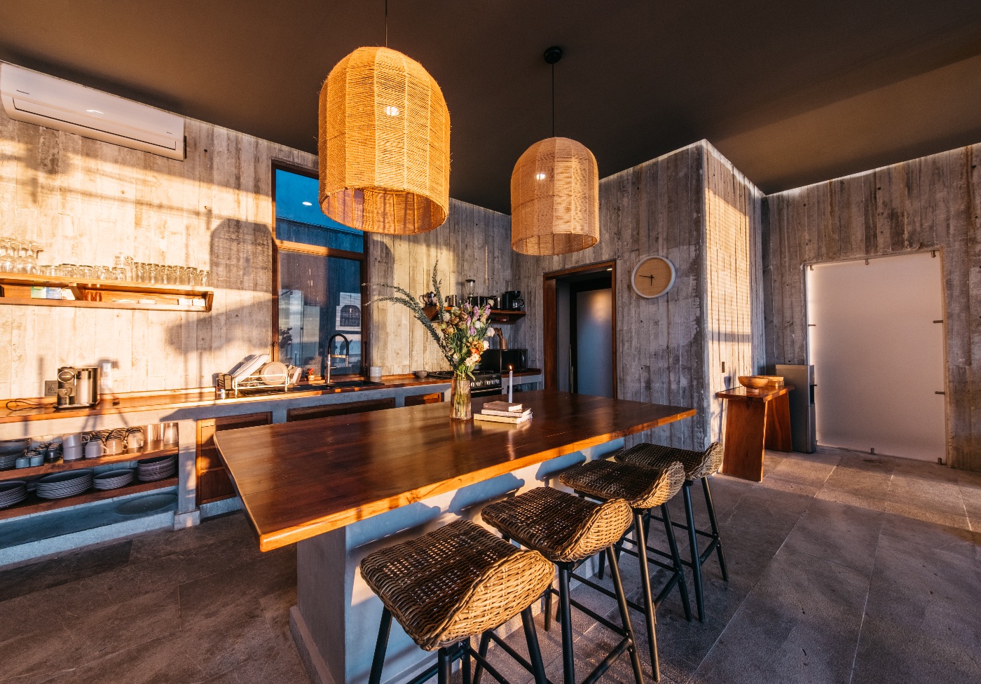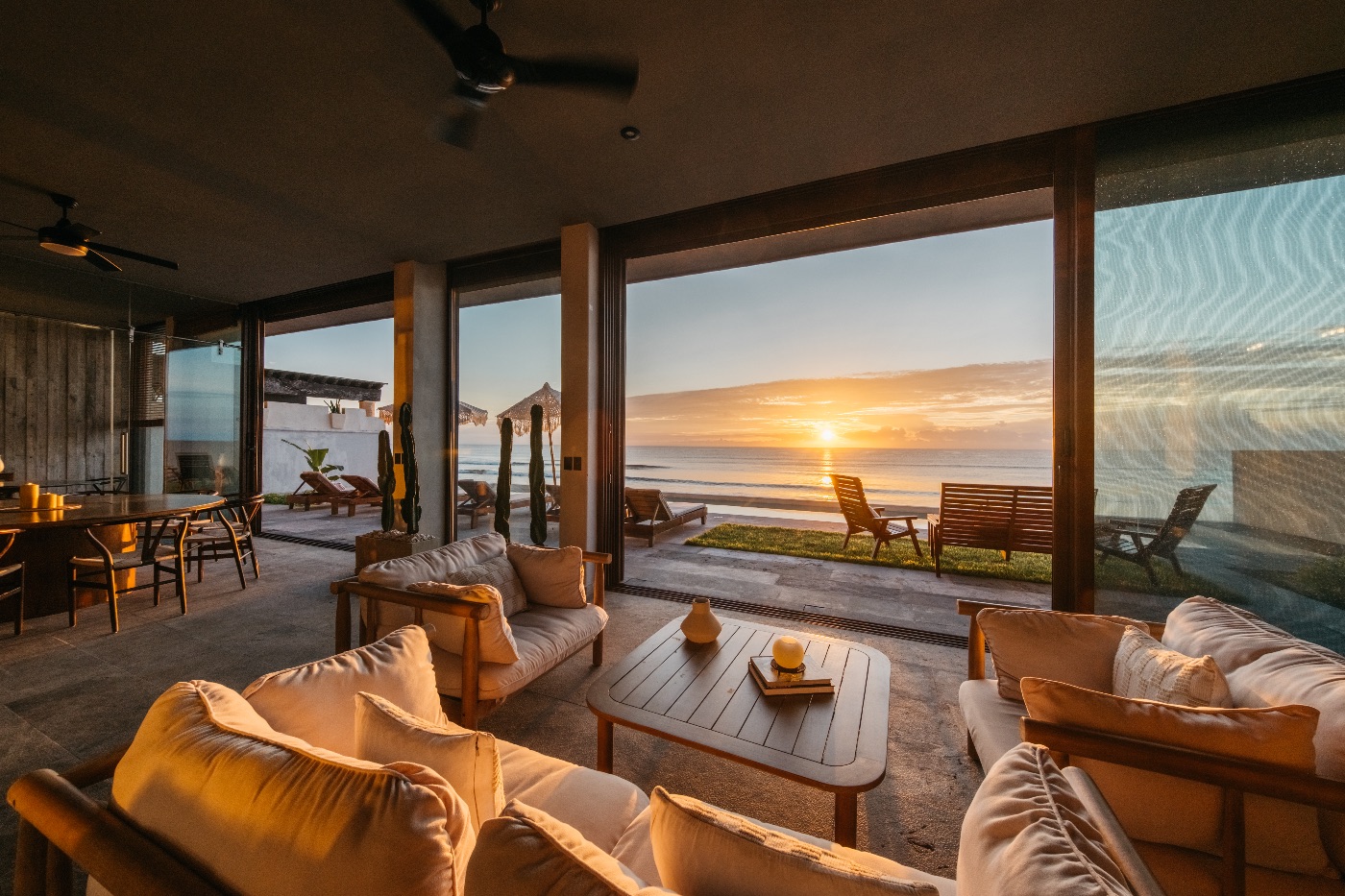 Inside, seven luxurious bedrooms with private bathrooms provide discerning guests with easy privacy and tranquil havens. The social center of the house is an open-plan kitchen and living area that is ideal for casual get-togethers and shared meals.