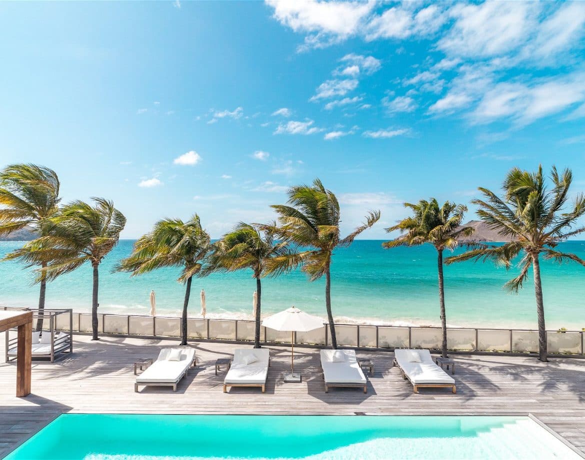 One of St. Barths’ most sought-after addresses, Sand Club is a rare, authentic beachfront estate on Flamands Beach, set behind a grand, palm-lined entrance and a well-kept lawn that feels like a private park.
