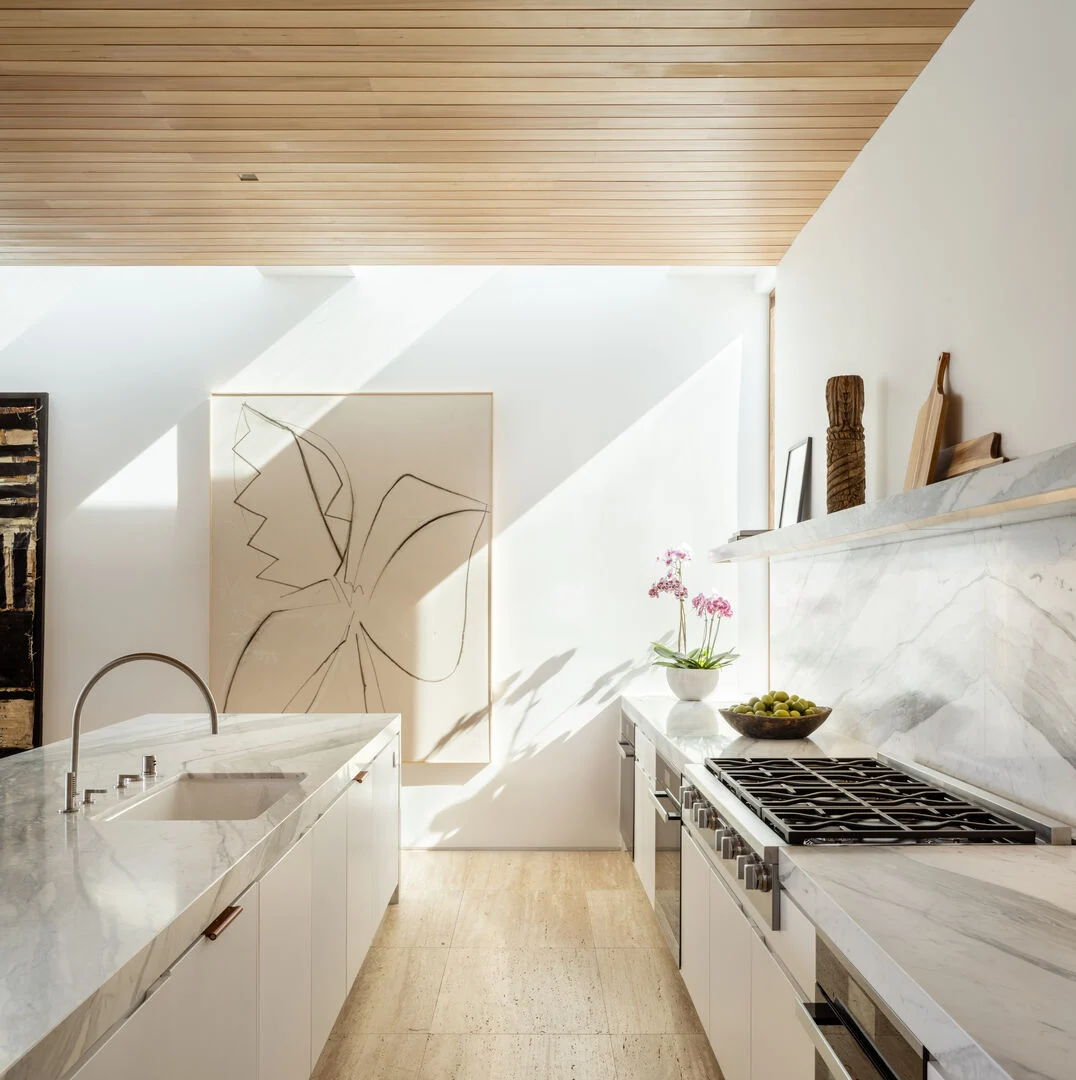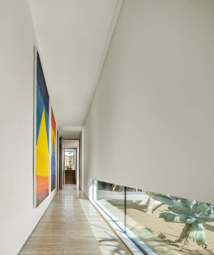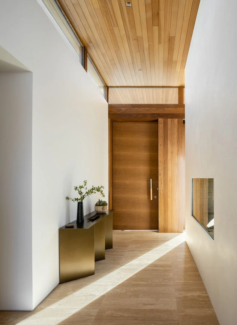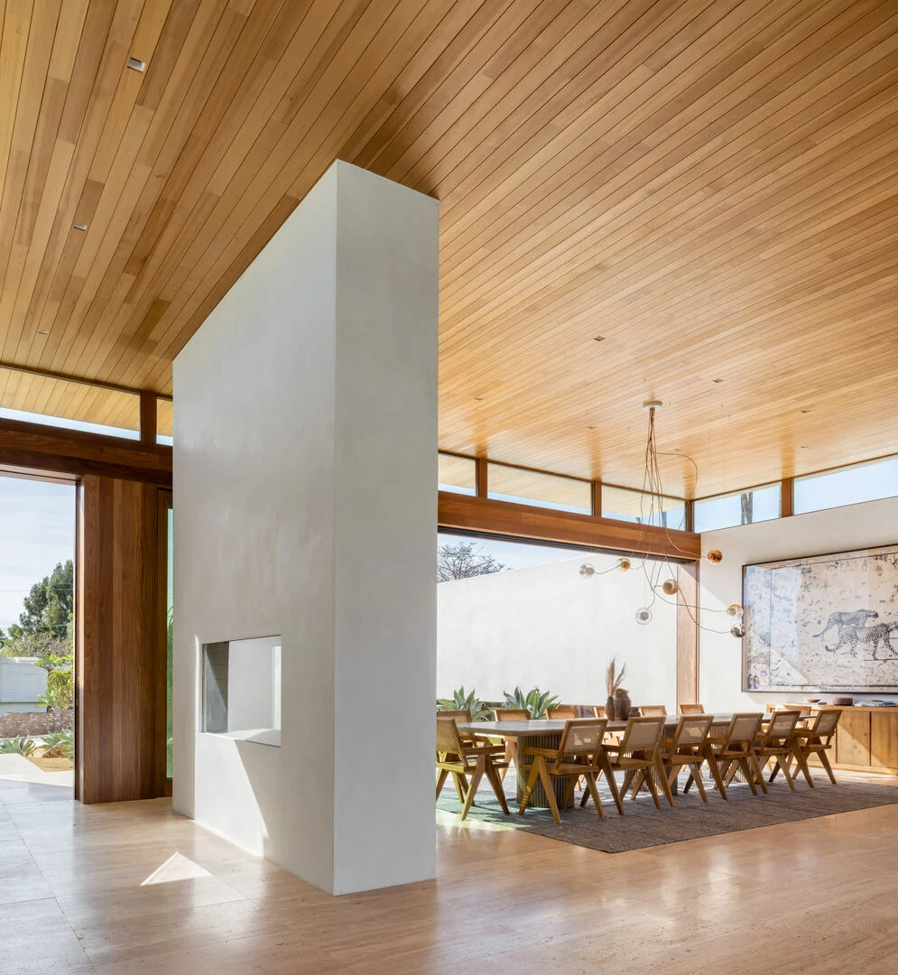 The garage is designed to accommodate three cars, a golf cart, surfboards, and additional storage, with many thoughtful details to enhance ease of living and entertaining. The open floor plan, with soaring 10-13 foot ceilings, sets a perfect social scene. Large-scale pocket doors off the living, dining, kitchen, family, and media rooms open the home to the expansive yard, merging nature and relaxation effortlessly.
