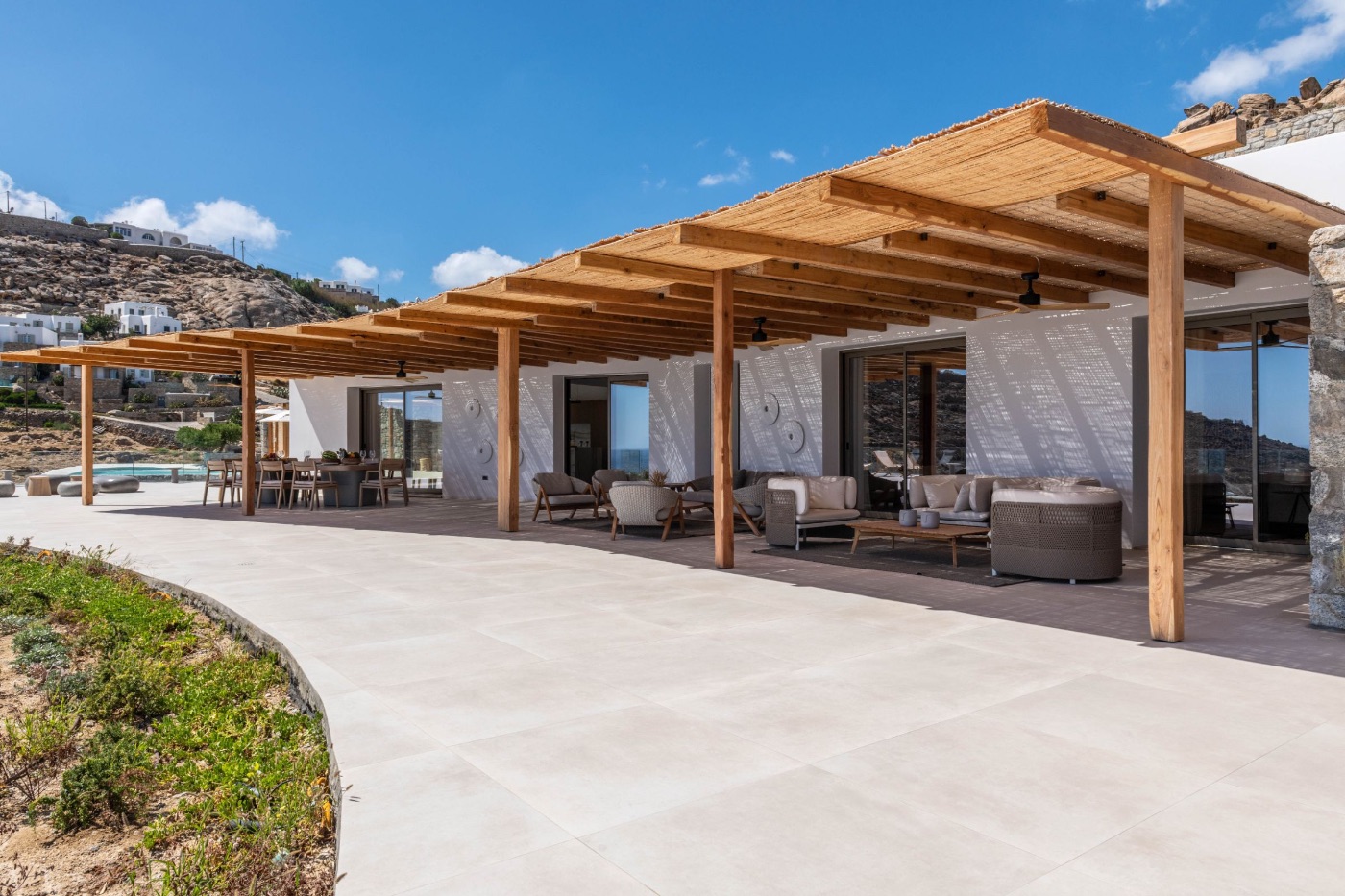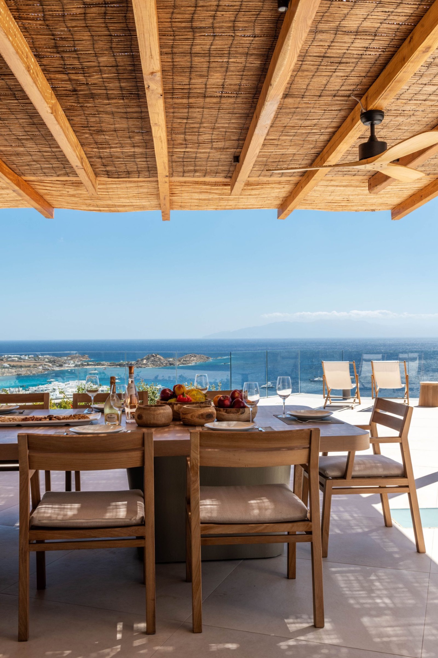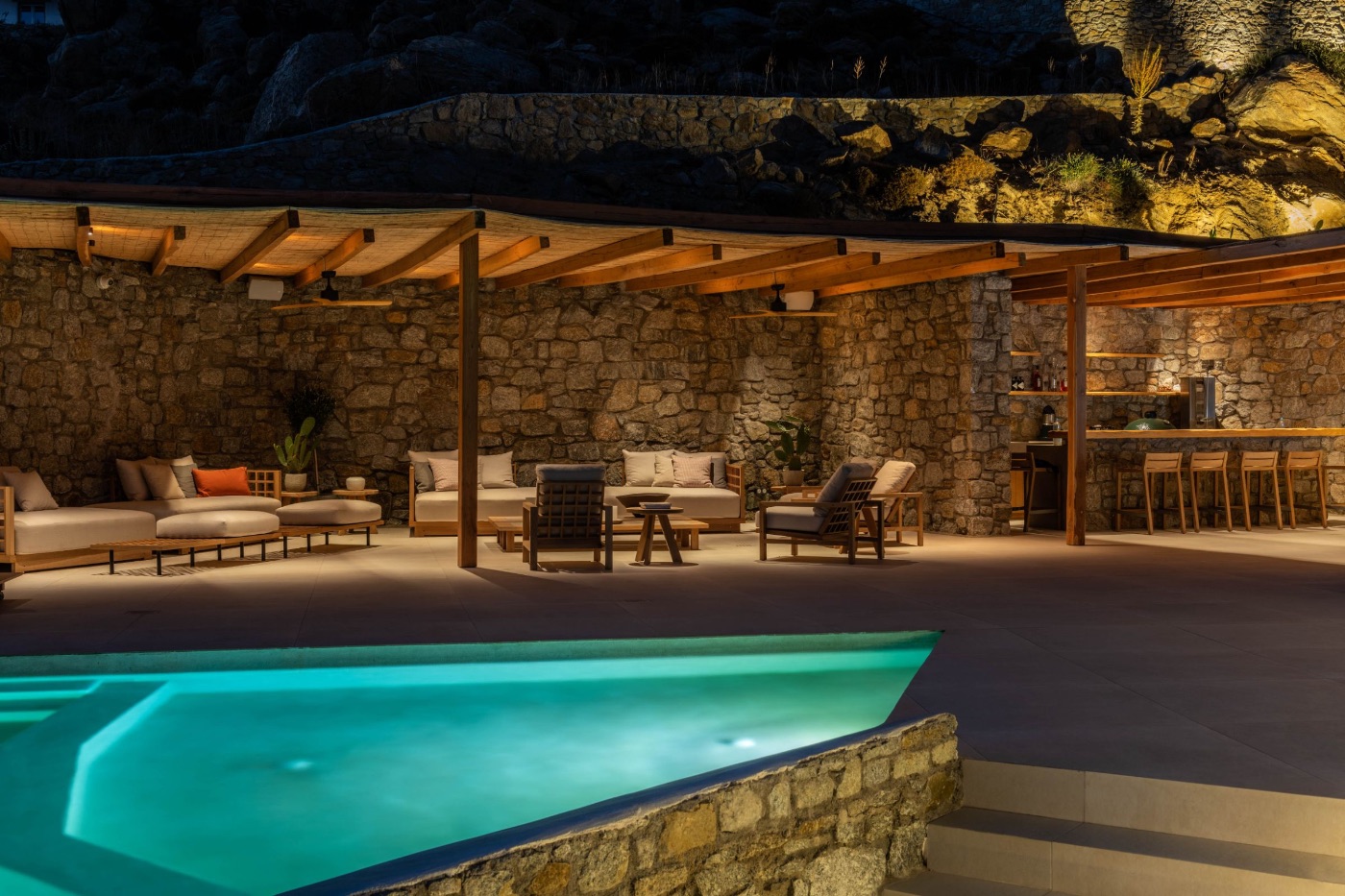 Wander through the expansive terraced gardens, where the scent of wild thyme drifts on the breeze, and panoramic sea views appear around every bend. Private corners and shaded nooks invite you to pause, exhale, and admire the Aegean stretching endlessly beyond.
