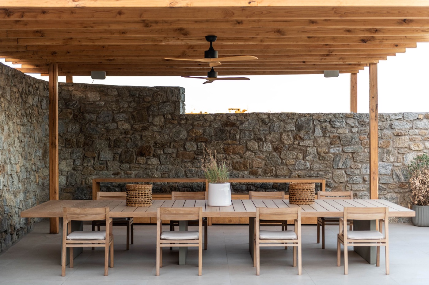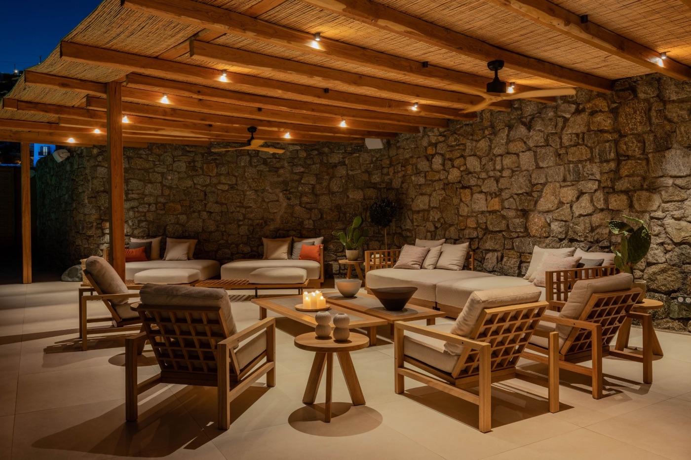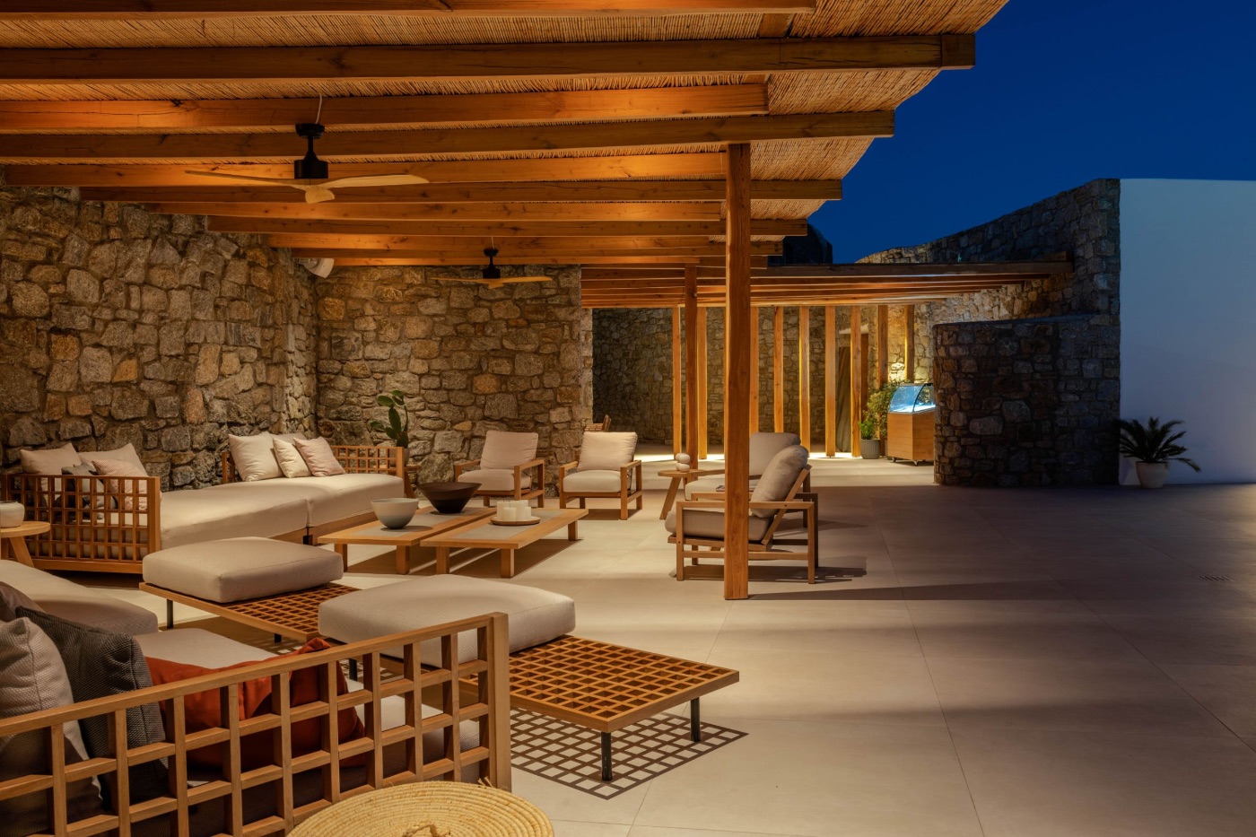 Wander through the expansive terraced gardens, where the scent of wild thyme drifts on the breeze, and panoramic sea views appear around every bend. Private corners and shaded nooks invite you to pause, exhale, and admire the Aegean stretching endlessly beyond.